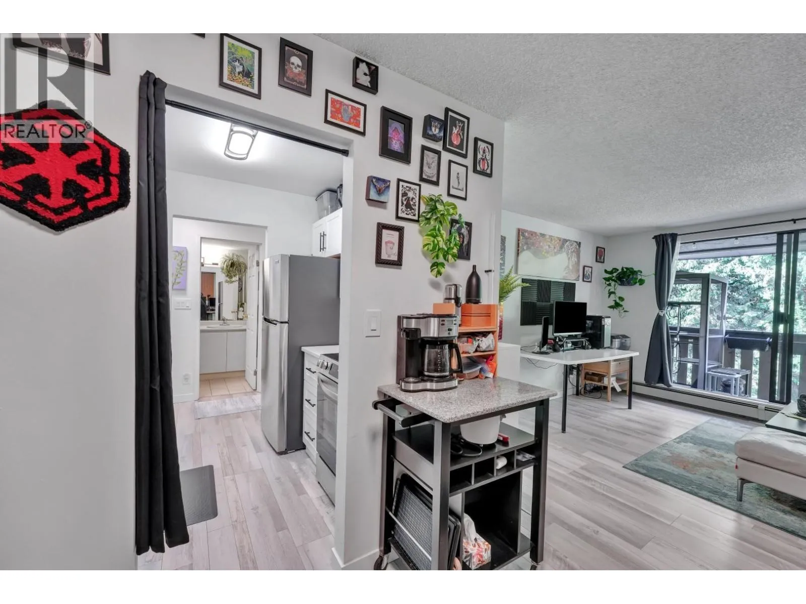 Spacious and beautifully updated top-floor 1-bedroom condo with in-suite storage. The kitchen has been tastefully updated with stainless steel appliances, new cabinet doors, counters, and a sleek backsplash. Enjoy new laminate flooring and modern LED lighting throughout. The recently redone covered balcony offers a private and peaceful tree lined outlook, perfect for relaxing. This unit includes one parking stall with a personal bike storage rack. Maintenance fees cover heat and hot water, plus access to "The Paddock" amenities, including an outdoor pool, sauna, basketball court, pool tables, and lounge area. Centrally located and move-in ready, this condo is ideal for first-time buyers, downsizers, or investors! Book your private showing today! (id:27476)