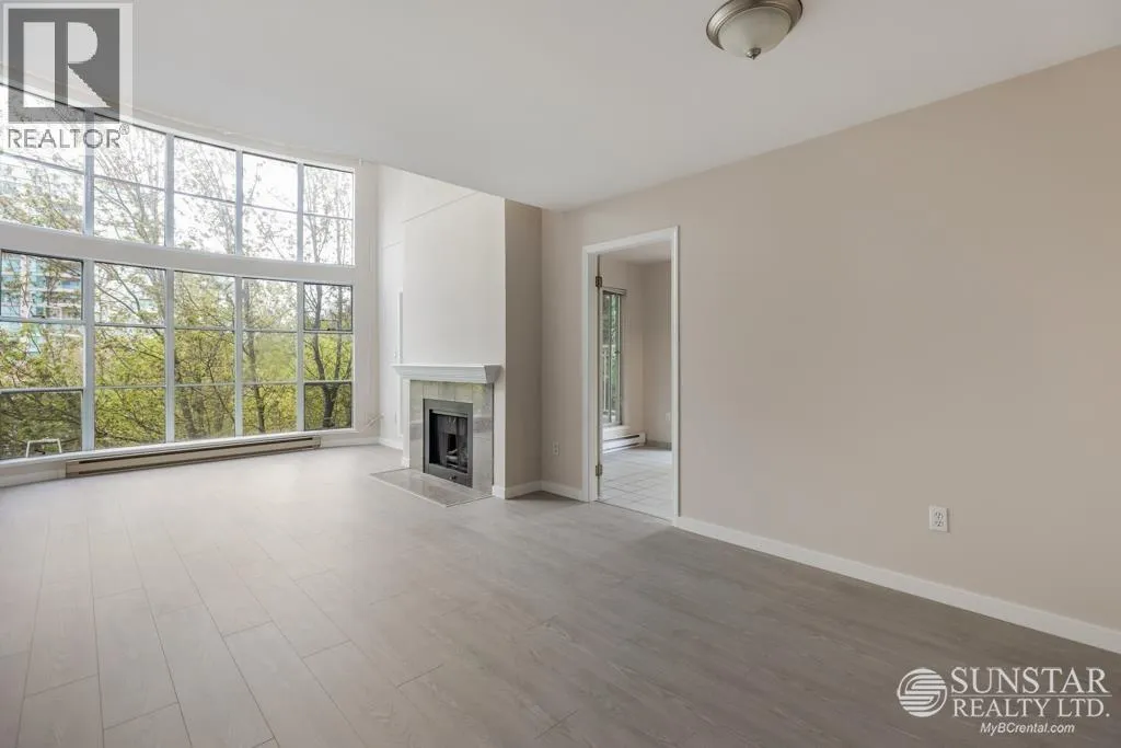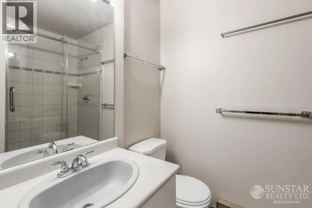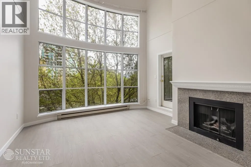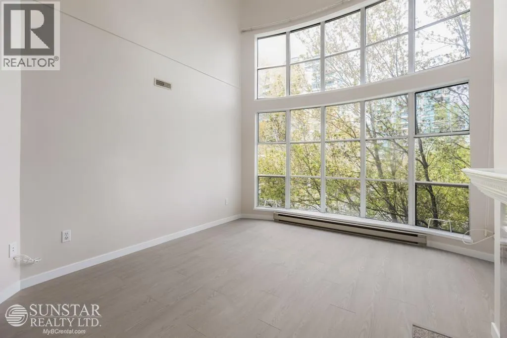 This unique 1,249sf northeast-facing, 2-level penthouse features 2 bedrooms + den, 2 bathrooms, 2 covered balconies, a private rooftop deck, and access to a large communal deck. Recent updates include new laminate floors and fresh paint throughout. The grand living room boasts 17´ ceilings, floor-to-ceiling windows, and a gas fireplace. The spacious dining area connects to the upper level, while the tiled kitchen includes a breakfast nook, balcony access, white cabinets, and stainless steel appliances. The primary bedroom offers a 4-piece ensuite and balcony access. Upstairs, the open den overlooks the living room, has a closet, and opens to the rooftop deck with Garden City Lands views. Rent includes 1 parking stall and storage locker. Max 2 unrelated occupants. (id:27476)