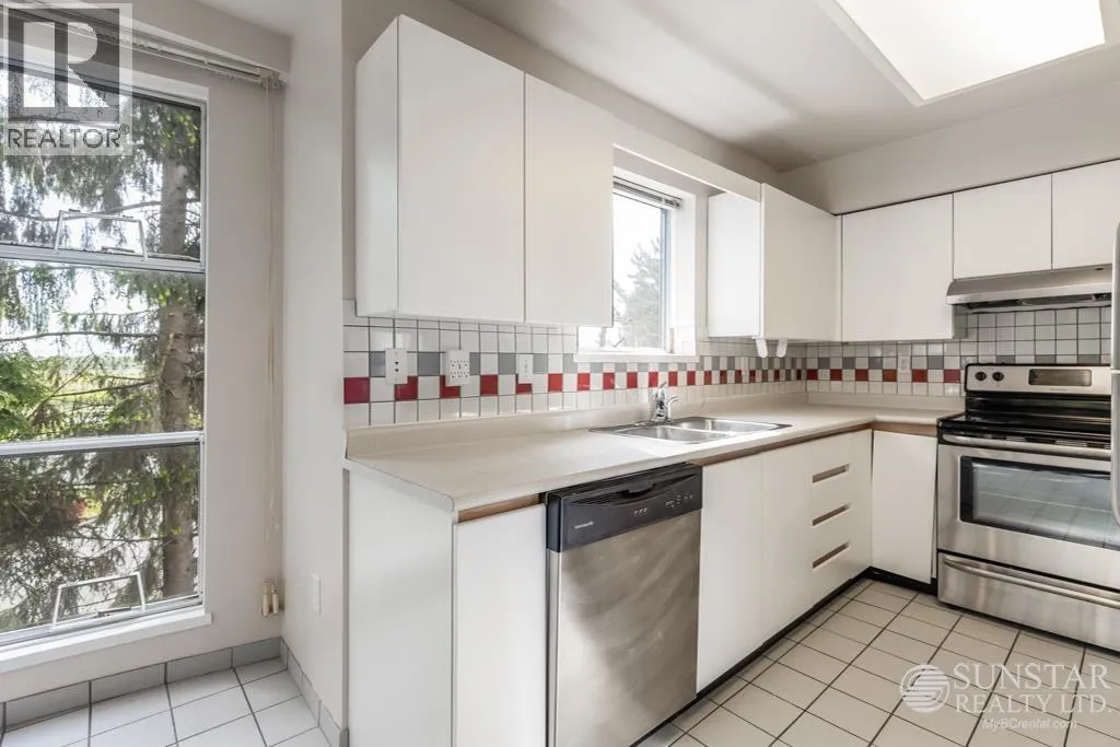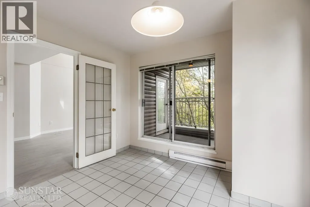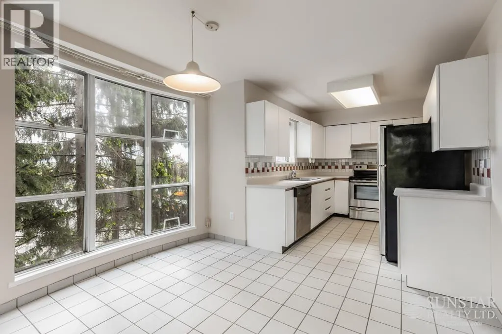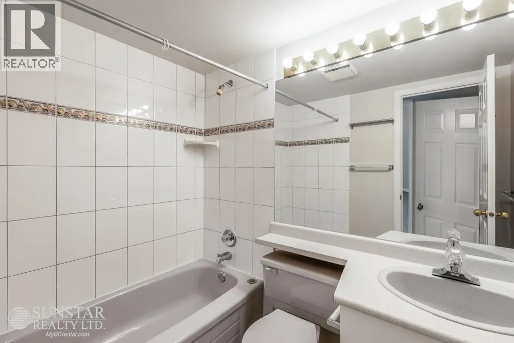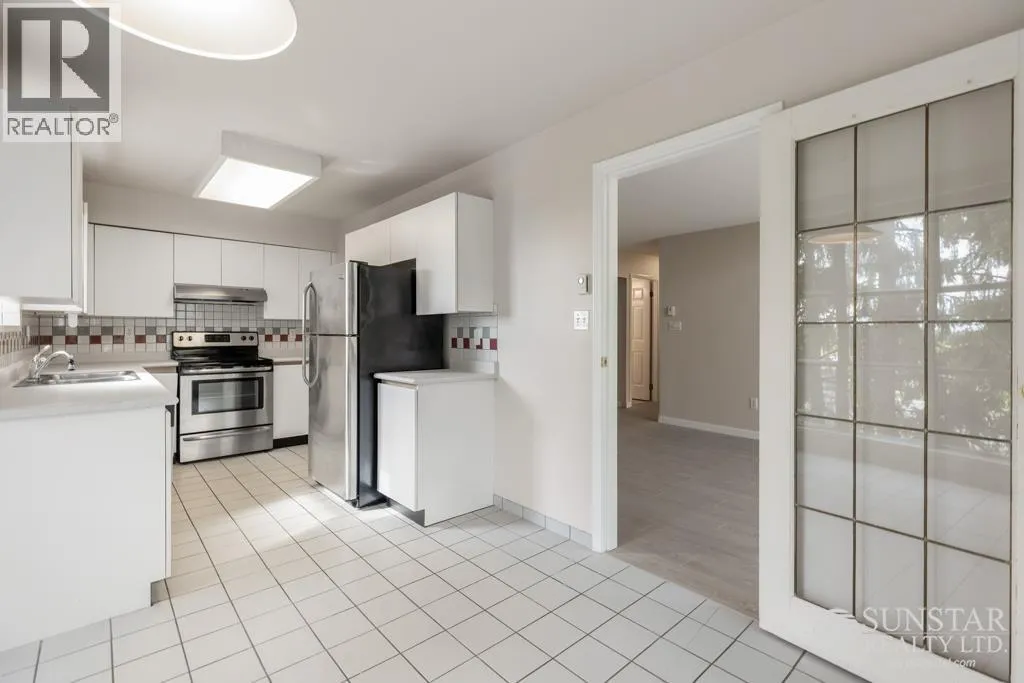 This unique 1,249sf northeast-facing, 2-level penthouse features 2 bedrooms + den, 2 bathrooms, 2 covered balconies, a private rooftop deck, and access to a large communal deck. Recent updates include new laminate floors and fresh paint throughout. The grand living room boasts 17´ ceilings, floor-to-ceiling windows, and a gas fireplace. The spacious dining area connects to the upper level, while the tiled kitchen includes a breakfast nook, balcony access, white cabinets, and stainless steel appliances. The primary bedroom offers a 4-piece ensuite and balcony access. Upstairs, the open den overlooks the living room, has a closet, and opens to the rooftop deck with Garden City Lands views. Rent includes 1 parking stall and storage locker. Max 2 unrelated occupants. (id:27476)