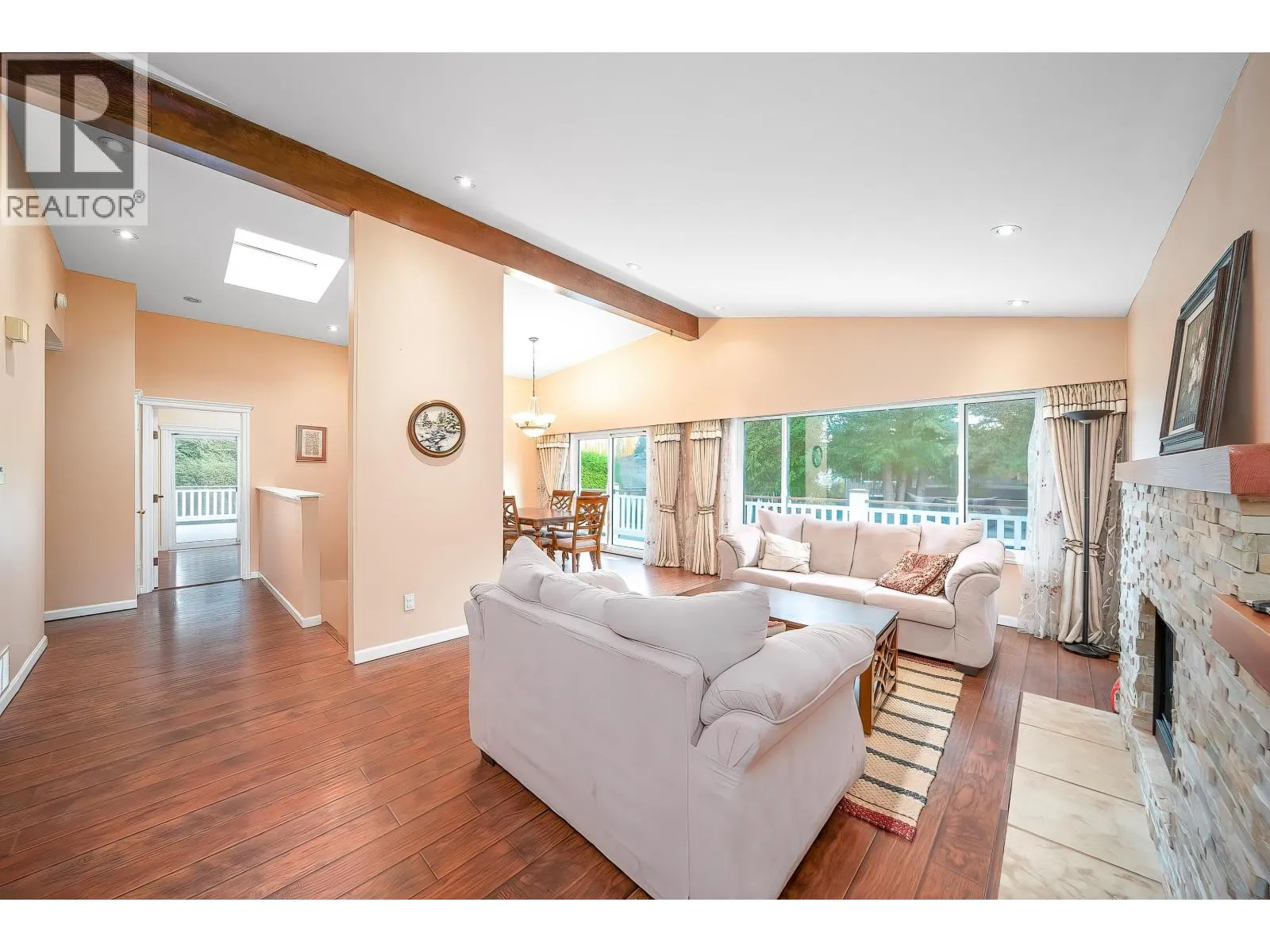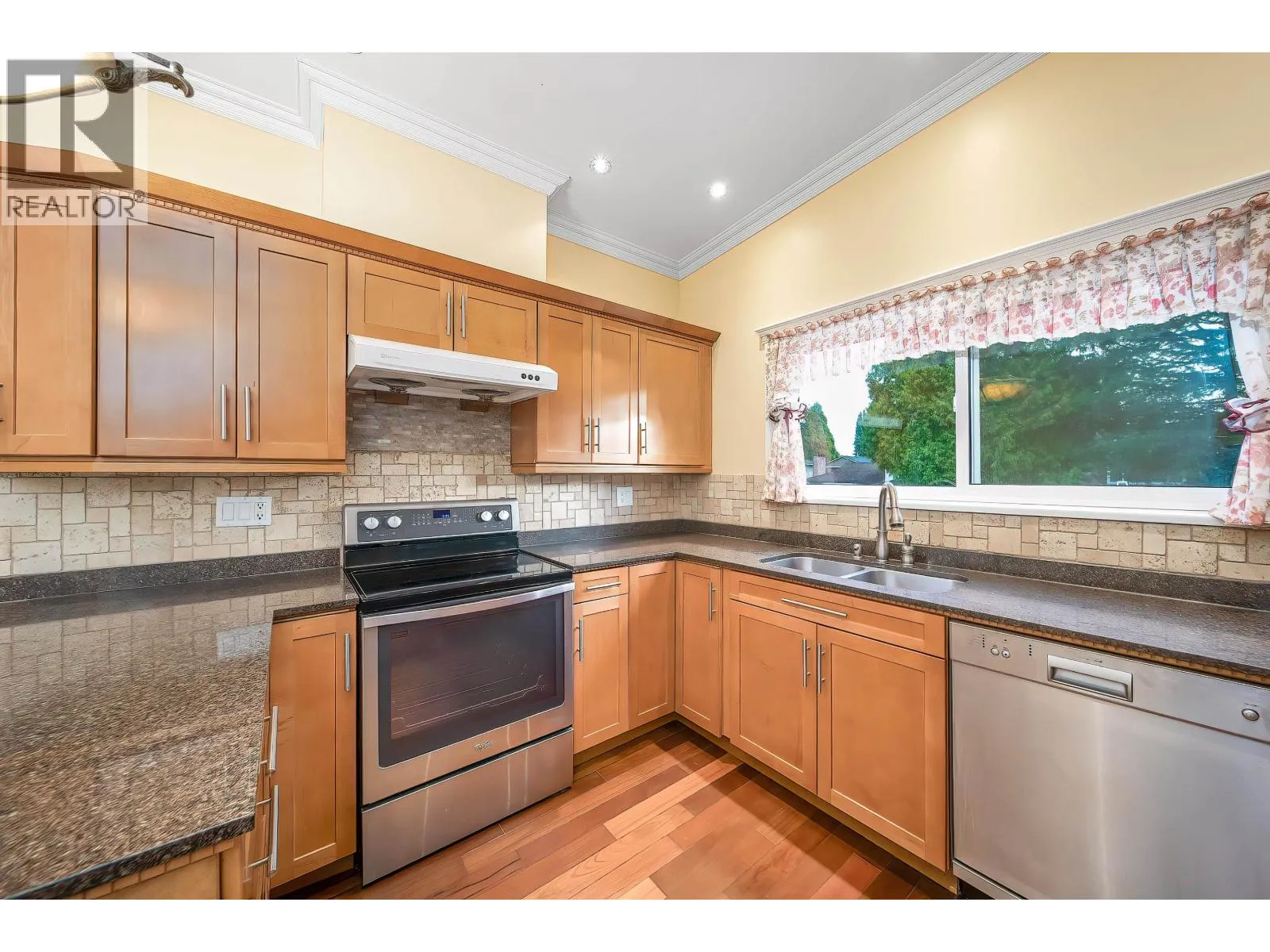 Well-maintained two-level home with fresh air system featuring 6 bedrooms, 3.5 baths, and 2 full kitchens. The main floor offers 3 bedrooms, a full kitchen, and a living area with a separate entry, perfect as a mortgage helper. Upstairs features a high-ceiling living room, formal dining, an enclosed kitchen with eating area, 3 bedrooms, and a wrap-around balcony for summer relaxation. Sitting on an 8,116 sqft lot with a spacious, private backyard ideal for gatherings. Located in a quiet, family-friendly neighborhood close to schools, shopping, and easy access to Highway 99. Great for large families, rental income, or rebuild Multi-unit potential. (id:27476)