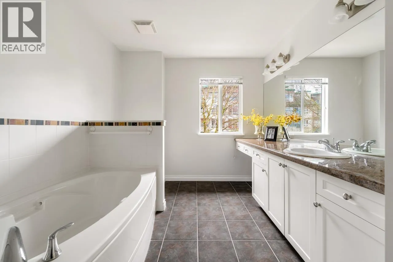 Riverwind! Gorgeous Heritage Style 3 Bedroom 2.5 baths townhome in one of Steveston's most popular complexes, easy street access , with front porch entrance , offers 1660 sf functional living space, beautiful dark warm colour scheme kitchen with granite countertops, custom cabinetry, a coffee/breakfast bar, perfect for everyday living and entertaining; 9ft ceilings, a cozy gas fireplace in living room, spacious master bedroom, and a versatile den ideal as a home office/media room or kids playroom, side by side double garage. Just steps from the Steveston Village, Boardwalk, scenic dyke trails, local shops, transit, and top-rated schools (Homma Elementary and McMath Secondary) (id:27476)