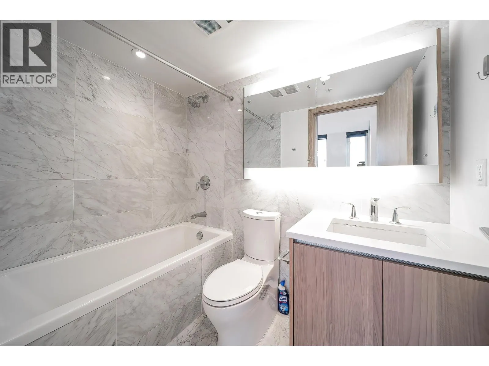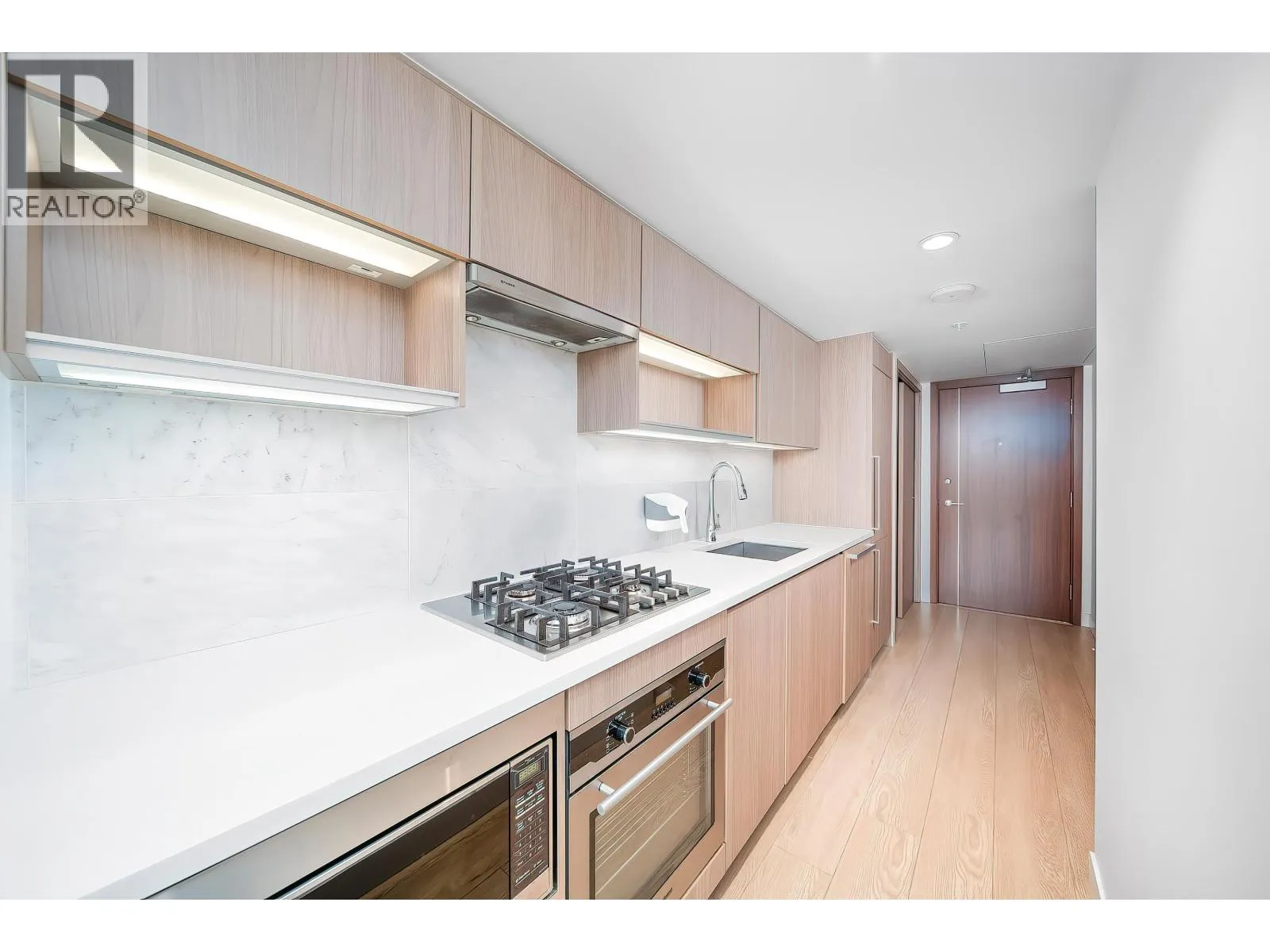 Luxury living at Concord Gardens Phase 2! This bright 1-bedroom features floor-to-ceiling windows with stunning mountain, city, and river views. Includes in-suite A/C, heat pump, new laminate flooring, and a modern kitchen with high-end appliances and quartz countertops. Enjoy full Diamond Club amenities within the same building - pool, gym, basketball court, bowling, golf simulator, sauna, and more. Steps to SkyTrain, T&T, Costco, and all conveniences. Easy to show and move-in ready! No presentation of offers until NOV 24, 2025 AT 6PM. (id:27476)