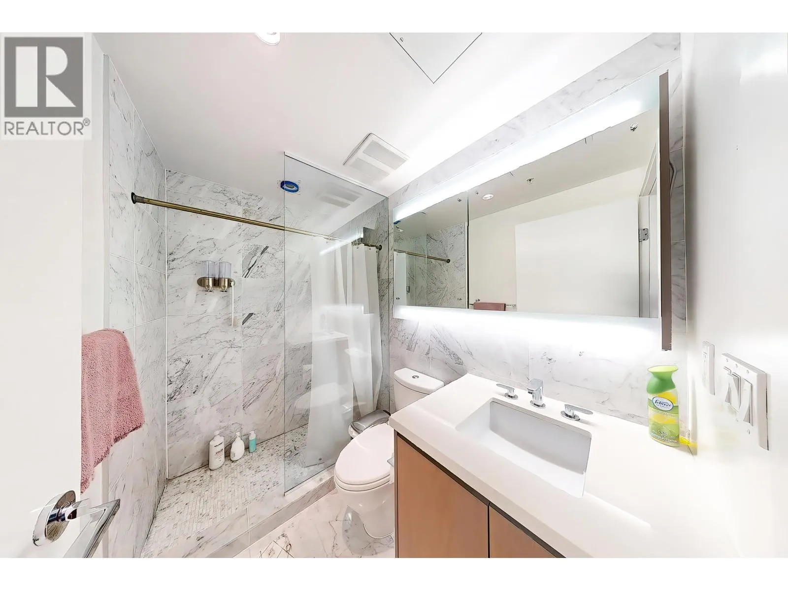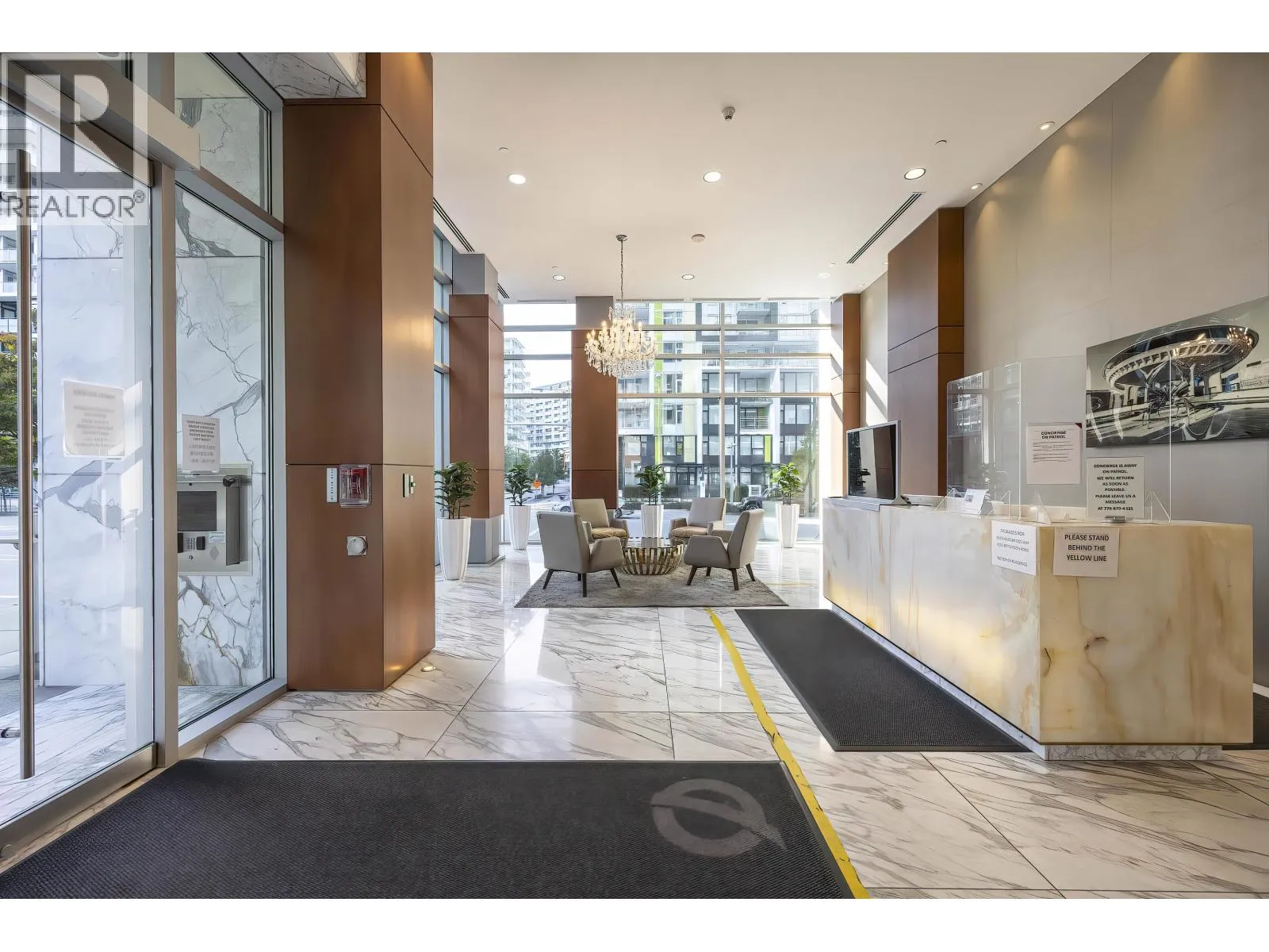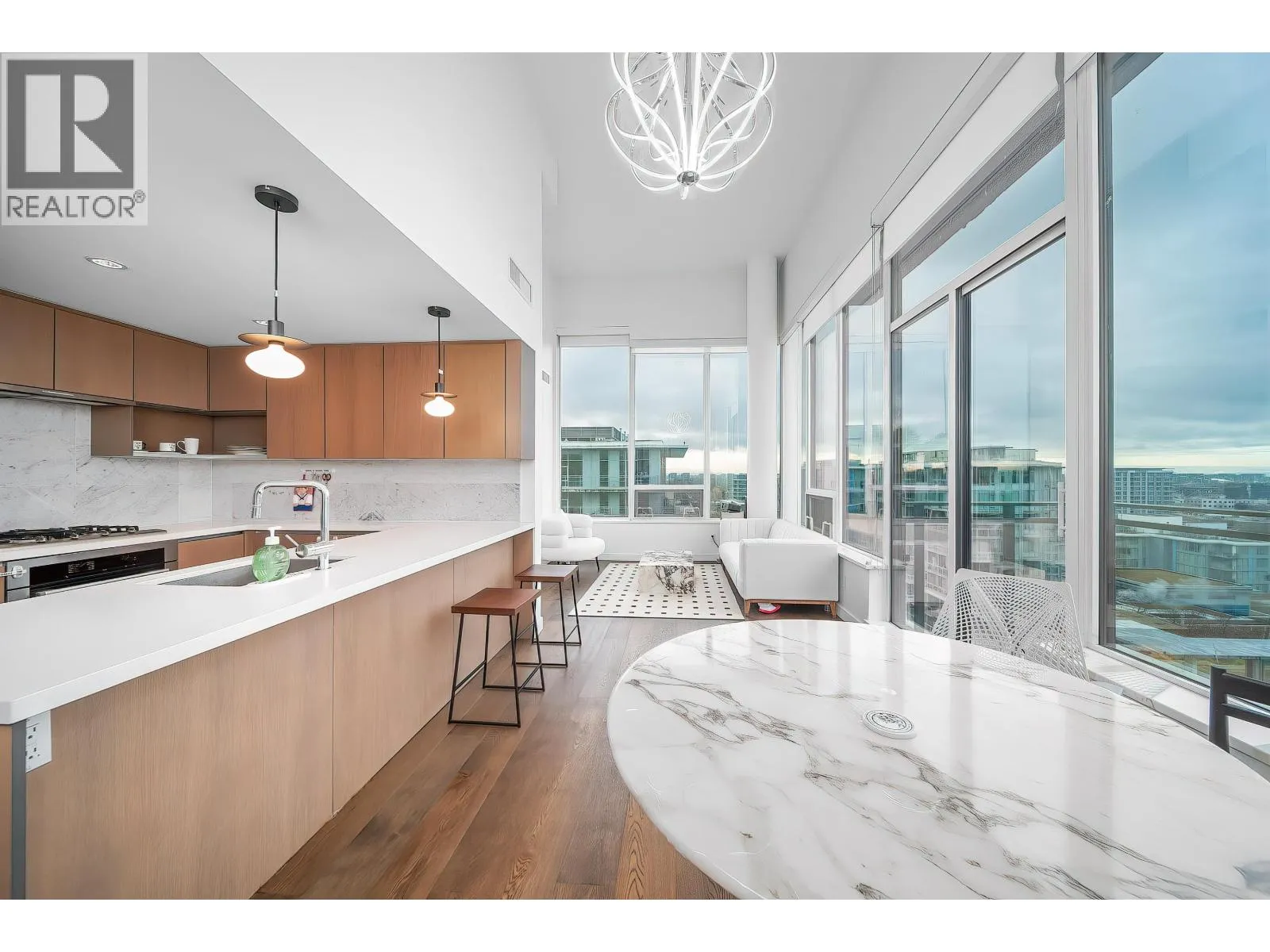 Discover elevated living at Concord Gardens Park Estate by Concord Pacific. This exceptional with high 15' ceiling corner penthouse features 2 bdrms, 2 full bathrms, 2 covered parking stalls, a generous den, and two private balconies. The modern chef´s kitchen showcases a large quartz island, top-quality appliances, and sleek full-height cabinetry. The primary bedroom includes a walk-in closet with custom built-in organizers. Enjoy year-round comfort with central air conditioning and heating. Residents have access to over 18,000 sq.ft. of Diamond Club facilities, including an indoor pool, bowling alley, basketball and badminton courts, a fully equipped gym, sauna, yoga studio, and more. Ideally located in the heart of Richmond-walking distance to Capstan SkyTrain, Costco, Foody World etc. (id:27476)