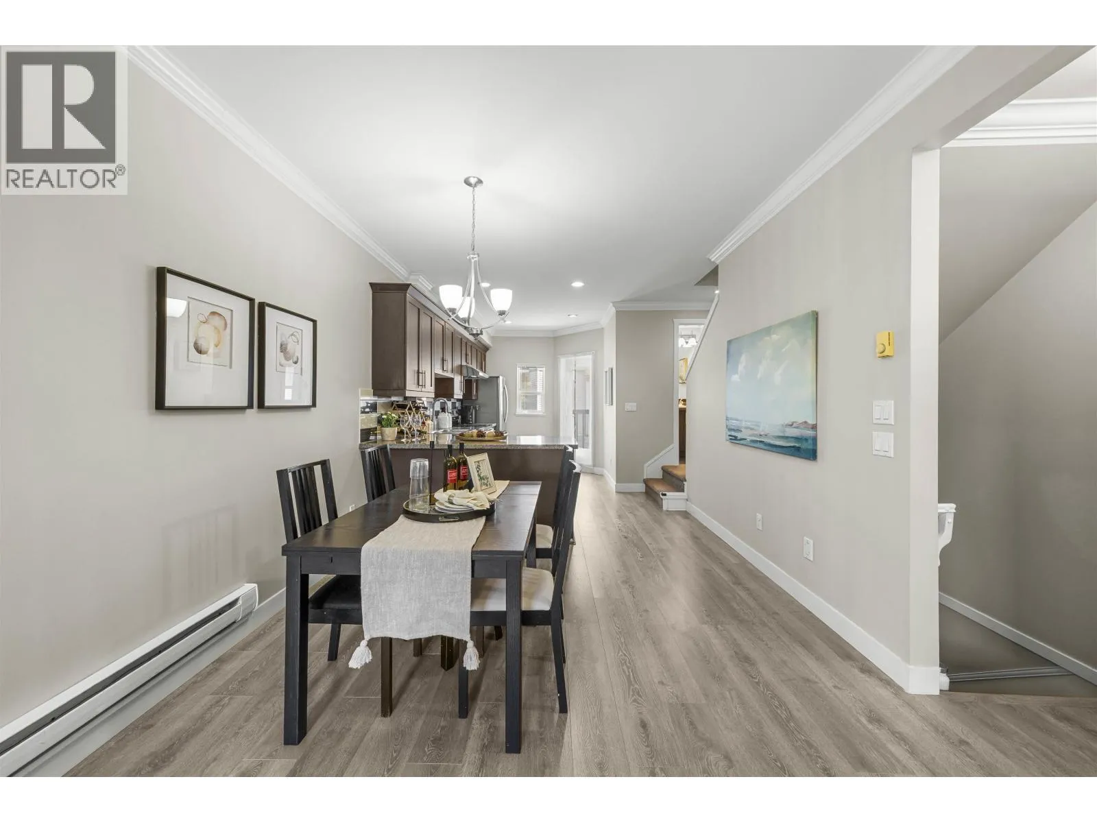 Step into a rare opportunity a move-in ready townhouse at Hamilton Station with your own private garage. Surrounded by parks and just minutes from Queensborough Landing and Hamilton elementary. Over 1,000 SF of thoughtfully designed space, this home feels much more spacious than a typical condo. The main floor features 9´ ceilings, wood flooring and a private garage. The open concept kitchen is equipped with stainless steel appliances, dual sinks, a French-door fridge, and a large island. Step out onto your balcony for some fresh air or summer BBQ. A powder room with a window on this level. Upstairs, the generous primary suite easily fits a king with two nightstands, and comes complete with an ensuite and ample closet space. And the full-size laundry is also located on this level for easy access. Call now to book your private tour! (id:27476)