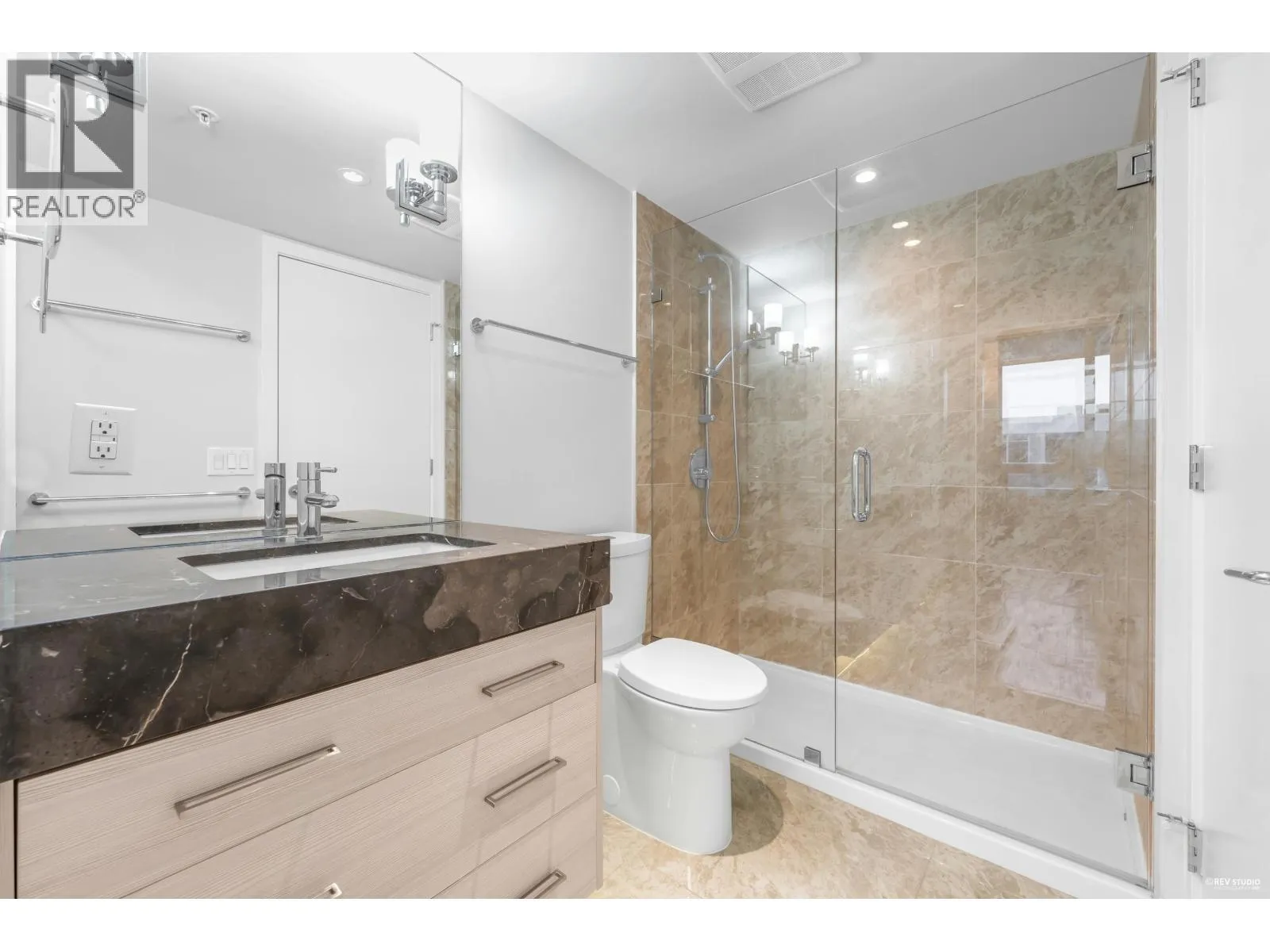 Location, location, location! Welcome to Mandarin Residences-an exceptional concrete building in the heart of Richmond, directly connected to Brighouse SkyTrain Station with multiple bus routes at your doorstep. This south-facing penthouse 1 bed + den overlooks the quiet courtyard and features a functional open layout, large windows, walk-in closet, S/S appliances, brand-new washer & dryer, easy-care laminate flooring, fresh paint throughout, and a spacious balcony perfect for BBQs. Steps to shops, restaurants, schools, community centre and more. Amenities include a gym, rooftop garden with BBQ area, lounge and kids´ play area. (id:27476)