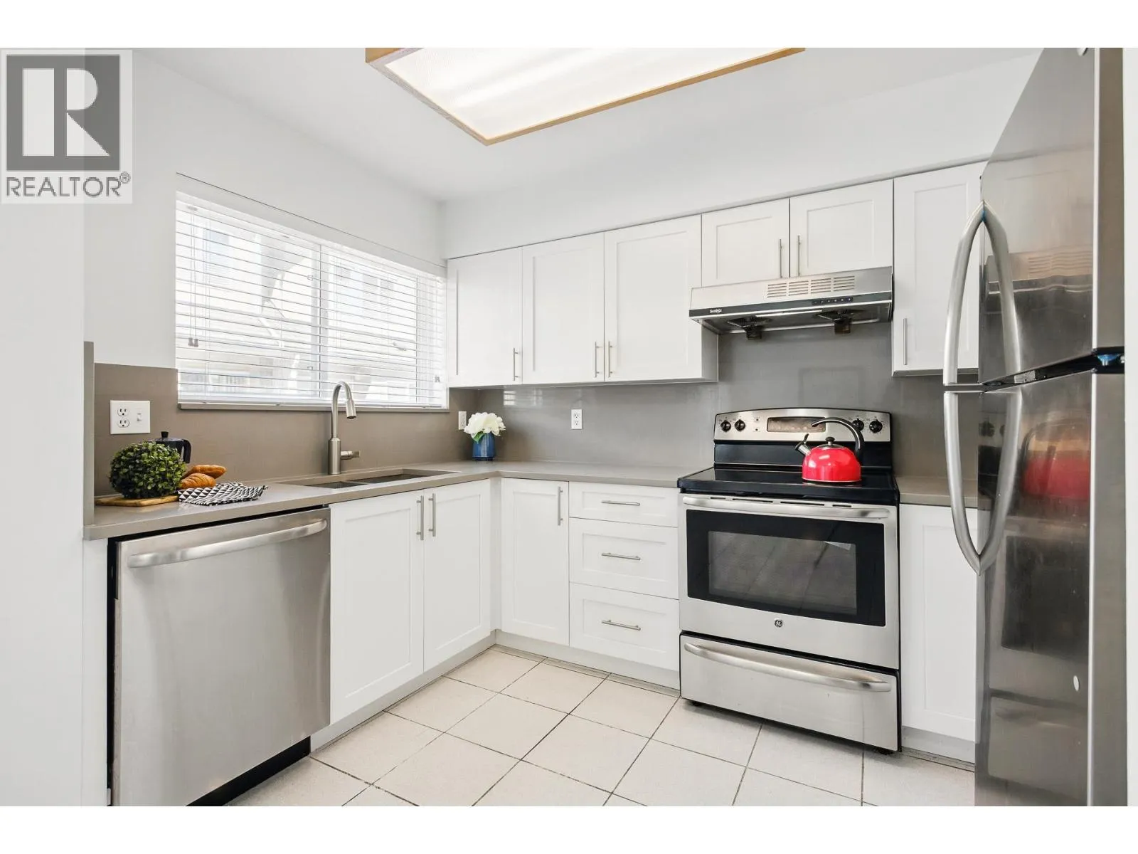 Welcome to the 4-bedroom, 3-bathroom townhouse at Royal Gardens! Nestled in a quiet, well-maintained community, this home is surrounded by mature trees, private gardens, and ample visitor parking. Highlights include a functional layout, an upgraded kitchen with newer appliances, a cozy gas fireplace, two balconies, a low-maintenance fee, a double side-by-side garage, and a fenced garden area. Conveniently located, it´s just steps away from shops, restaurants, schools, and public transit. Schedule your showing today! (id:27476)