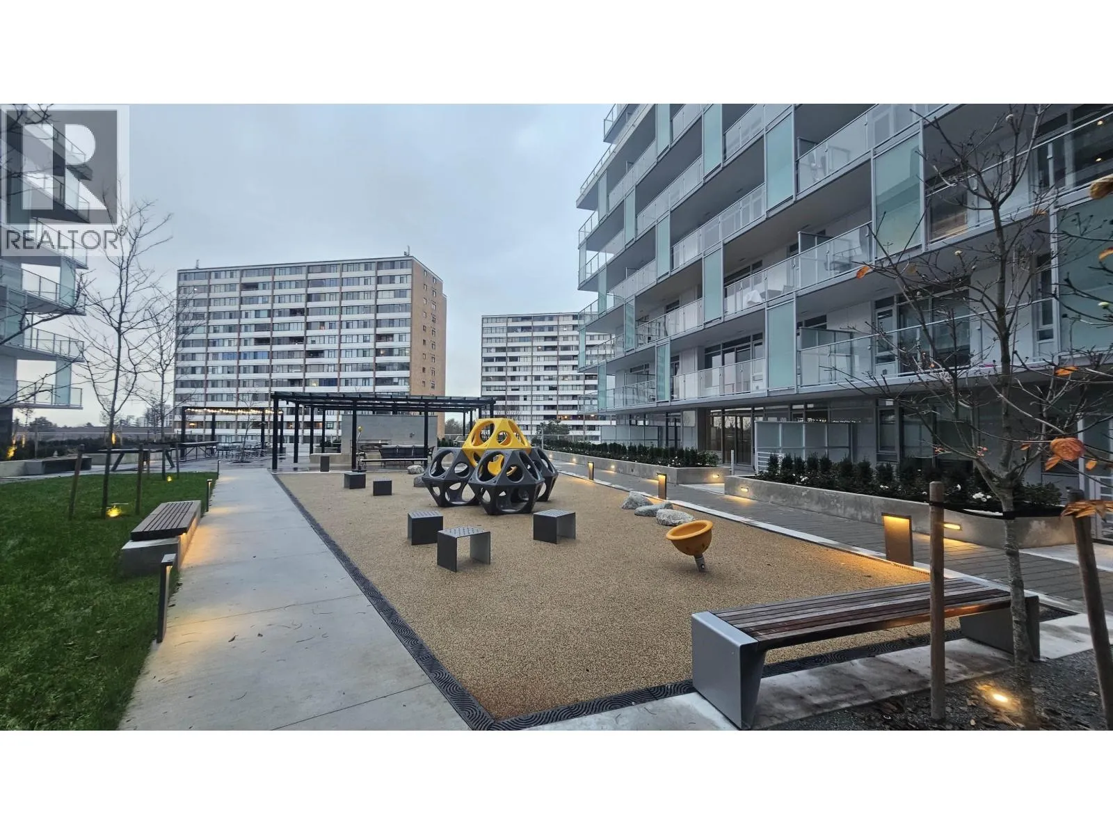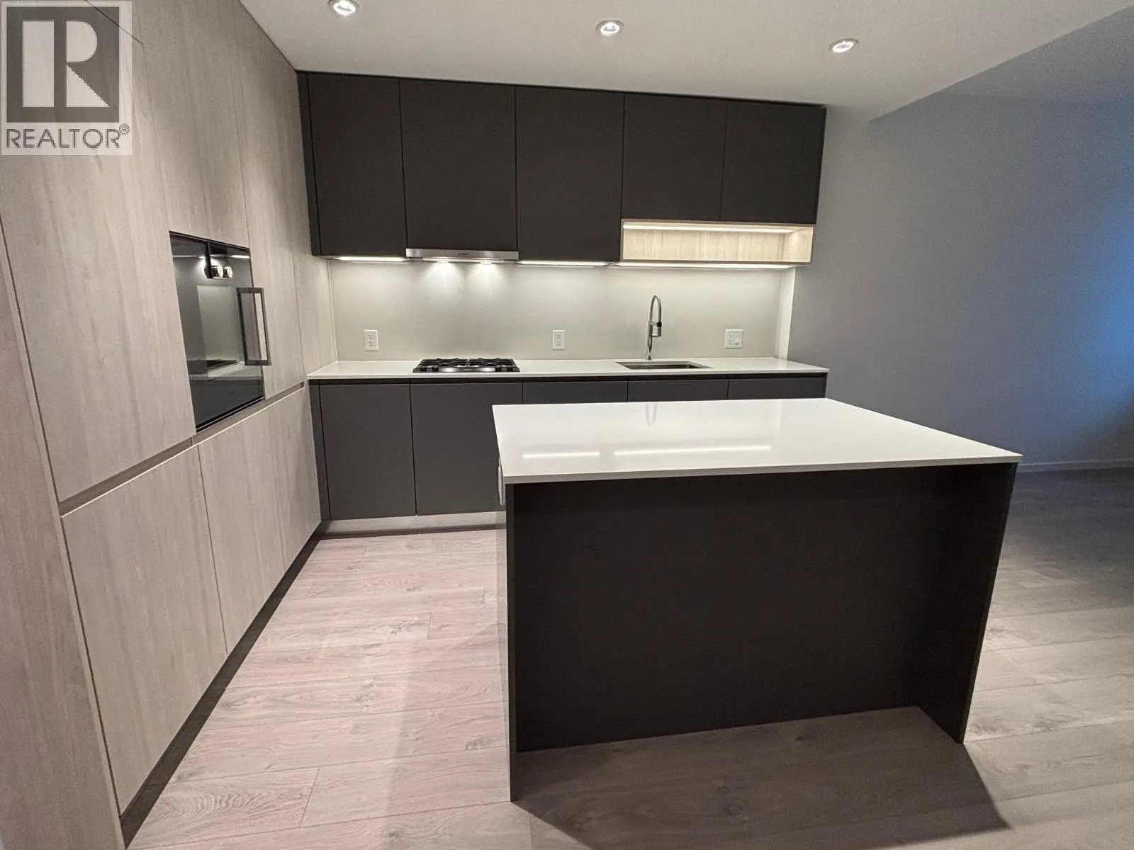 This brand new Richmond Center Living ! Show room layout 615sf. -1-bedroom plus 1 den home. Comes with a XL locker. Tower B, 6300 Minoru Blvd offers modern living in the heart of Richmond. Steps to the RC mall and Brighouse sky train station. Featuring an open and efficient layout, 9" ceiling, the unit includes a contemporary kitchen with integrated high-end brands appliances and quartz countertops, a bright living area with large windows, a spacious bedroom, a stylish bathroom with radiant heated floor, and Bosch side by side Washer & Dryer. Enjoy a balcony with open city views, Central A/C & heating, and high-quality finishes throughout. The building provides excellent amenities like fitness center, private room & lounges, 2 guest suites etc. 1 (one) Parking included. (id:27476)