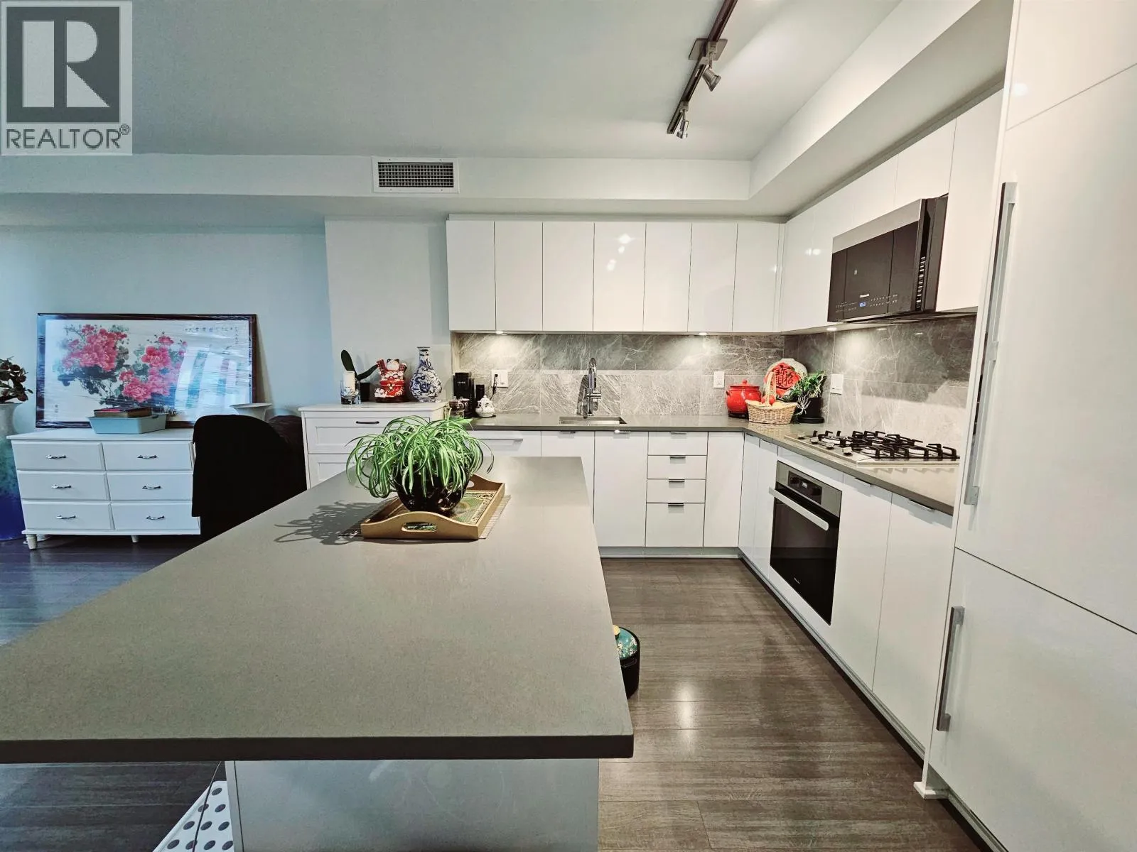 Experience urban elegance at Fiorella by Polygon! This spacious 765 sq. ft. 1-bed + den home features a large private 3rd-floor patio, perfect for gardening, entertaining, or outdoor hobbies. The den is generously sized and can be used as a second bedroom or home office. Enjoy an open-concept layout with large windows that fill the space with natural light. The modern kitchen offers sleek cabinetry, integrated appliances, and under-cabinet lighting. The spa-inspired bathroom includes a frameless glass shower and premium finishes. Residents have access to excellent amenities such as a fitness studio and social lounge. Prime location just steps to Aberdeen Park, restaurants, and the Capstan Canada Line Station. (id:27476)