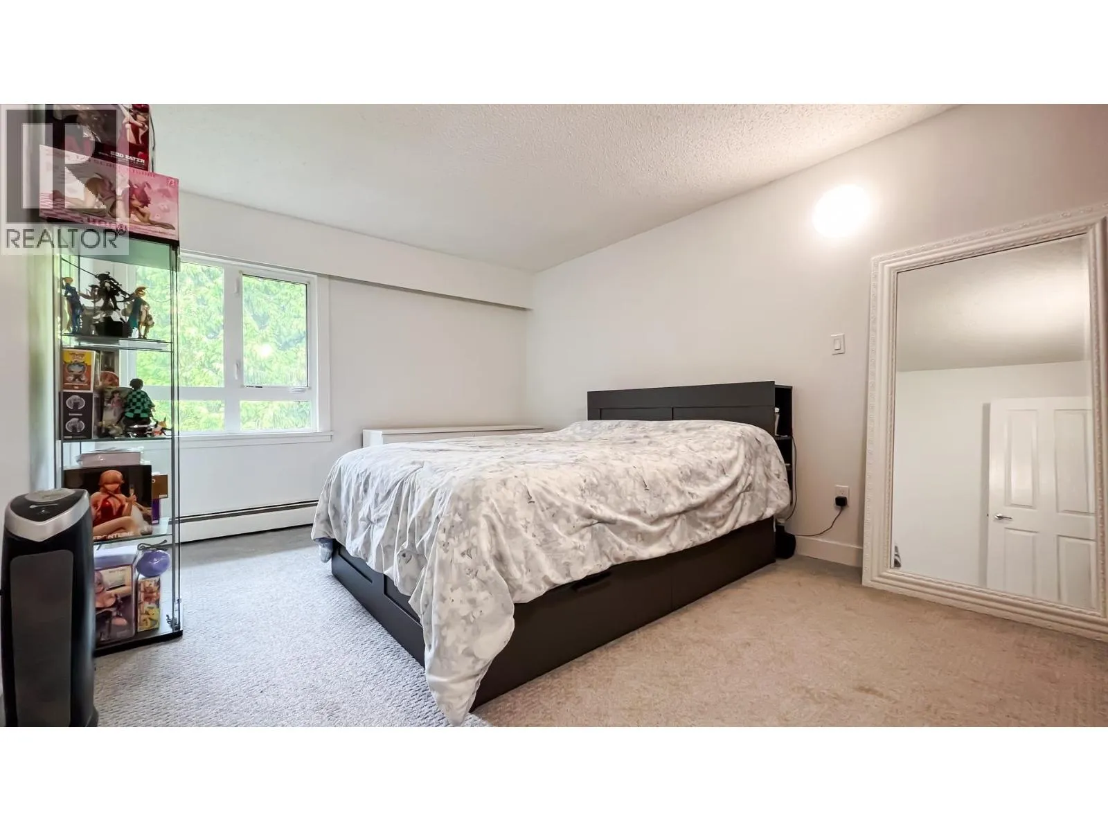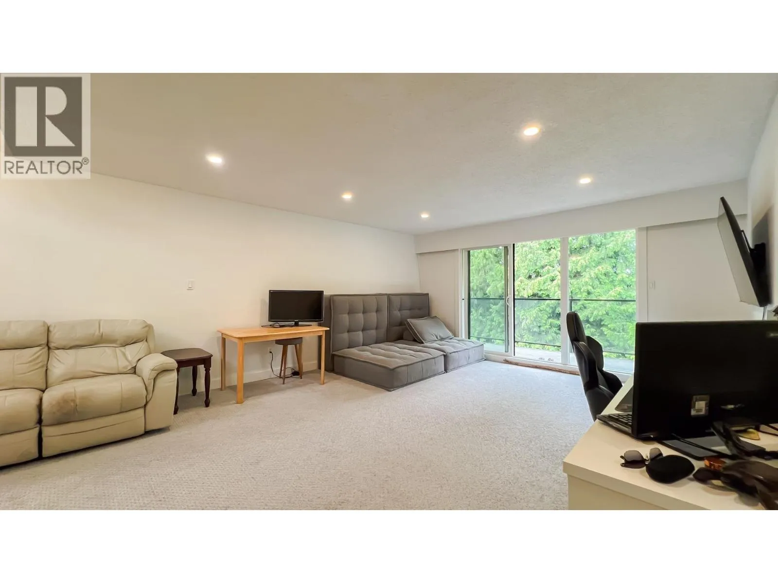 Daniels Manor - the best value in the East Cambie neighbourhood! This bright and spacious top-floor 801 sqft one-bedroom unit is a quiet inside home featuring a functional floor plan, a large living room, generously sized bedroom that easily fits a king-size bed, and a large balcony with a serene treed view. Renovations completed in 2021 include a new bathroom, light fixtures, carpet, fresh paint, and countertops. The building has undergone extensive updates, including the building envelope, rain screen, roof, elevator, boiler, balconies, windows, sliding door, fencing and landscaping. The strata fee covers hot water and heating. One parking stall and one storage locker are included. Convenient location in a serene suburban setting beside Albert Airey Park and playground. (id:27476)