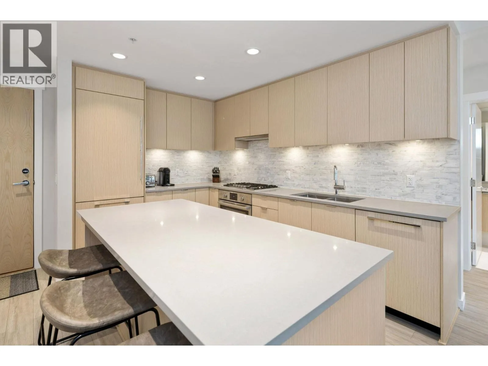 BERKELEY HOUSE by reputable developer POLYGON! This 981 SF 2 bed + DEN AIR-CONDITIONED home has been meticulously maintained by ORIGINAL OWNERS & never tenanted. PERFECT floorplan with high ceiling, bedrooms on opposite sides & 0 WASTED SPACE! Open-concept chef's kitchen features large island, BOSCH appliances, 5-burner GAS range, full size fridge & plenty of cabinetry/countertop space for all your cooking needs. Primary bed can fit a KING bed & spa-like ensuite with DOUBLE sinks. MASSIVE DEN perfect for home office/play area or additional storage space. FULLY COVERED balcony with quiet outlook perfect for relaxation & BBQs! 1 PARKING & OPTION TO BUY MORE. Amenities: Pool table, lounge, gym, ping pong, music room & more. STEPS to transit, skytrain, schools, & the best retail/dining in Richmond! (id:27476)