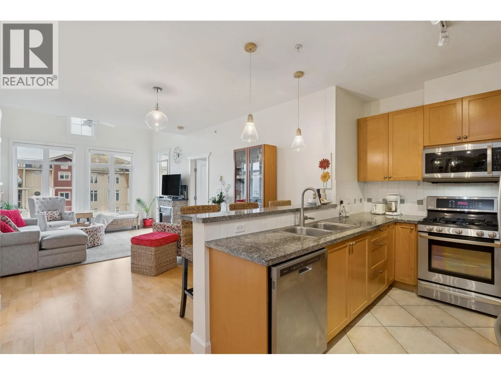 PENTHOUSE at The Village at Imperial Landing offering refined waterfront living in one of Richmond´s most sought-after communities. This top-floor corner home features high ceilings, separated bedroom layouts, and a very private outlook with lush green views and a peekaboo water view. Lightly used and privately owned, the residence has been updated with new appliances and window coverings. Set in a well-managed concrete building with an on-site caretaker, residents enjoy a fitness centre, guest suite, landscaped gardens, elevator access, and secure underground parking. The home includes two parking stalls and storage, and is conveniently located close to the elevator and staircase. Just steps to the Boardwalk, shops, cafés, and restaurants, walkability, and privacy. (id:27476)