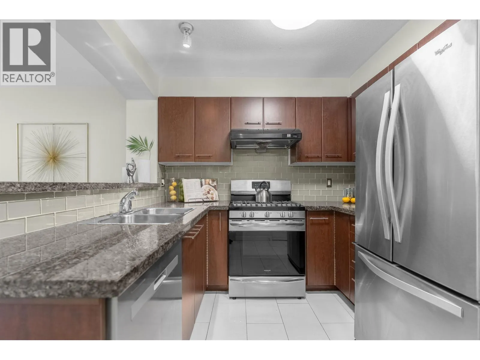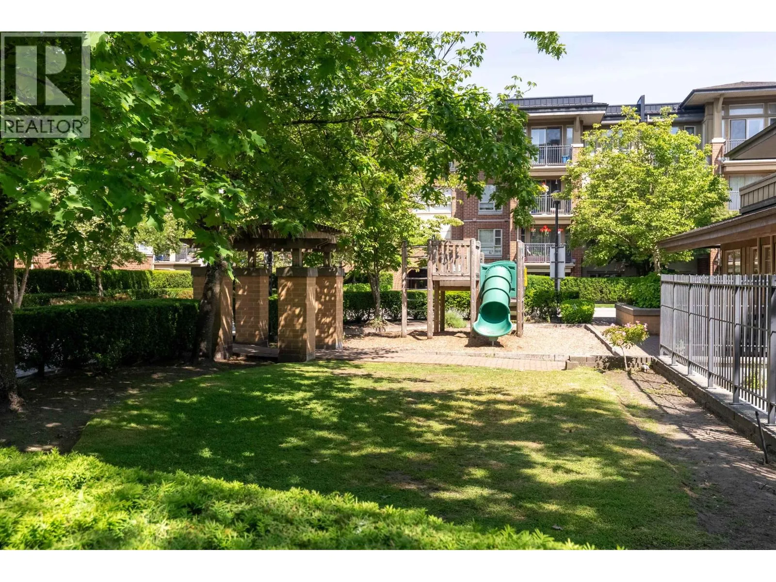 Welcome to Lions Park by Polygon! Located in the heart of Richmond! Just steps from Kwantlen University, Lansdowne Centre, Canada Line, restaurants, recreation & so much more! This spacious 1 Bed + Den ground-level suite offers an open-concept floor plan with 337 sq.ft patio leading to landscaped courtyard and water fountains. Kitchen offers stainless steel appliances, gas cooktop & sleek granite countertops. Inside unit facing the quiet courtyard! 1 Parking Stall included. Amenities include: gym, yoga/dance studio, guest suites, playground, outdoor swimming pool, hot tub, lounge area, billiards table, theatre room, visitor´s parking & caretaker. New painting, New floor, Move-in ready! Open House: Dec 20, 2025 2-4PM (id:27476)