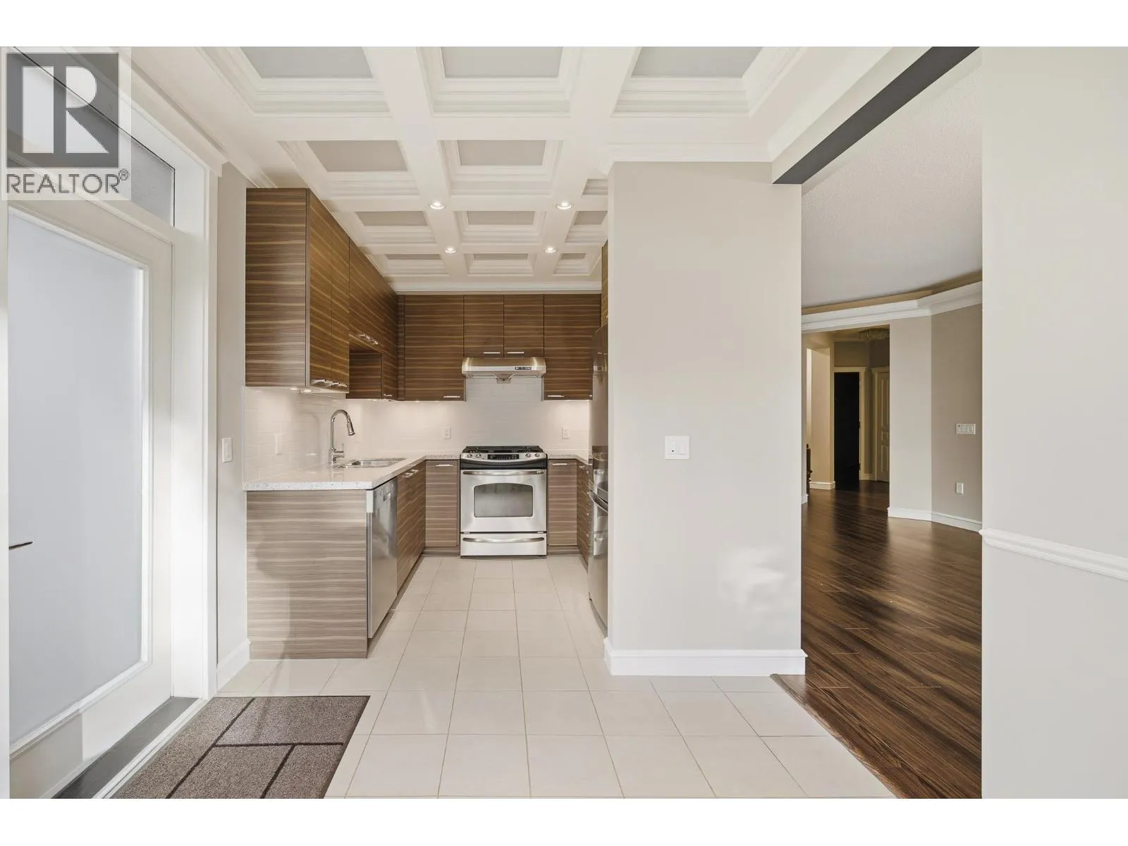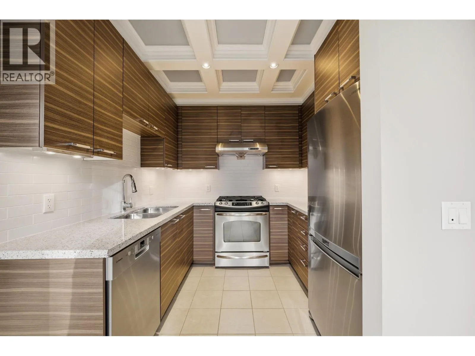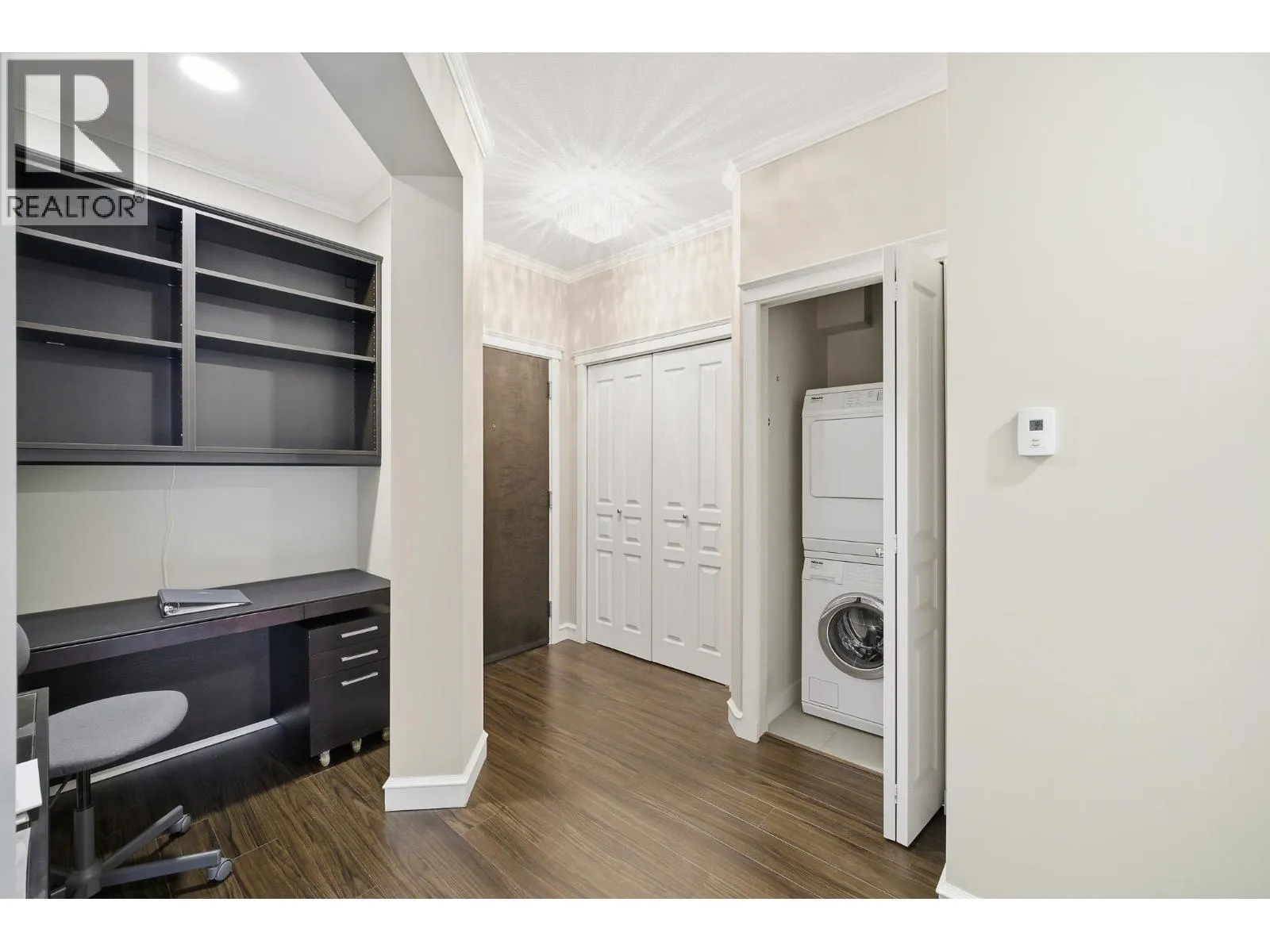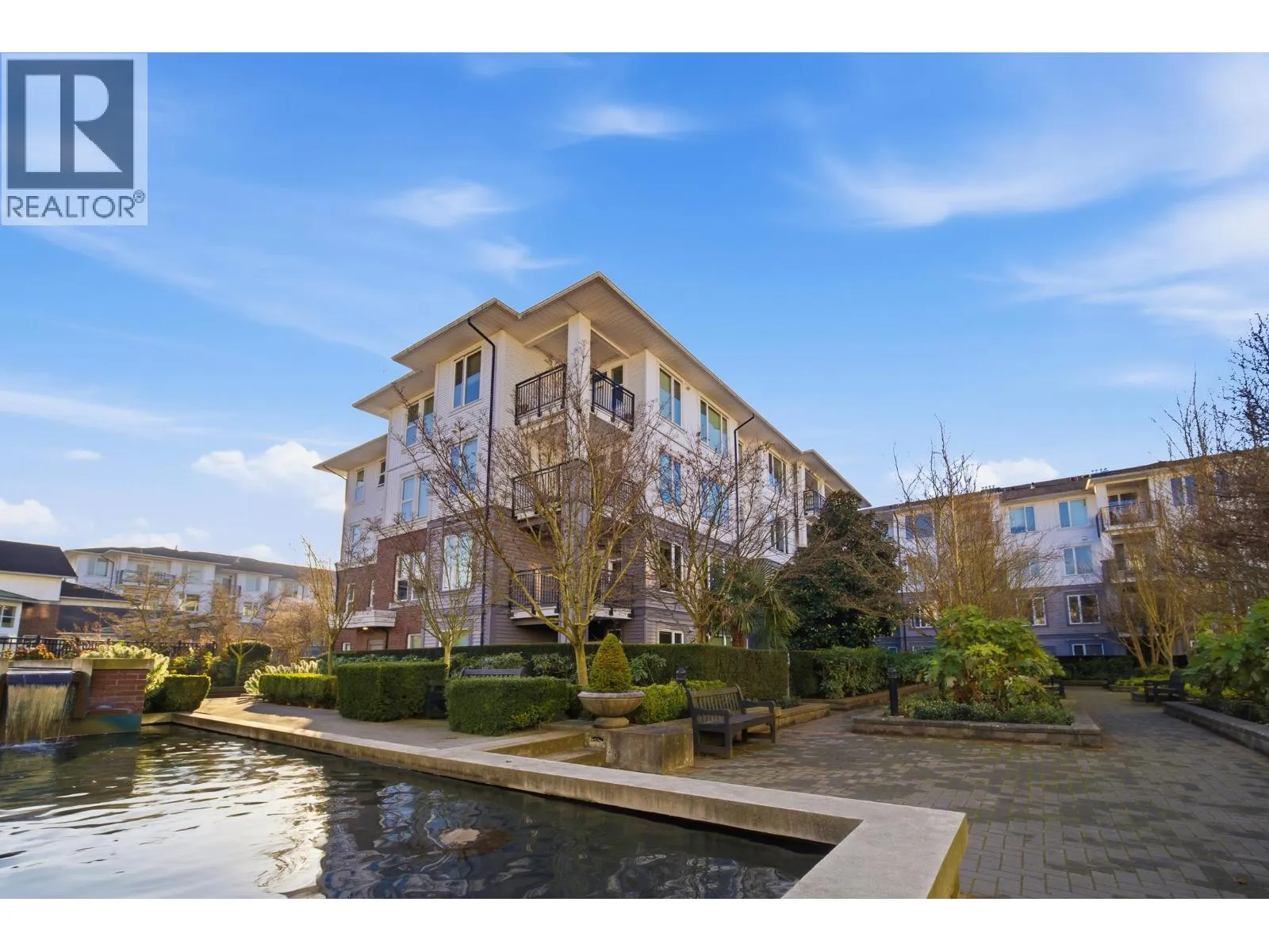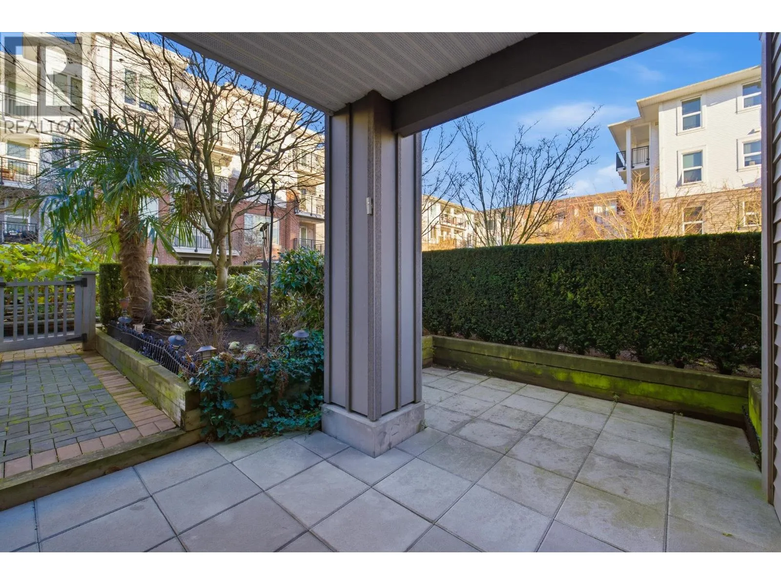 UNIQUE 3 Bed/2 Bath/Flex garden unit at the MAYFAIR PLACE by POLYGON. This elegant home, with 9' ceilings and A/C, combines the features and atmosphere of a traditional house with modern amenities. Crown mouldings throughout with coffered ceilings in the kitchen and dining area. Built-in BDI desk and wall unit in the flex space ideal for home office. Thoughtful and efficient floorplan providing both functionality and privacy. High-end Miele W/D and Bosch D/wash. Each bdrm features custom storage solutions from "California Closet Designs." Enjoy your morning coffee from the private garden patio and stroll across the courtyard to the Clubhouse. Central location, close to transit, shopping, restaurants & Tomsett Elem. 3 side-by-side parking stalls & 1 locker .Open House Feb15 Sun 2-4pm (id:27476)