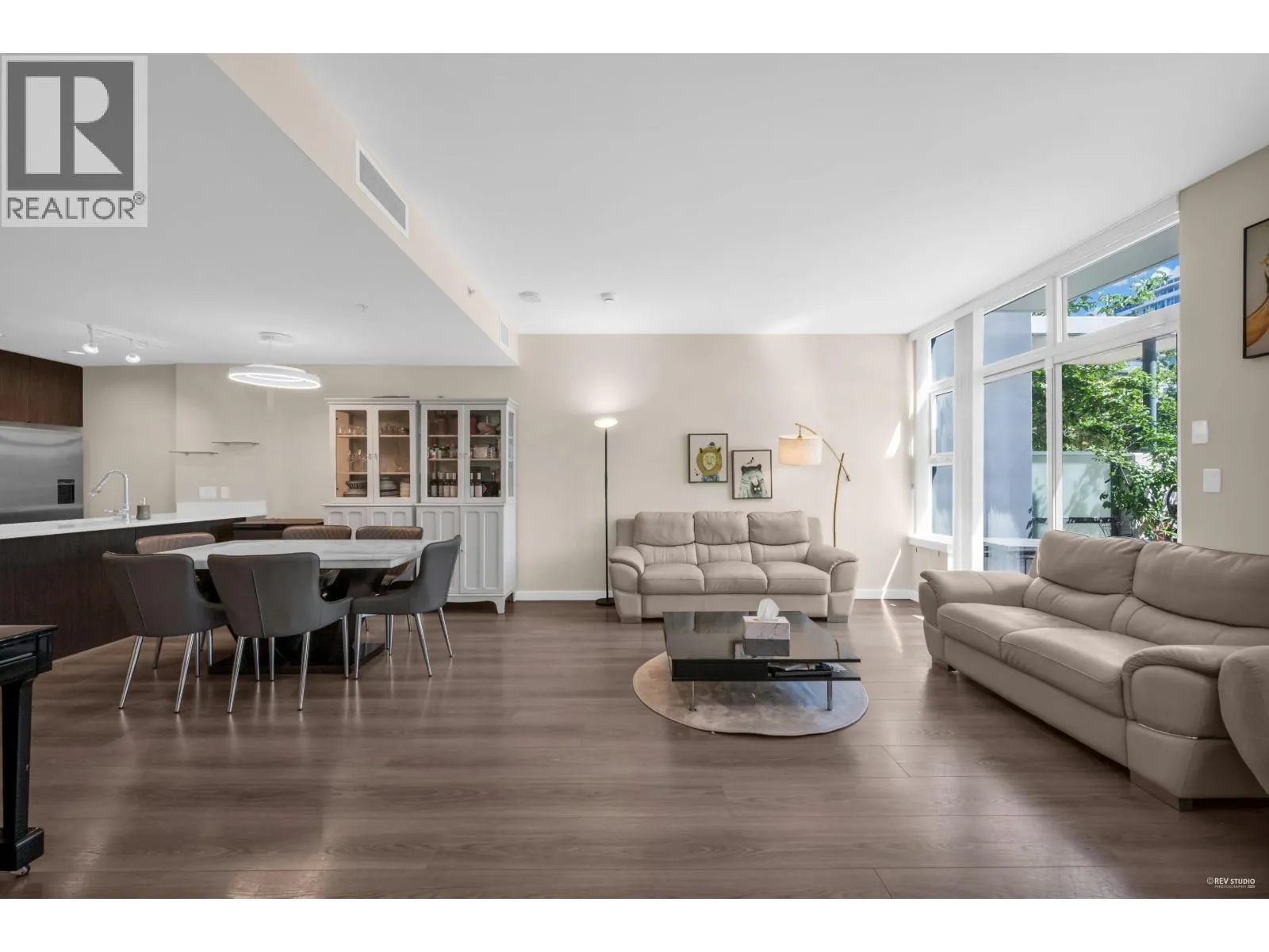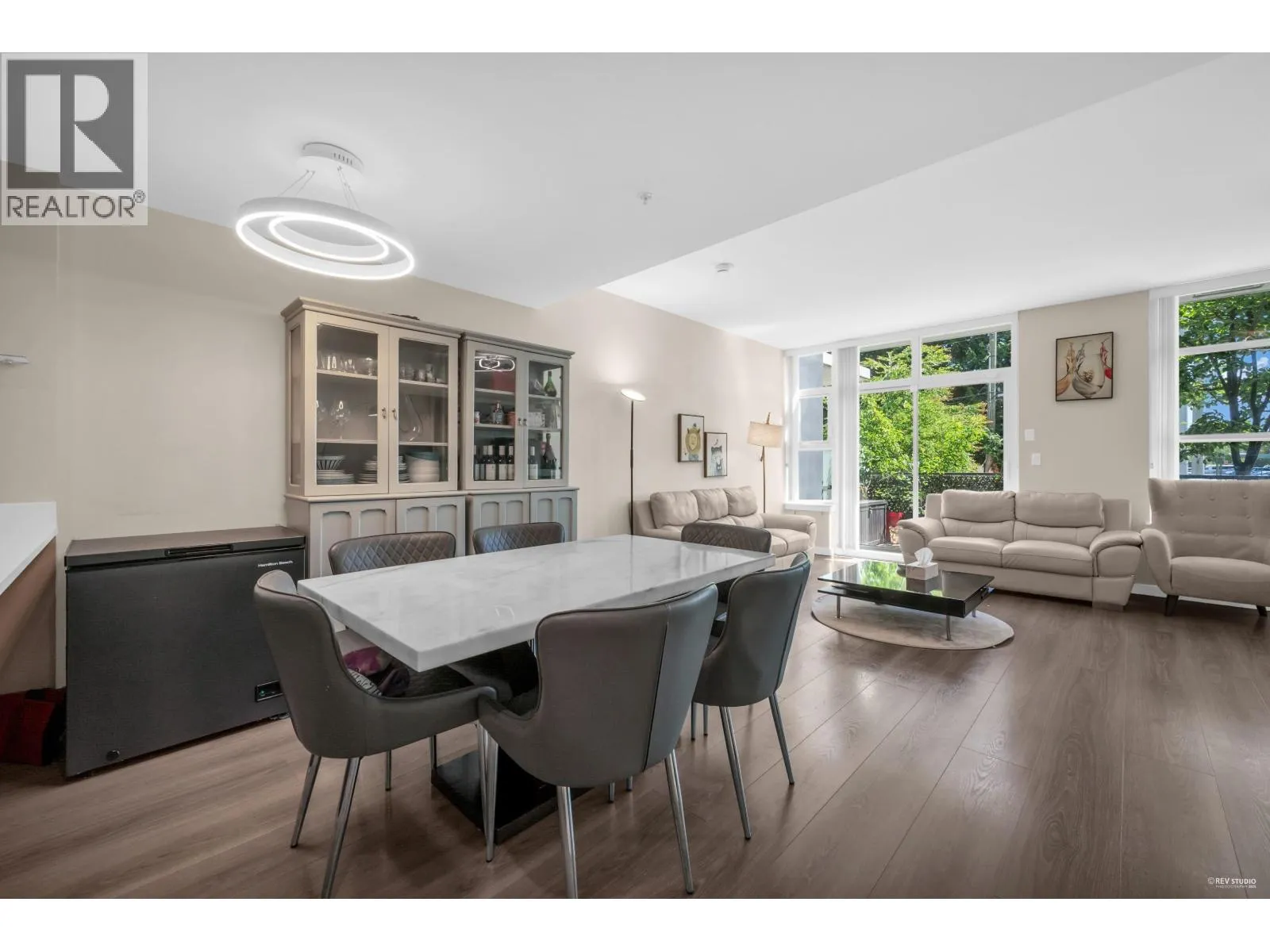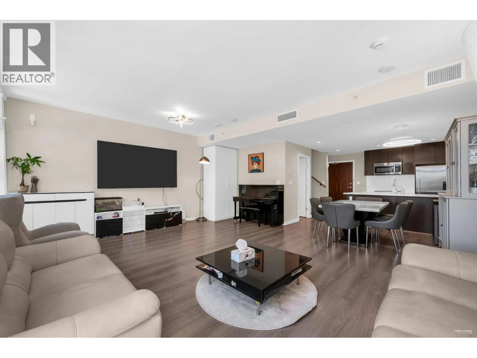 No Strata Fees for One Year! Welcome to the ultimate blend of space, style, and convenience in this concrete-built 2 Bed + Den + 3 Bath townhouse. Originally designed as a 4-bedroom layout, two bedrooms were opened up to create one of the largest living rooms you´ll find in a townhome - airy, open, and full of light. The generous den can easily transform into a third bedroom, home office, or creative studio. Enjoy your private street-level entrance, sleek gourmet kitchen, A/C heat pump for year-round comfort, in-suite laundry, and 1 parking stall. Live the resort life with access to indoor pool, fitness centre, sauna, and more. Just steps from the Capstan SkyTrain Station, T&T Supermarket, top-rated restaurants, and endless shopping. (id:27476)