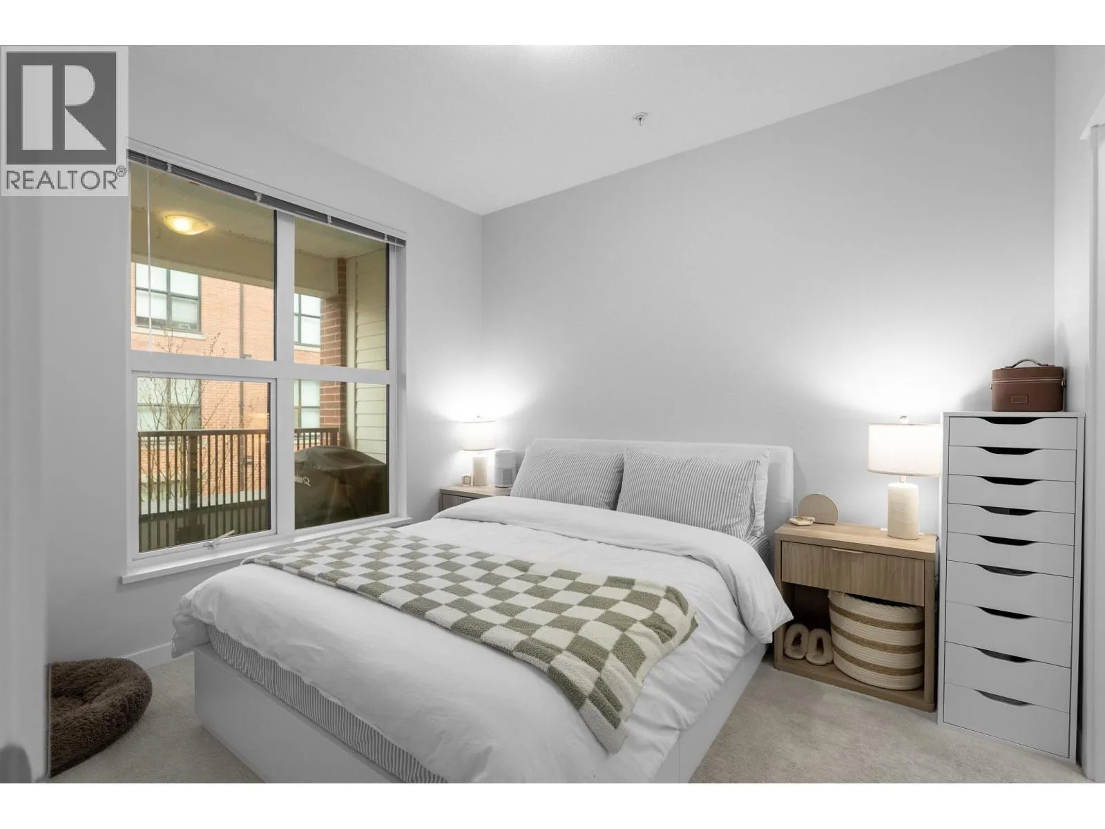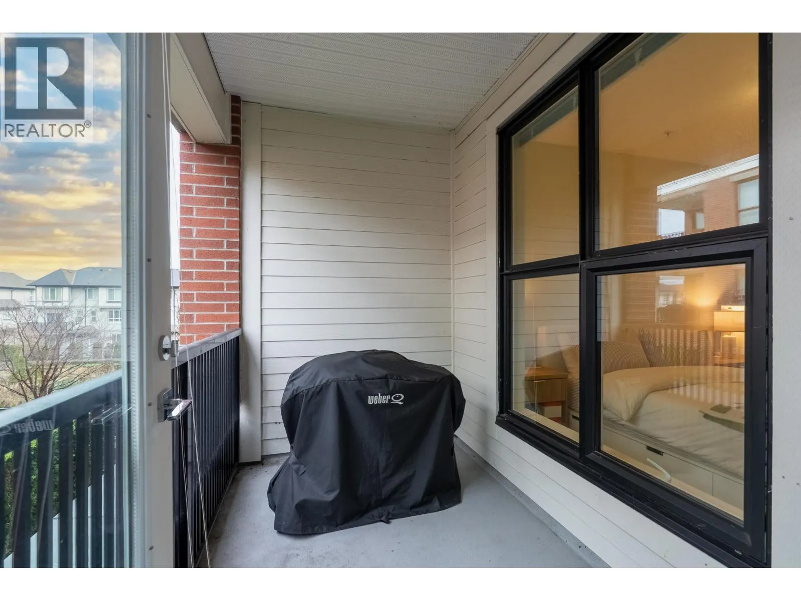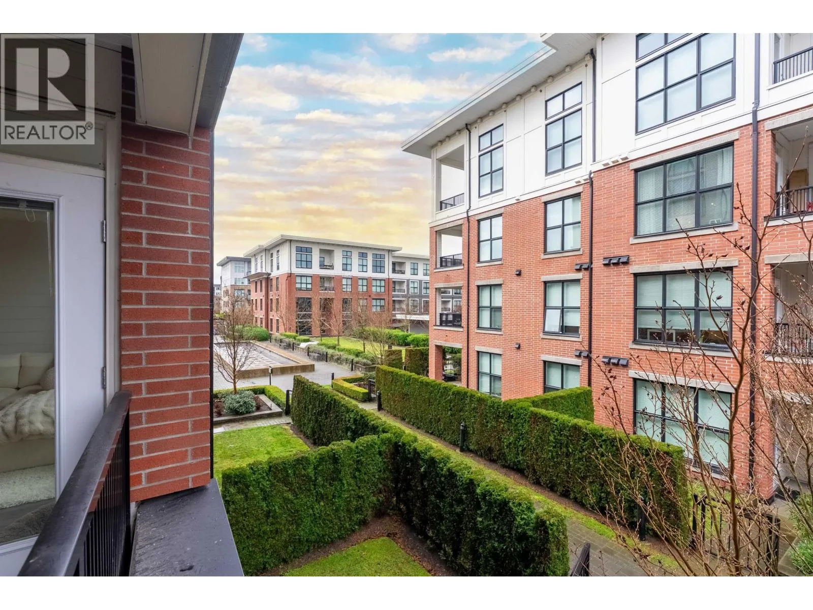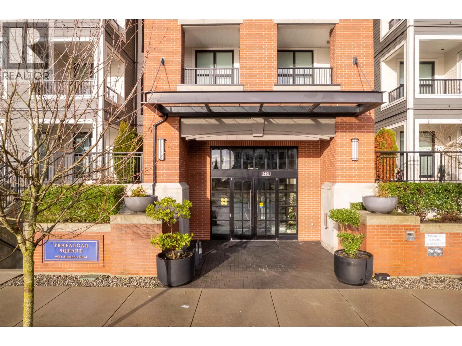Welcome to Trafalgar Square by Polygon! This immaculate 1 bedroom + den, 1 bathroom home offers 638 sq. ft. of thoughtfully designed living space in a quiet south-facing inner unit. Enjoy a spacious balcony overlooking beautifully landscaped gardens. This move-in-ready, owner-occupied home is exceptionally well maintained and features quality finishes, a functional layout, and low strata fees. Residents enjoy access to premium amenities including a fully equipped fitness centre and resident lounge. Ideally located just steps from Central at Garden City, Walmart, schools, public transit, Lansdowne Centre, and the SkyTrain. A must-see property! (id:27476)