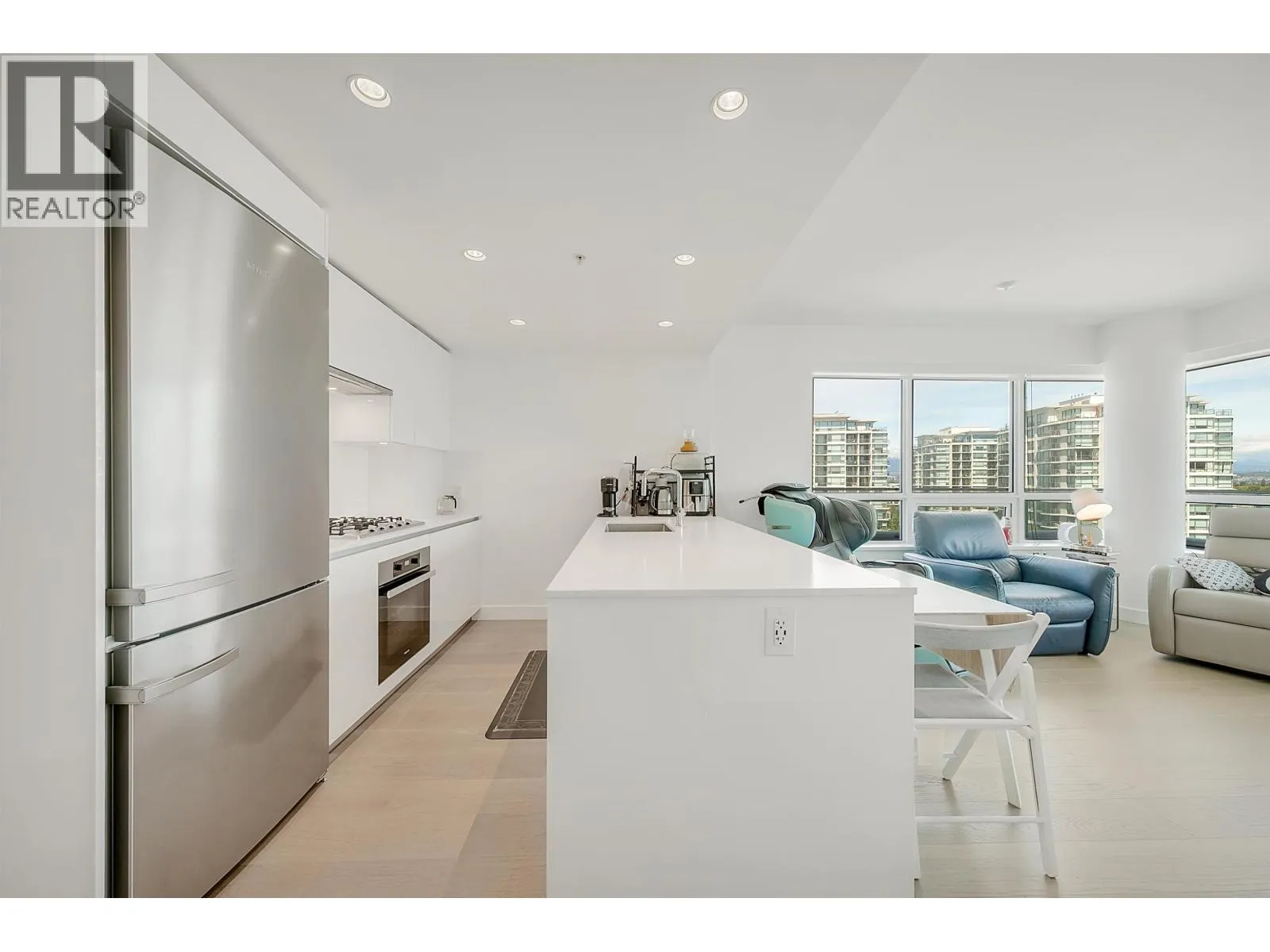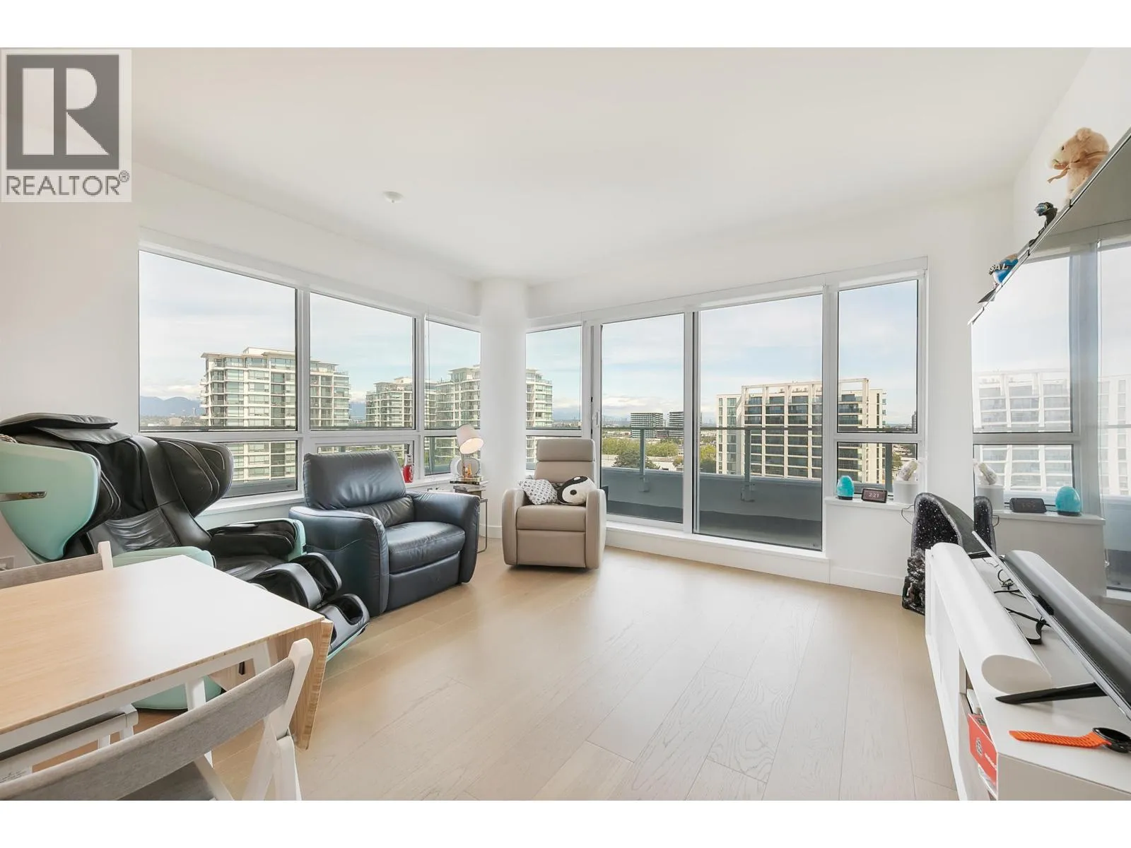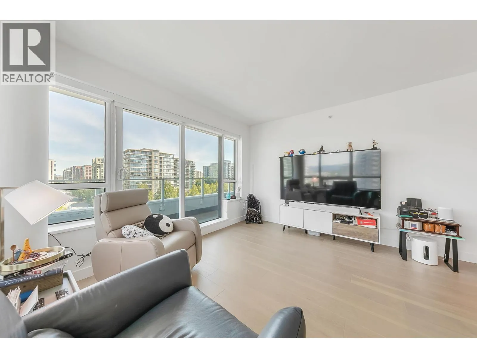 PANORAMIC VIEWS. ELEVATED LIVING. UNMATCHED CONVENIENCE. Wake to stunning views and natural light through floor-to-ceiling windows in this sophisticated home. The 250+ sq. ft. wraparound balcony offers seamless indoor-outdoor living-perfect for morning coffee or sunsets. Features include A/C, premium Miele appliances, engineered hardwood floors, and an open layout for entertaining. Steps to restaurants, shopping, and conveniences; minutes to Richmond Centre, YVR, and the Canada Line. Enjoy resort-style amenities including a double-height fitness centre, lounge, guest suite, music/karaoke rooms, private mahjong room, and 25,000+ sq. ft. of landscaped outdoor space. Includes two side-by-side parking stalls, the second valued at approx. $40,000. Some photos digitally staged and/or decluttered (id:27476)