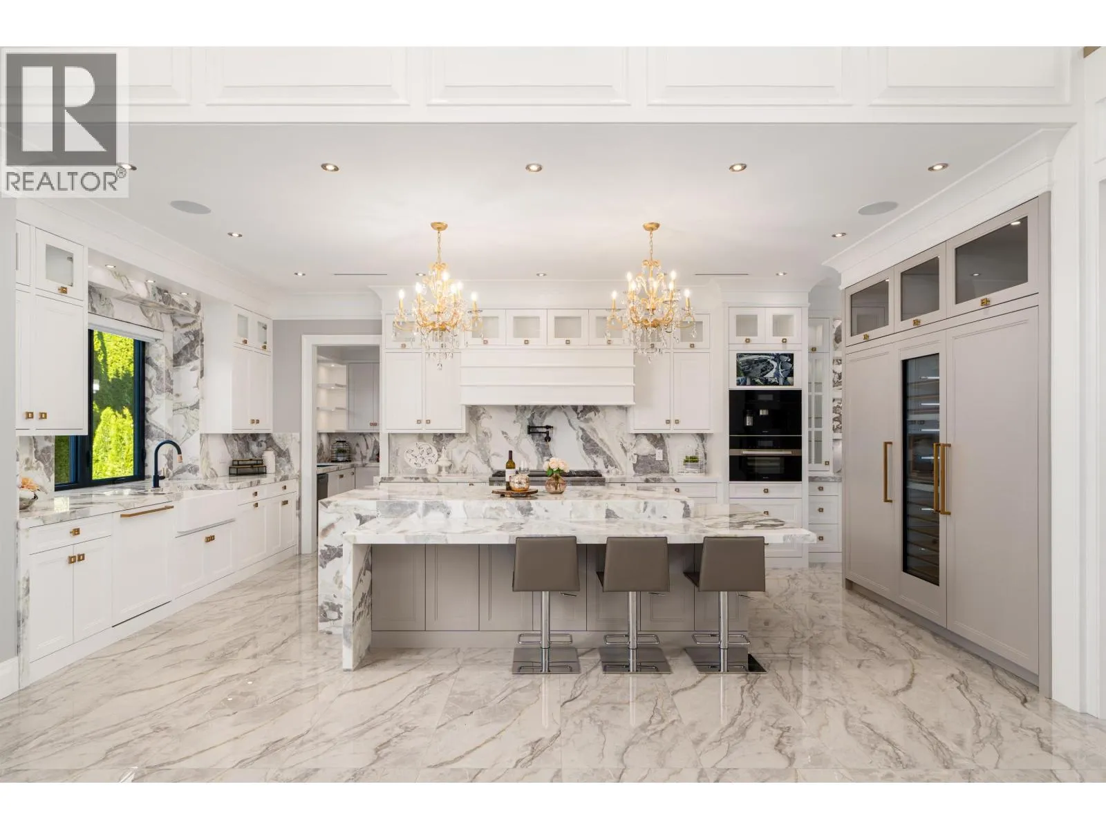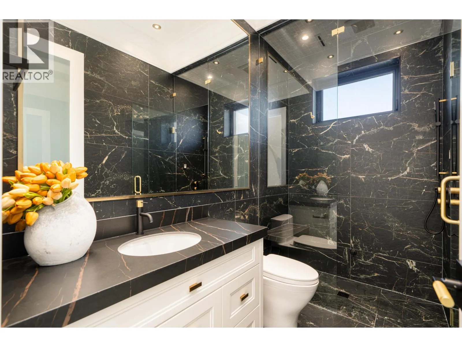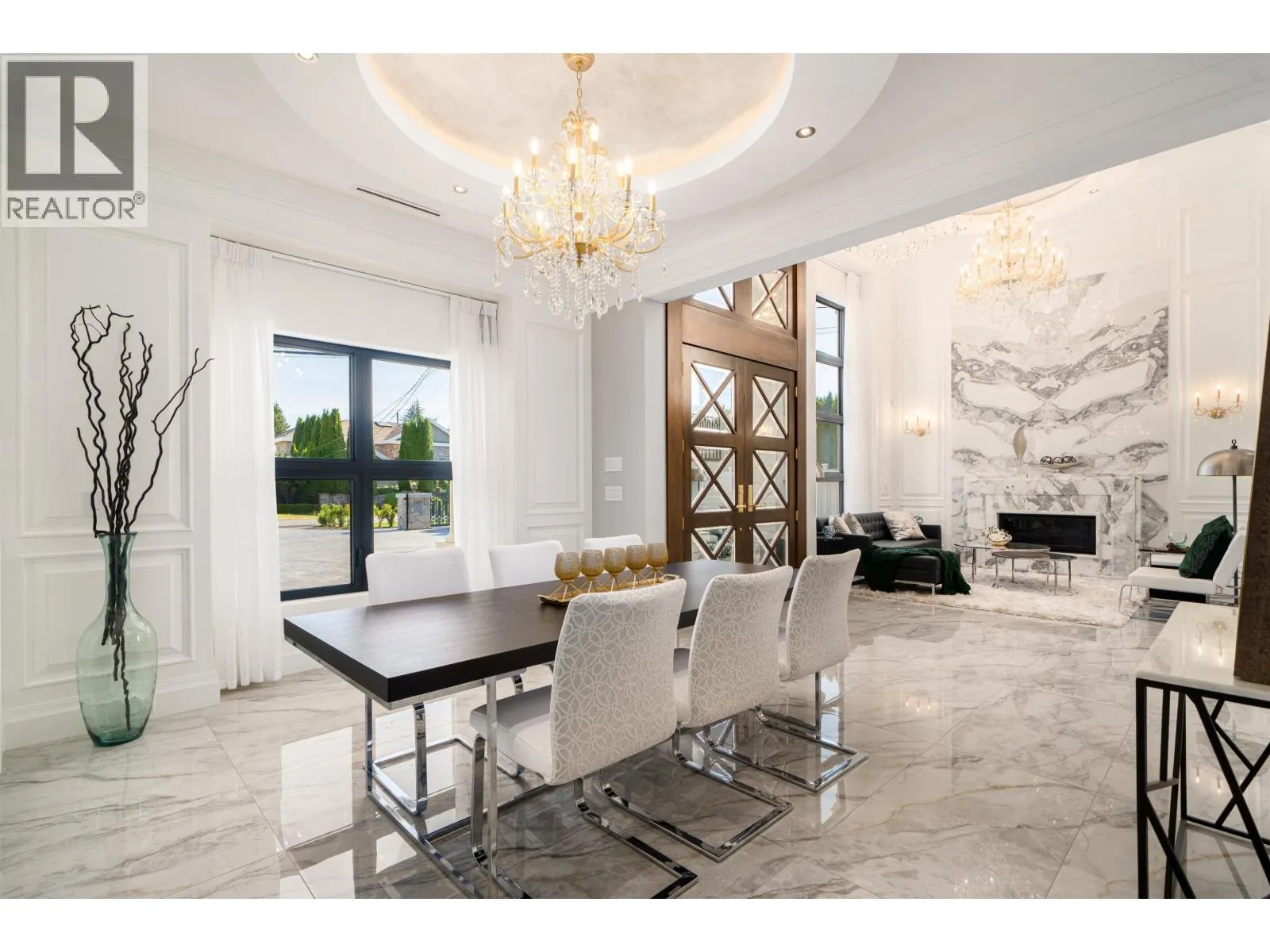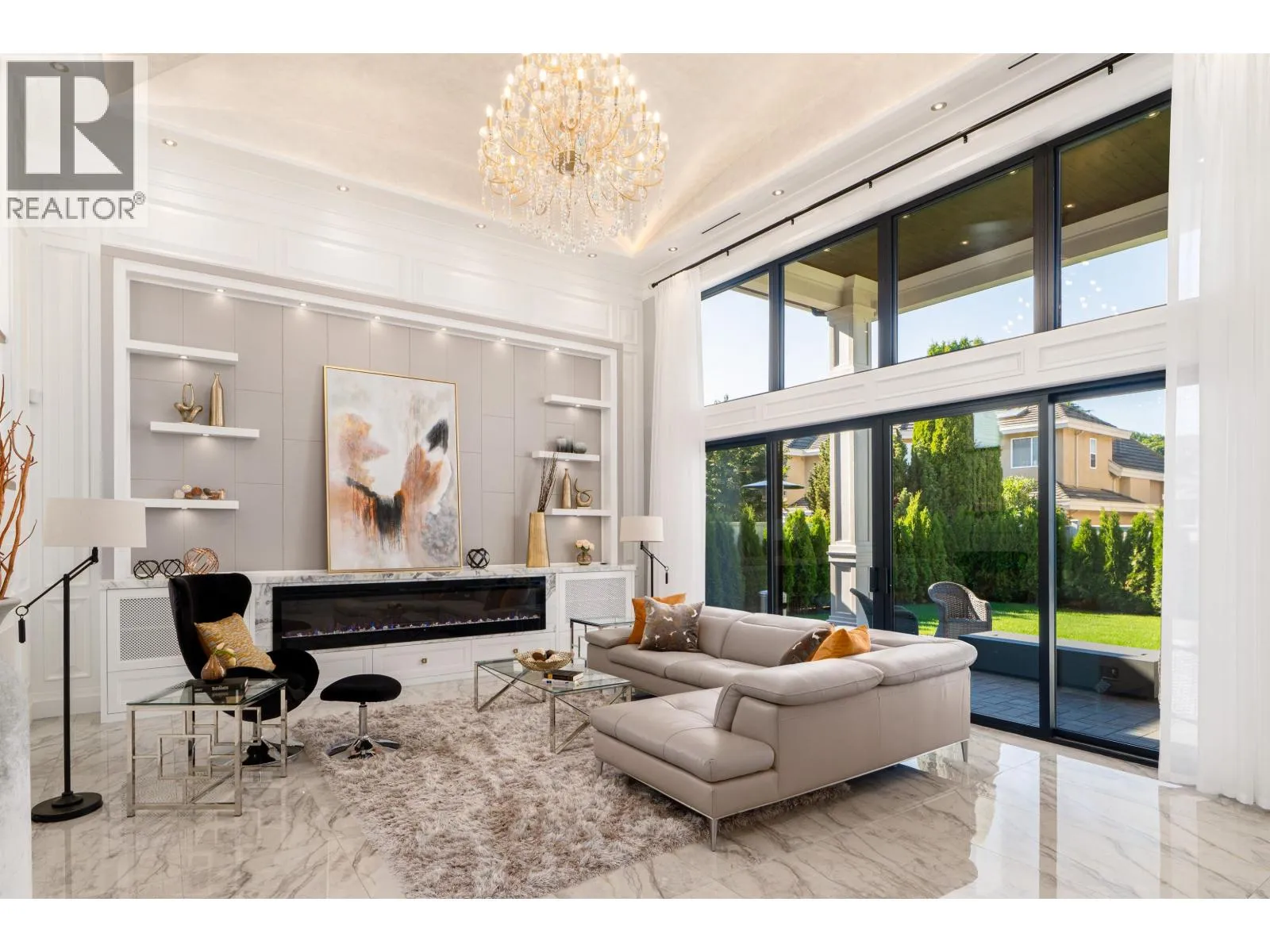 Elegant and luxurious custom home in prestigious Granville area! North-South facing with a grand foyer featuring a stunning circular ceiling design and artistic wall accents. Italian marble flooring throughout, adorned with dazzling chandeliers. Spacious family room boasts a soaring vaulted ceiling, custom marble wall panel, and a warm fireplace. Gourmet kitchen with European marble countertops, top-tier Miele appliances, and premium cabinetry. Two master bedrooms, one with an expansive sundeck; all four upstairs bedrooms include walk-in closets. Legal suite below. Smart home system with motorized curtains, A/C, HRV, Hikvision intercom. Enjoy a fully equipped media room with wet bar, plus a private sauna. A true masterpiece for the discerning buyer! (id:27476)
