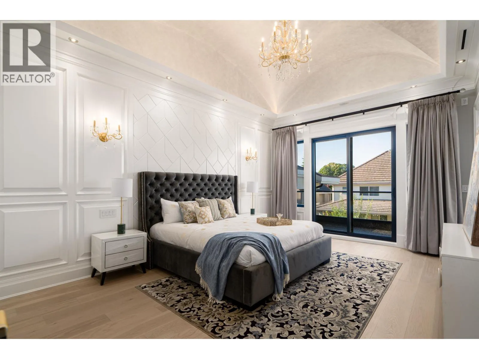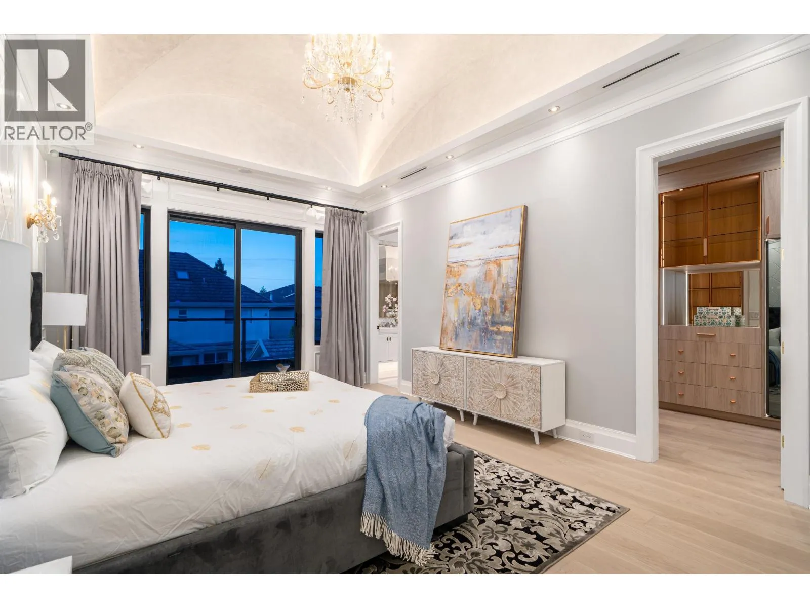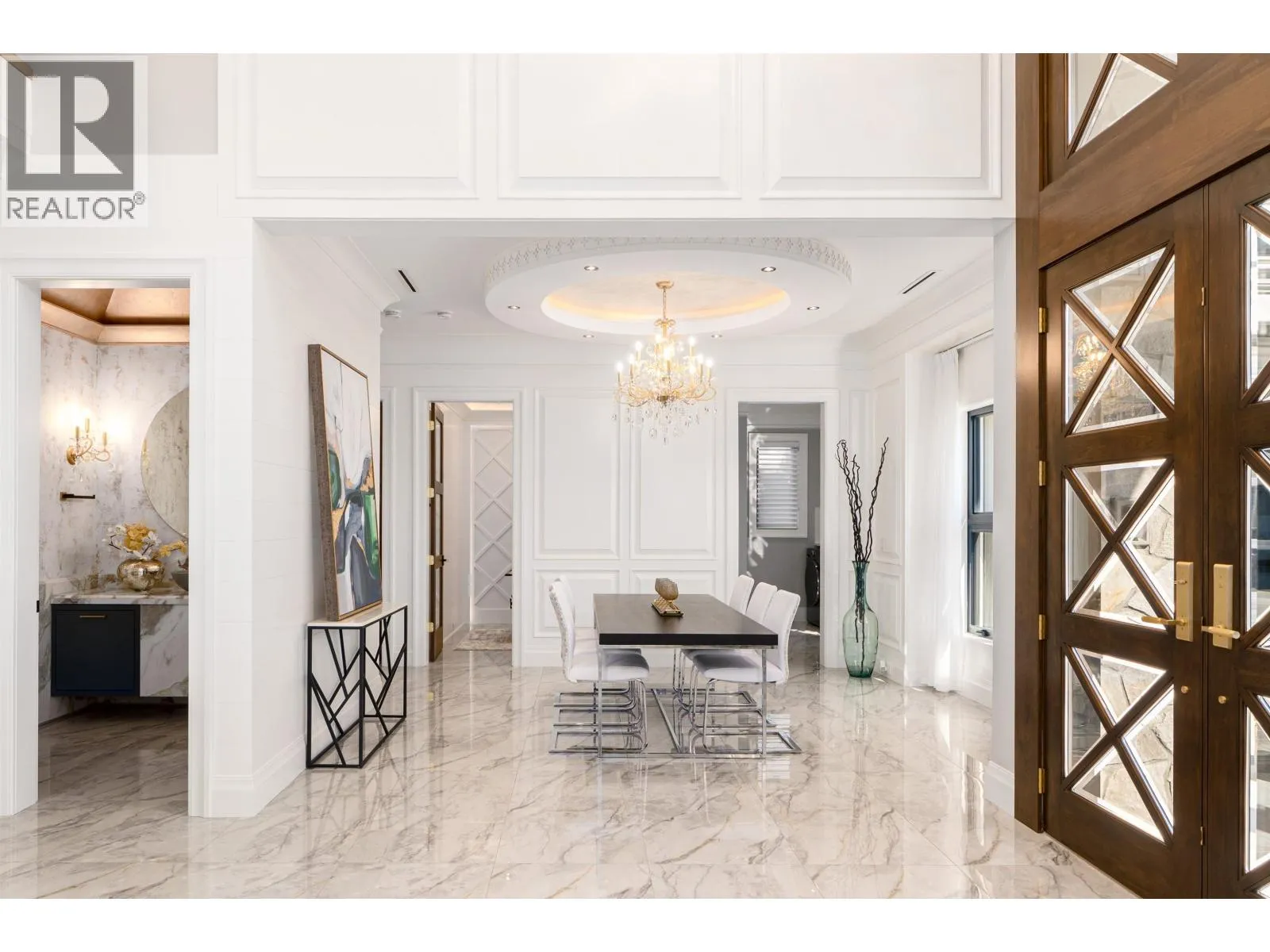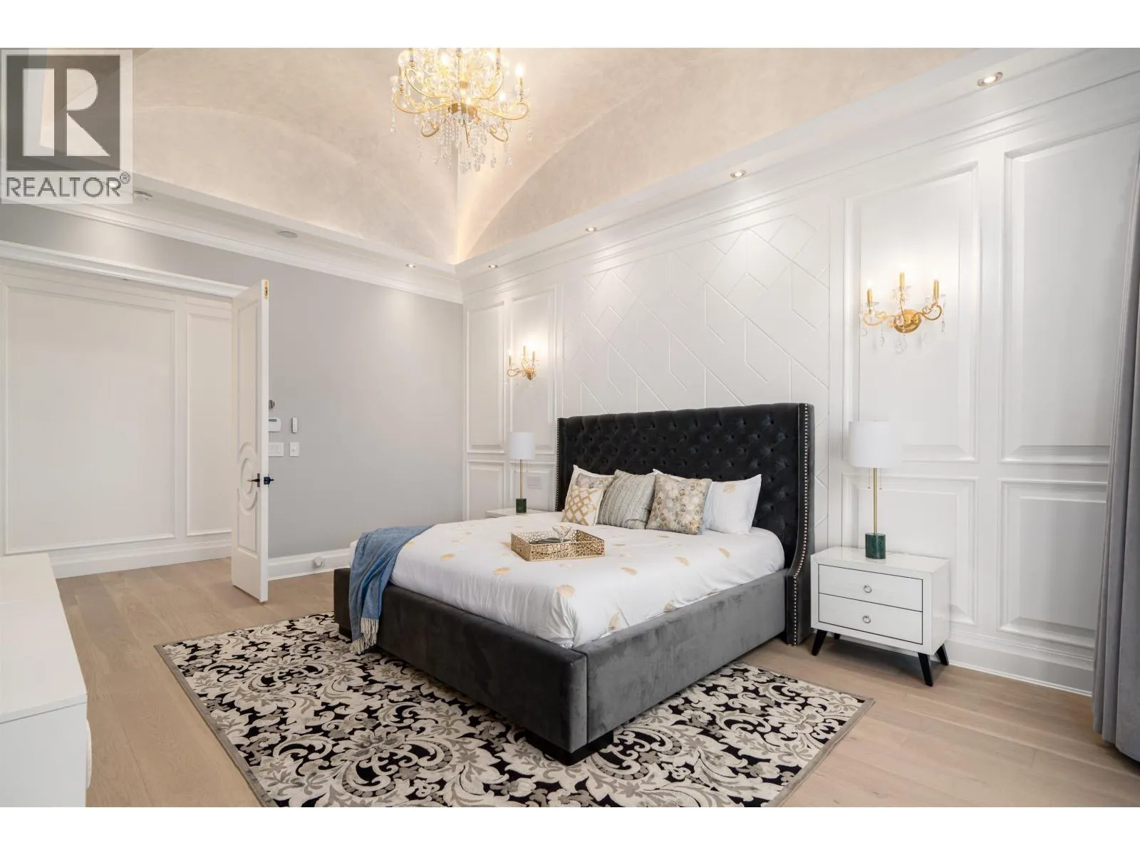 Elegant and luxurious custom home in prestigious Granville area! North-South facing with a grand foyer featuring a stunning circular ceiling design and artistic wall accents. Italian marble flooring throughout, adorned with dazzling chandeliers. Spacious family room boasts a soaring vaulted ceiling, custom marble wall panel, and a warm fireplace. Gourmet kitchen with European marble countertops, top-tier Miele appliances, and premium cabinetry. Two master bedrooms, one with an expansive sundeck; all four upstairs bedrooms include walk-in closets. Legal suite below. Smart home system with motorized curtains, A/C, HRV, Hikvision intercom. Enjoy a fully equipped media room with wet bar, plus a private sauna. A true masterpiece for the discerning buyer! (id:27476)
