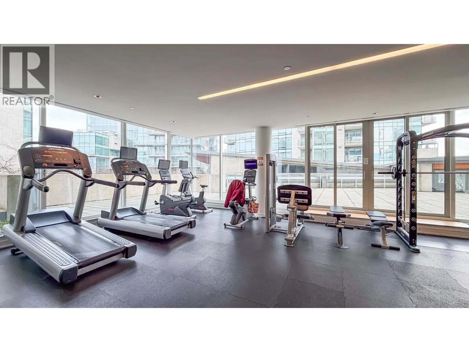 Welcome to River Green 1. This well maintained 2 bedroom, 3 bathroom residence offers approximately 1,395 square ft of thoughtfully designed living space. The functional layout features high end finishes, floor to ceiling windows, and bright open living and dining areas. The modern kitchen is equipped with premium appliances and ample storage. Both bedrooms offer generous space, including a primary with spa inspired ensuite. Enjoy a private patio and resort style amenities including concierge, indoor pool, fitness centre, and lounge areas. Prime Brighouse location with easy access to the riverfront, shopping, dining, and transit. https://youtu.be/6RbmZ83ITIc (id:27476)
