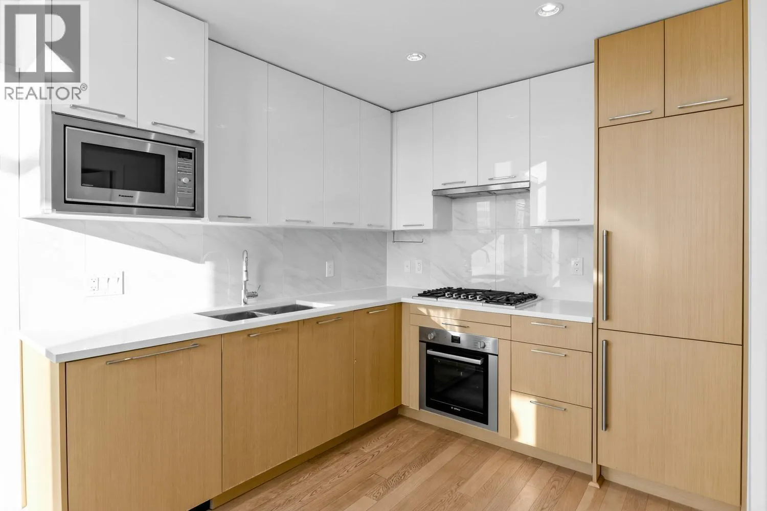 This southwest-facing corner home is situated in Richmond´s rapidly growing Alexandra Park neighbourhood. Flooded with natural light from large, unobstructed windows-rare in this high-density area-the home offers a bright and airy living experience. The functional split-bedroom layout ensures excellent privacy, while built-in A/C provides year-round comfort. Modern interiors feature wood flooring throughout and stainless steel appliances. One parking stall is included. Enjoy unbeatable convenience just steps from Walmart, Central at Garden City, restaurants, shops, parks, and public transit. The building is both pet- and rental-friendly. An exceptional opportunity to own a bright two-bedroom corner unit at outstanding value-ideal for first-time buyers. (id:27476)
