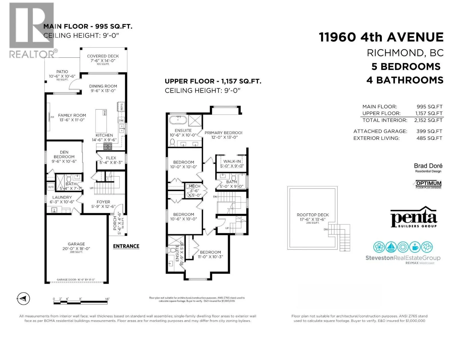 Discover modern West Coast living with exceptional craftsmanship in this stunning new single-family home by Penta Builders Group. Offering 2,152 square ft of thoughtfully designed space with 5 bedrooms and 4 full bathrooms, including a bedroom and full bath on the ground level-ideal for guests, multi-generational living or extra space. Features include an EV-ready double garage, private yard with patio & greenspace, and expansive rooftop deck with water and mountain views. Unbeatable central location in the heart of Steveston Village. Built by a respected local builder known for exceeding expectations. (Photos of identical floorplan home but different colour scheme; showhome & opens at 3411 Chatham St). Open House Saturday & Sunday Feb 14th/15th, 2-4pm! (id:27476)