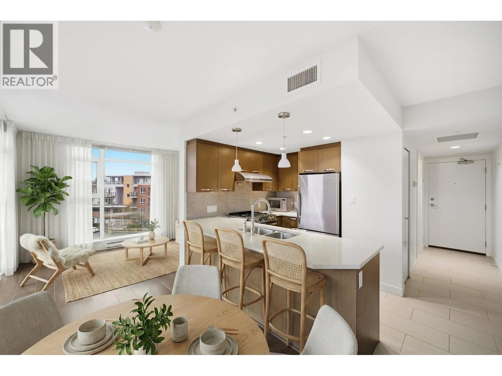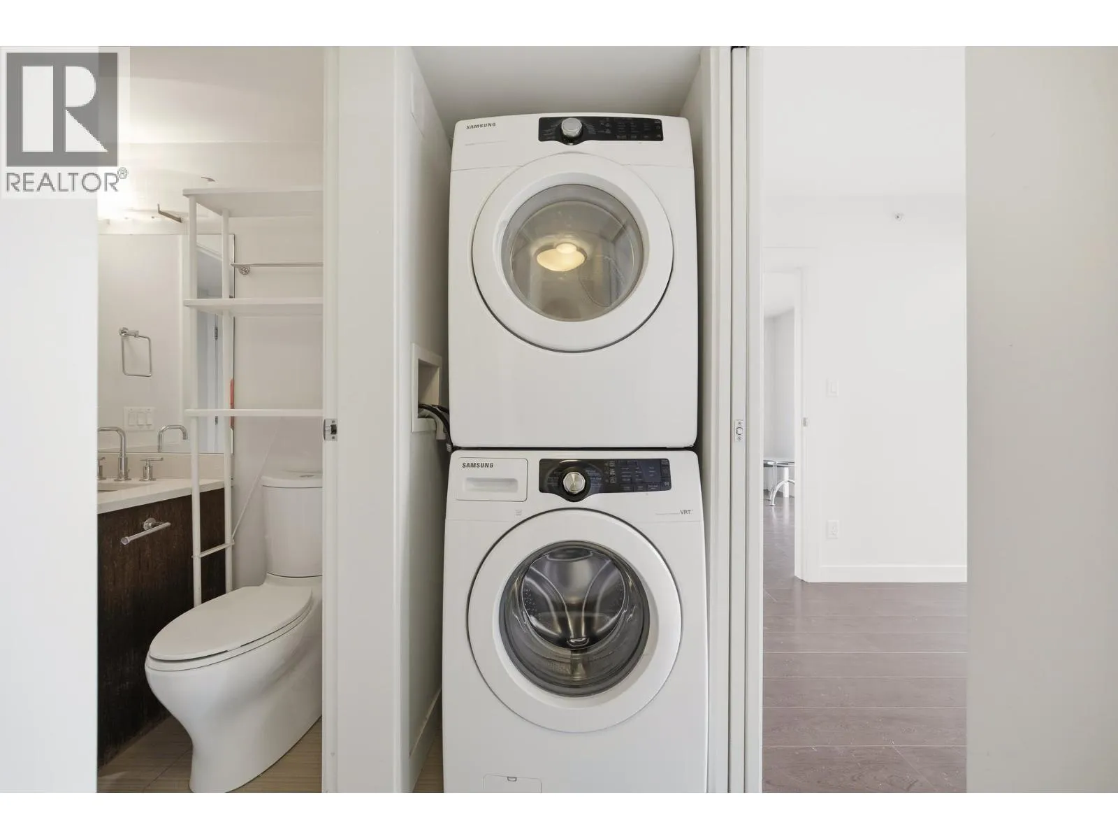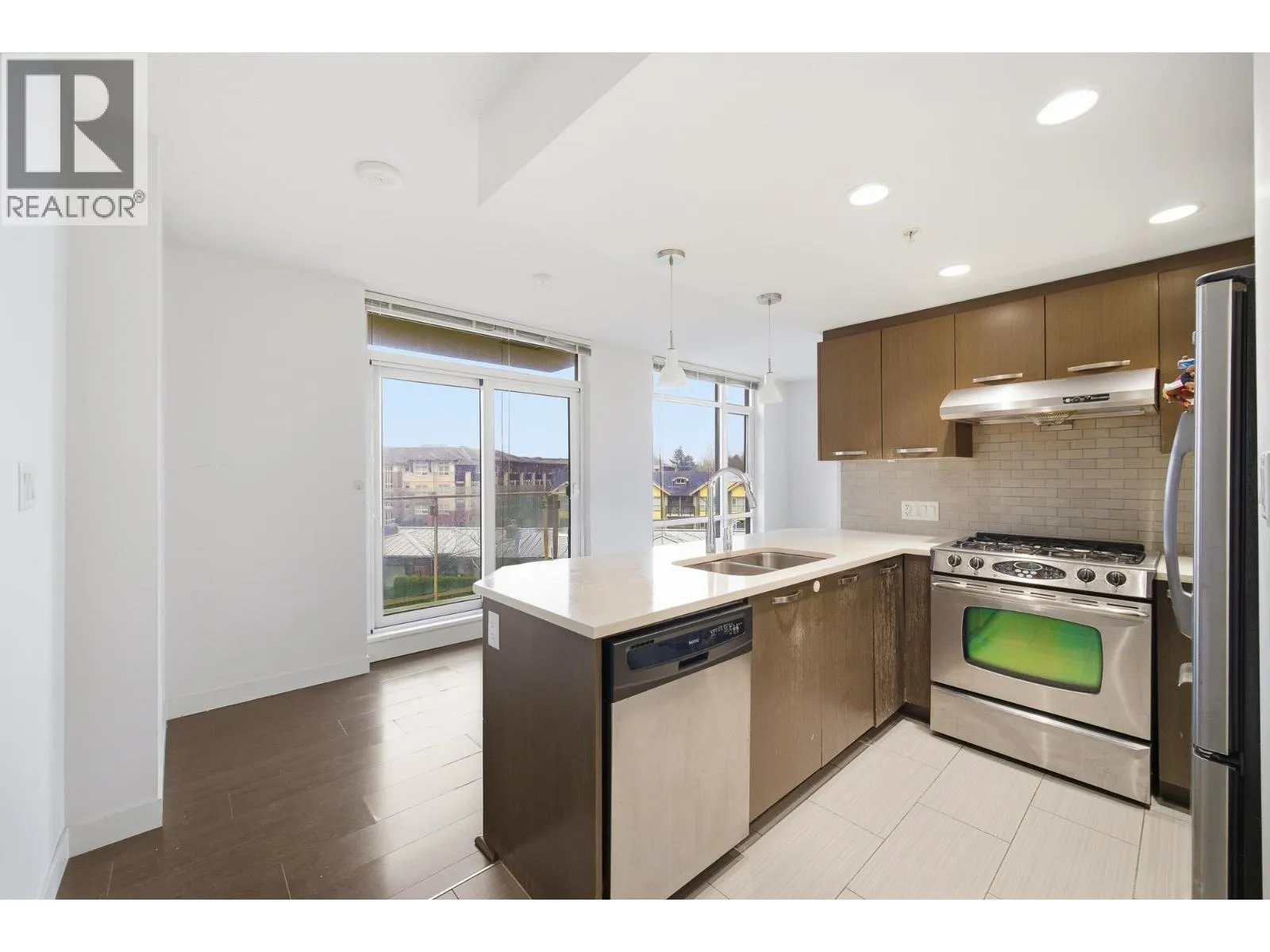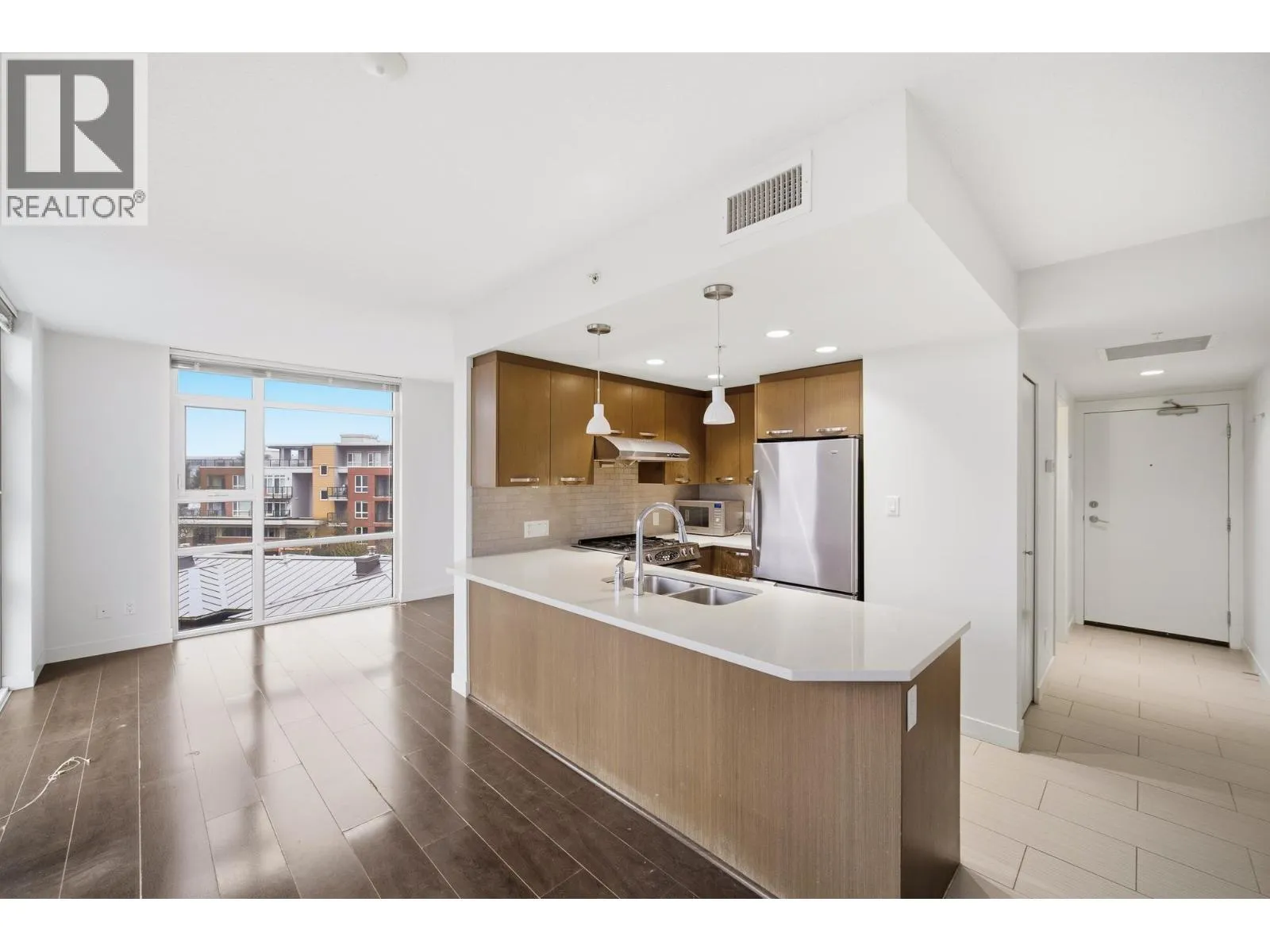 1 BR corner unit. Great investment unit to be rented out. Central air conditioning, low emission windows & includes fridge, dishwasher, fan/microwave & W/D . More stronger pre-stressed concrete construction and project features over 21,000 SF on lush courtyard. Solid 3 cm thick solid engineered quartz countertops with polished edges, under-mount double bowl sink and single gooseneck faucet with full out vegetable tray. Modern wood veneer cabinets with brushed nickel pulls. Fitness facility with steam room & use of lounge & meeting room & kitchen for your social gatherings. Use of storage locker. Low density 2 tower project with central location close to Richmond Centre and Canada Line Station. (id:27476)