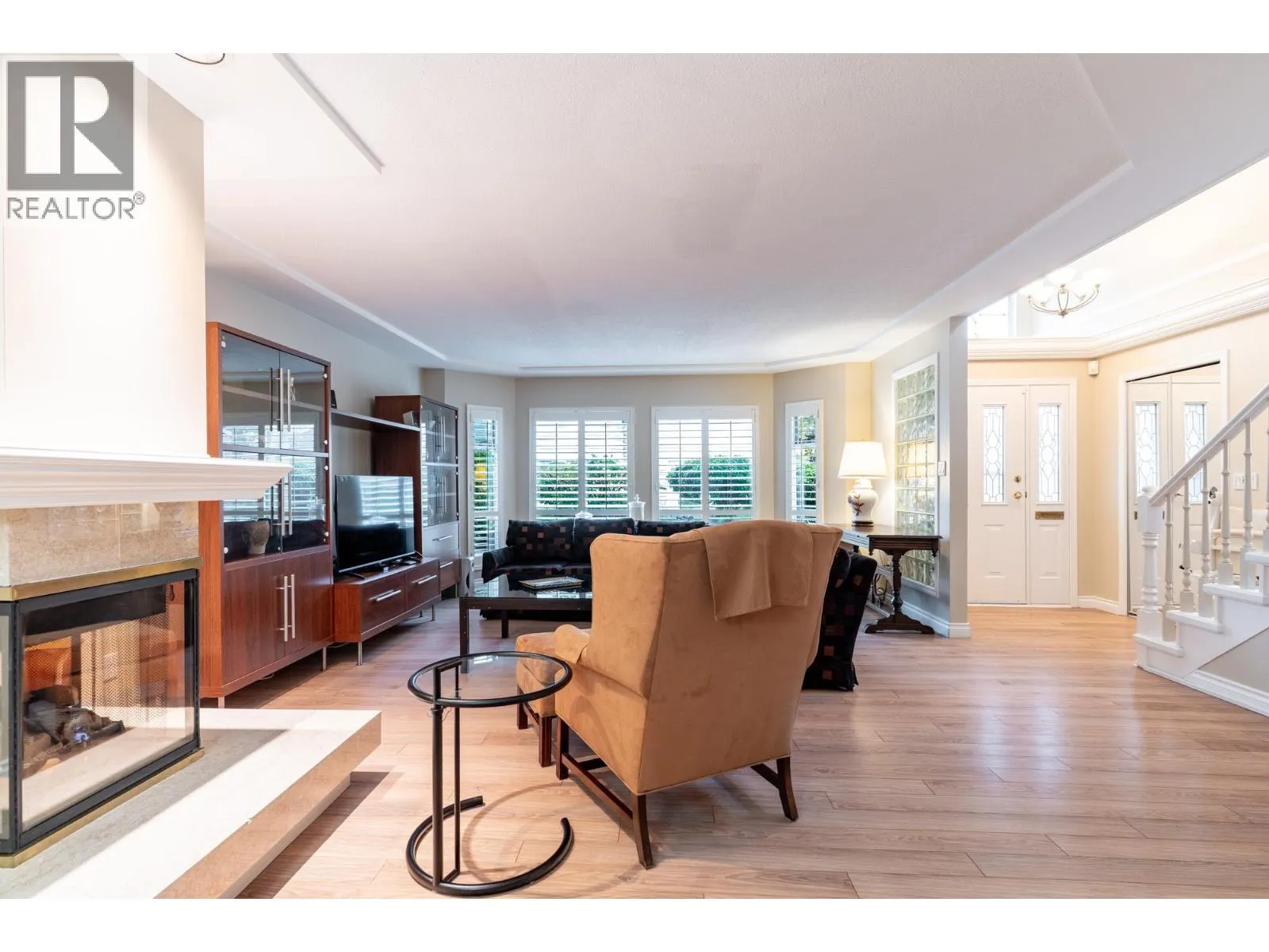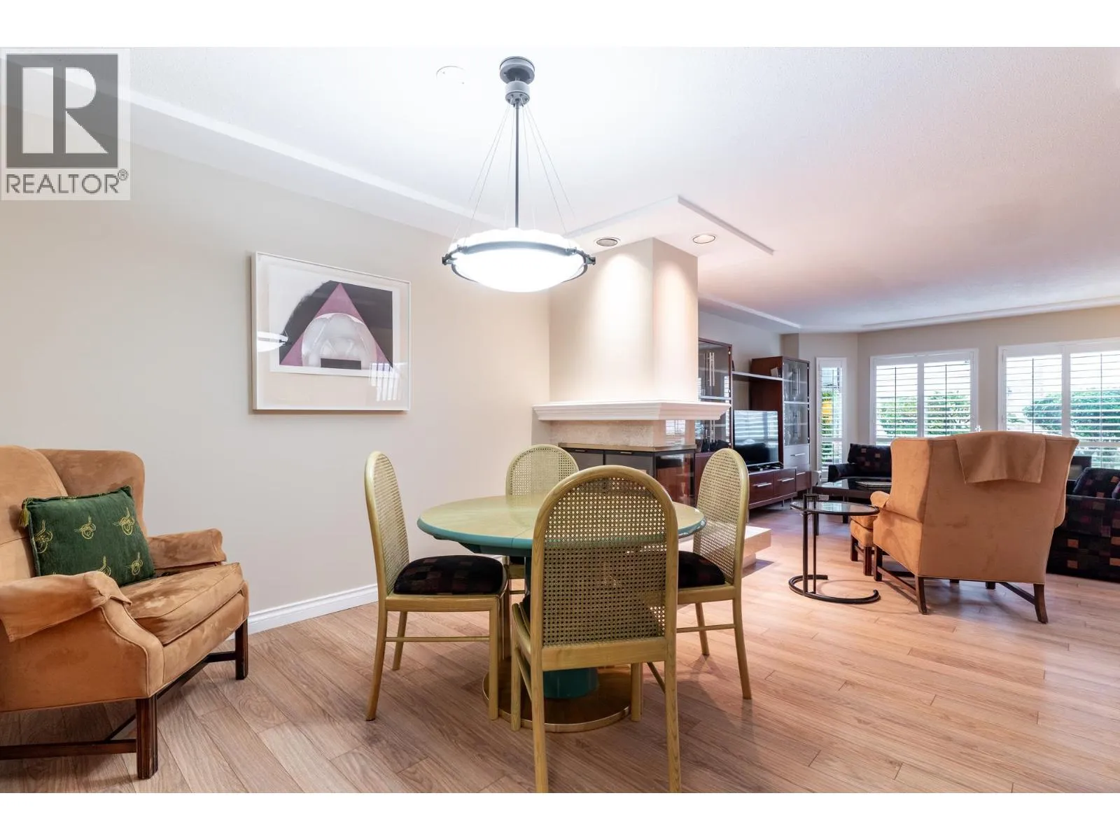 A rare find - DUPLEX style two level townhome in the Broadmoor area-Sunnymede Estate a well managed 12 unit complex! Situated inside the complex with a western exposure - the inside features open concept living/dining areas, double sided fireplace, California shutters, updated kitchen (s/steel appliances+warming drawer), adjacent family room and eating area has picture windows overlooking private landscaped yard, access via sliding door. Upper floor primary bedroom with updated ensuite, luxurious seamless glass shower w/6 shower heads, plus extra storage space. A/C split system, Navien on demand hot water. Double car garage is oversize 451 sq.ft.- room for a workshop area or bikes. Steps to shopping, schools and transit! Self managed with low main fees! Main fees: $348/mth (id:27476)