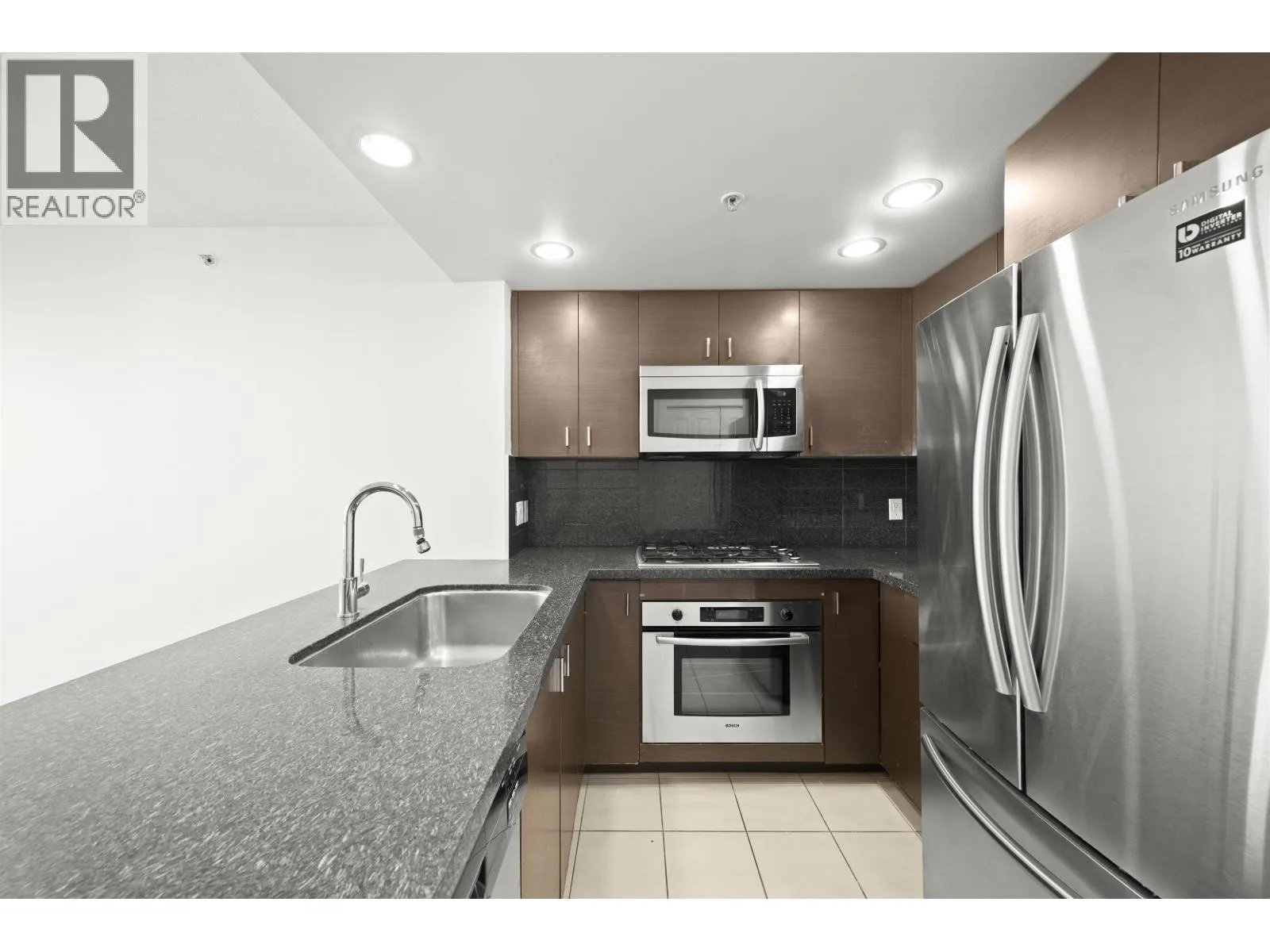Residence on a Park at Garden City This bright 2-bedroom, 2-bathroom home offers a well-planned open layout with large windows that frame sweeping west-facing city and mountain views. The gourmet kitchen anchors the home with granite countertops, stainless steel appliances, and a gas cooktop - ideal for cooking and entertaining. The primary bedroom is a comfortable retreat featuring a walk-in closet and generous daylight. Step outside to one of Richmond´s best green backdrops: direct adjacency to the 20-acre Garden City Park. All this in an ultra-convenient location just minutes to Richmond Centre, Walmart, Kwantlen Polytechnic University, and the Canada Line SkyTrain. Strata permits air-conditioning installation (Strata Approved). Move-in ready. Easy to show. (id:27476)