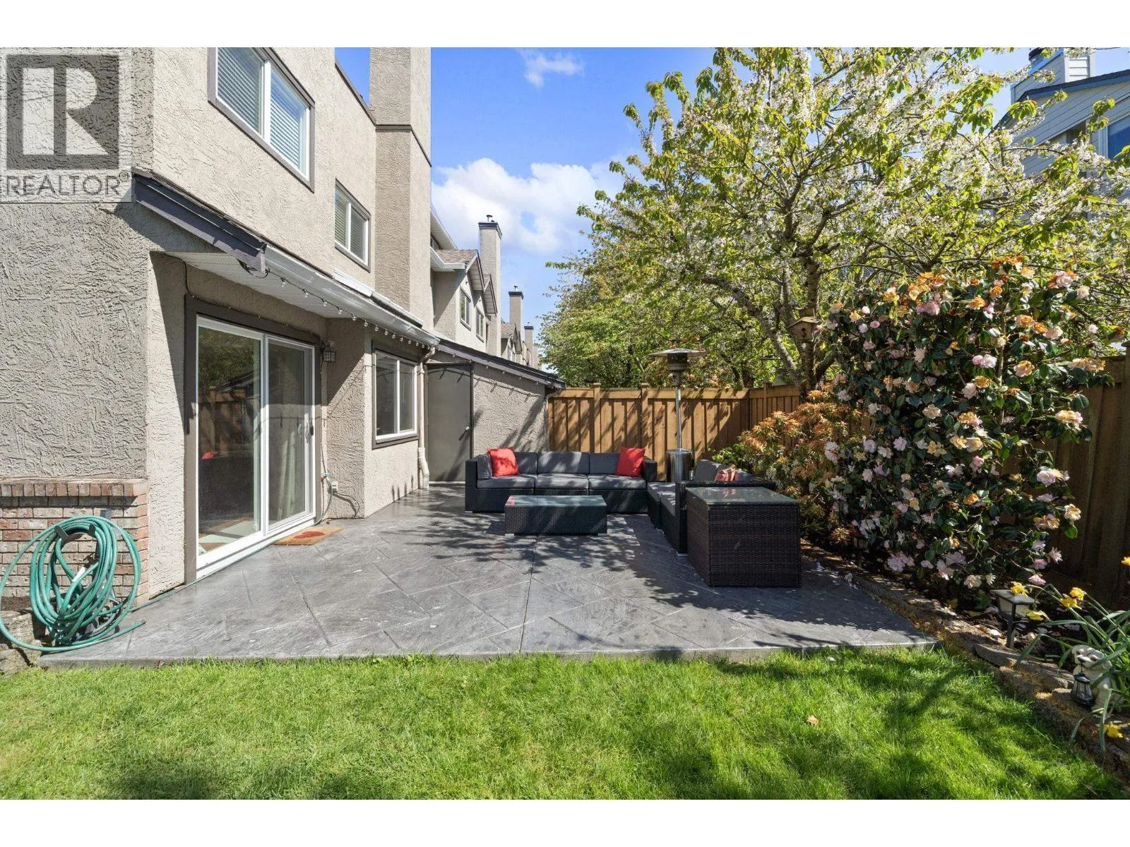 FINALLY, the ONE you've been waiting for in STEVESTON!!! The #1 unit in the complex with a HUGE house sized SOUTH/WEST backyard with an upgraded stamped concrete patio and custom storage shed. FULLY RENOVATED throughout with a gorgeous open concept kitchen, living & dining area with NEW WINDOWS and Sliding Doors throughout. Boasting approx 1655 sqft of living space throughout with 3 Generous sized bedrooms, 3 bathrooms fully updated, and 3 outdoor spaces that include a rooftop deck, balcony off the primary bedroom and the private patio on the main level. Comes with 2 parking, 1 car garage and tons of street parking. The closest thing to a house in one of the best neighborhoods in Richmond. Fantastic schools include Homma Elementary and Mcmath High School. Some photos are virtually staged. (id:27476)