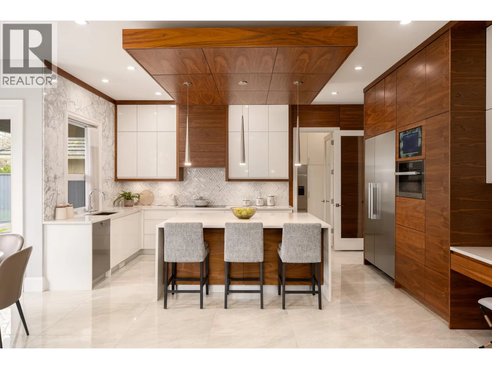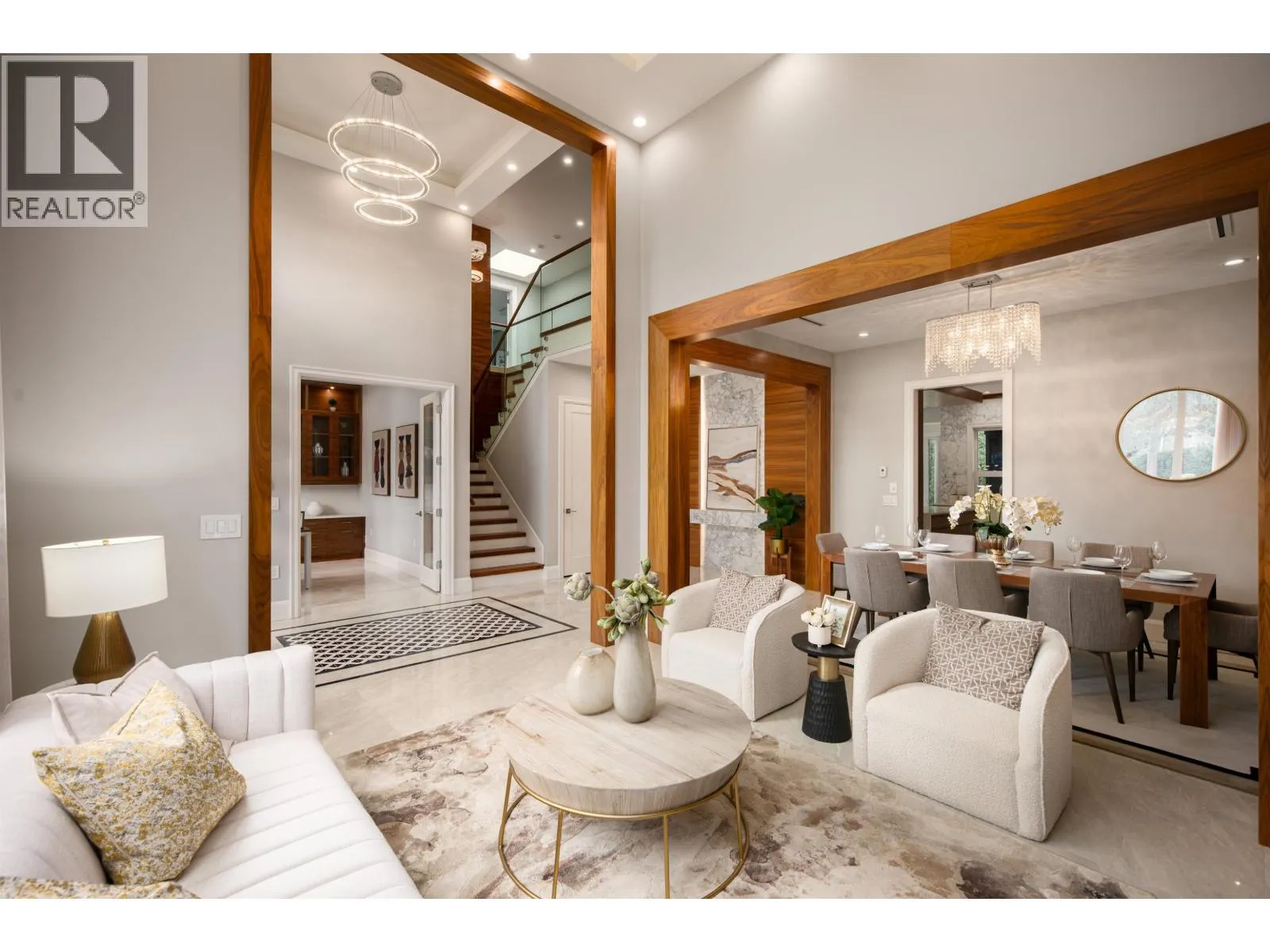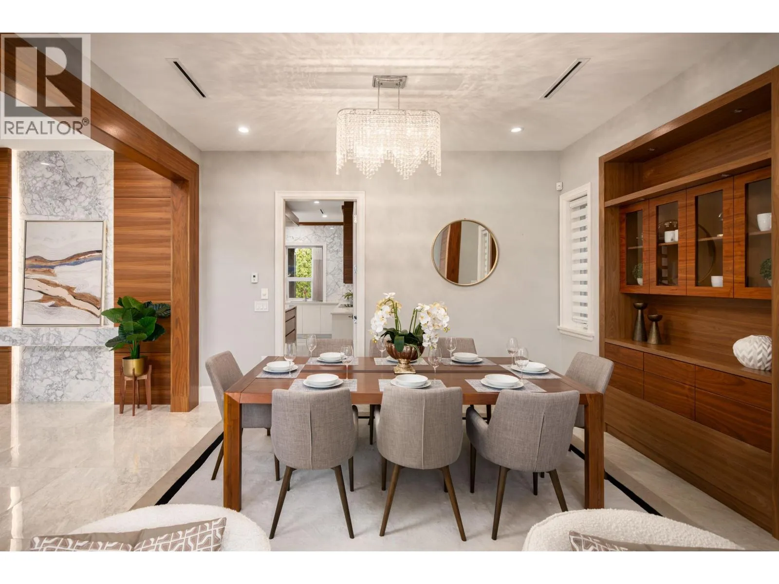 Don´t be fooled by the address. This exceptional owner-built luxury residence sits on a 10,004 sq.ft. lot with an additional 70 ft setback from the quiet portion of Railway Ave, creating a remarkably private and tranquil setting. Mature trees provide excellent natural noise buffering, resulting in a quiet interior and backyard. Meticulously maintained and constructed with top-tier materials throughout, the home showcases extensive wood detailing, high-end German Miele appliances, an oversized wok kitchen, marble and premium stone finishes, soaring ceilings, and custom built-in storage. The upper level features two expansive primary suites, including a spa-inspired ensuite with sauna. Offers 5 bedrooms in total, including a 1-bedroom legal suite, media room, and more. Must see! (id:27476)