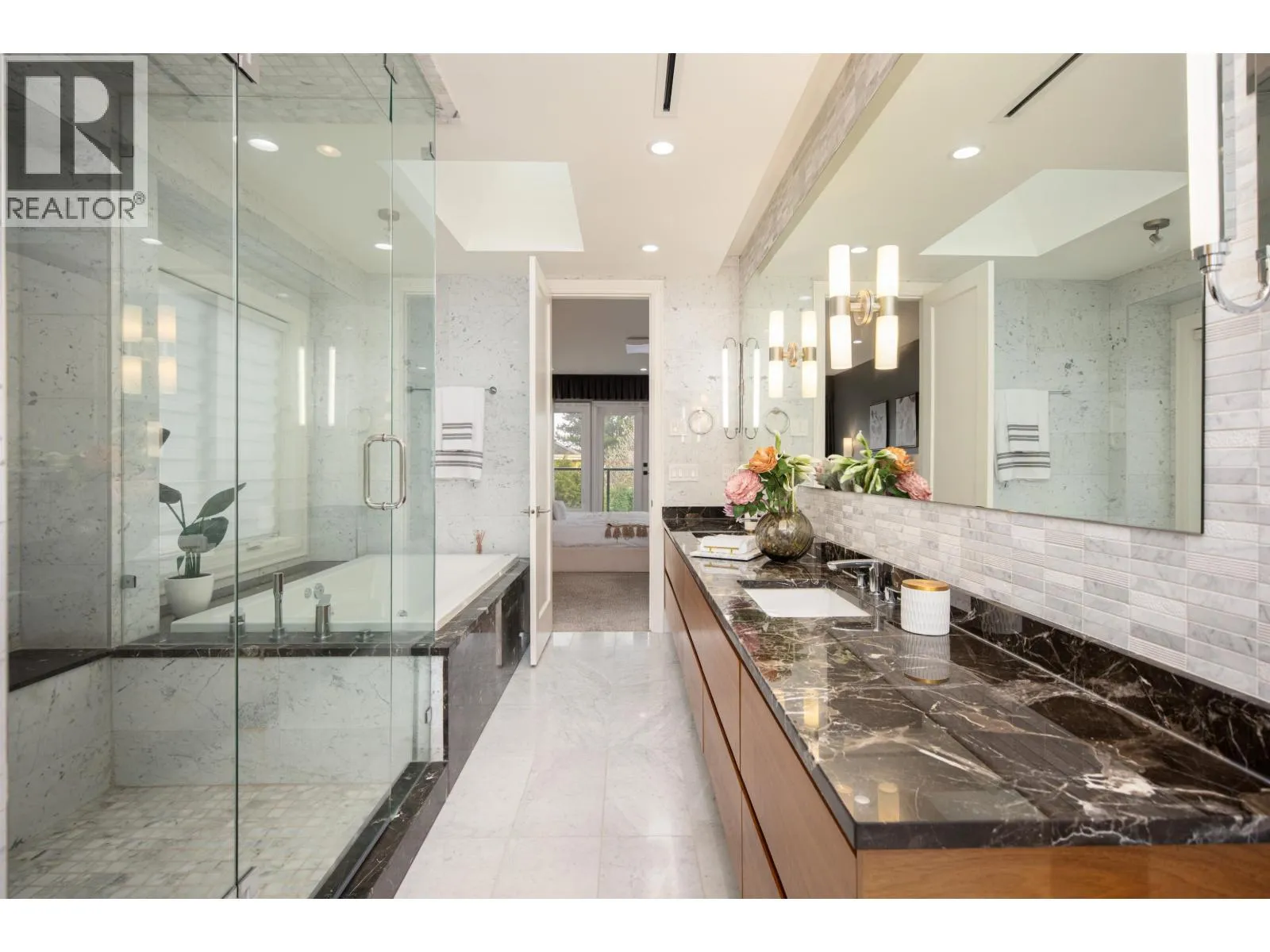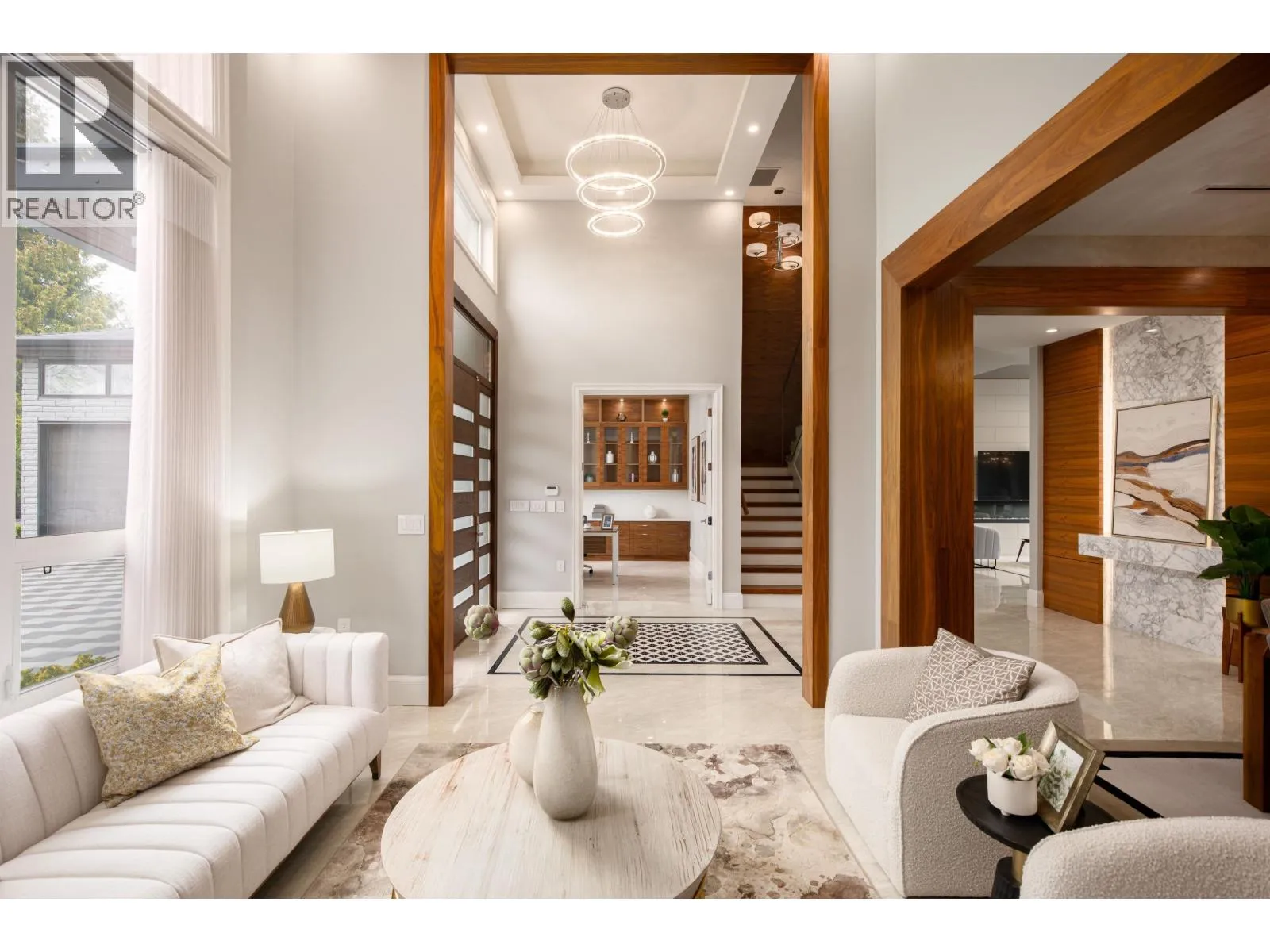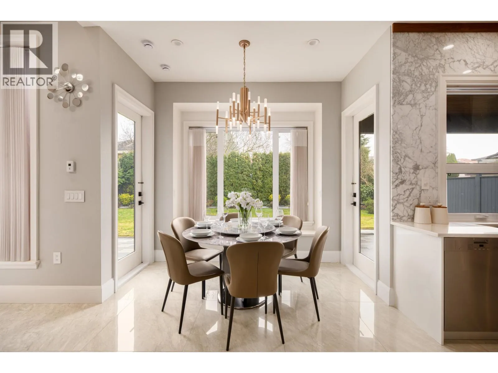 Don´t be fooled by the address. This exceptional owner-built luxury residence sits on a 10,004 sq.ft. lot with an additional 70 ft setback from the quiet portion of Railway Ave, creating a remarkably private and tranquil setting. Mature trees provide excellent natural noise buffering, resulting in a quiet interior and backyard. Meticulously maintained and constructed with top-tier materials throughout, the home showcases extensive wood detailing, high-end German Miele appliances, an oversized wok kitchen, marble and premium stone finishes, soaring ceilings, and custom built-in storage. The upper level features two expansive primary suites, including a spa-inspired ensuite with sauna. Offers 5 bedrooms in total, including a 1-bedroom legal suite, media room, and more. Must see! (id:27476)