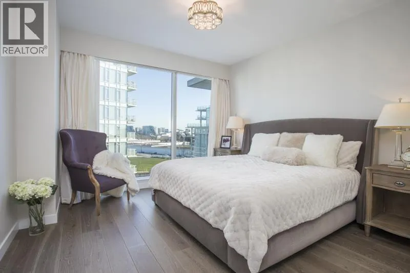 A TRUE GEM - this rarely available 1,575 SQ FT 2 Bed, 3 Bath & Den CORNER home offers luxury house-sized living in the prestigious RIVER GREEN. Hardwood flooring throughout, glamorous living & dining rooms perfect for elegant entertaining and comfort. Floor-to-ceiling windows bathe the home in natural light with stunning river, city & mountain views. Ensuited bedrooms on each side, a beautifully appointed kitchen, air conditioning, premium finishes, and generous outdoor space complete this exceptional home. Enjoy 5-star resort-style amenities including indoor pool, hot tub, sauna & steam room, gym, theatre, music & games rooms, party lounge, landscaped gardens, 24-hour concierge and private shuttle. Steps to Dyke, SkyTrain, Richmond Centre & Olympic Oval. Book your private showing today. (id:27476)