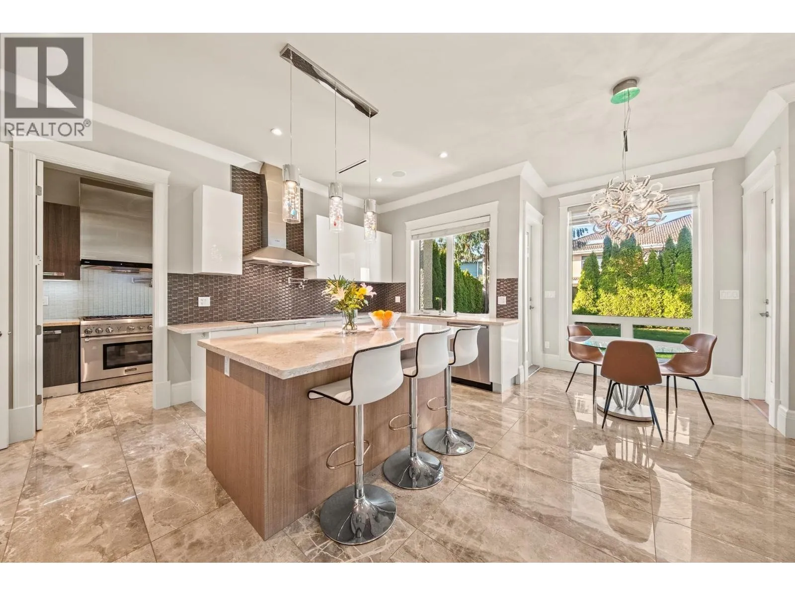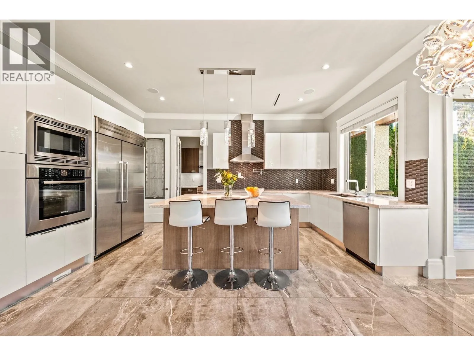 In Richmond´s prestigious In Richmond´s prestigious Quilchena neighbourhood stands a residence where craftsmanship meets quiet luxury. This 3,736 square ft custom home on an 8,230 square ft lot welcomes you with a grand double-height foyer and sunlit living spaces framed by expansive windows. A beautifully curated chef´s kitchen and airy wok kitchen feature Italian-imported cabinetry, exquisite tiles, and a full suite of Thermador & Bosch appliances. Upstairs, four serene ensuite bedrooms include a refined primary retreat with a spa-like bath, complete with upgraded steam and sauna. Modern comforts-A/C, HRV, radiant heat, security system, electric gate-blend seamlessly with thoughtfully designed landscaping and a tranquil private yard. A home that feels both elevated and effortless. (id:27476)