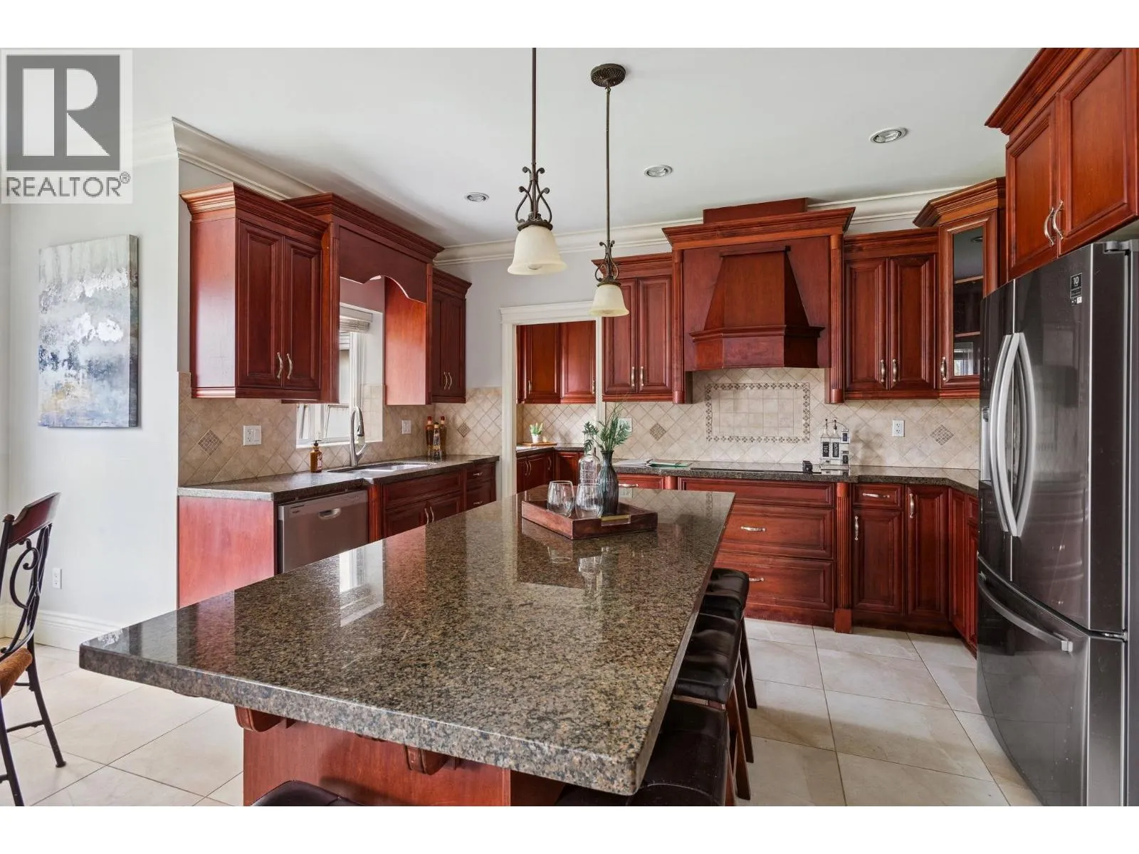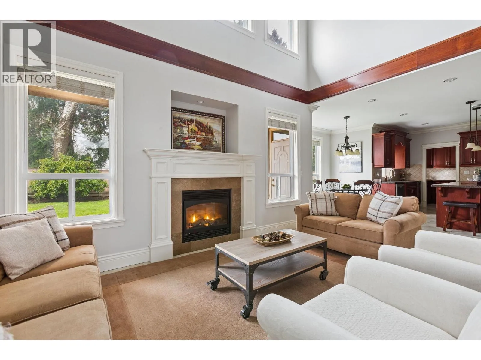 Thoughtfully custom-built in 2009, this owner-designed Riverdale home offers nearly 3,400 sf of well-planned living on an approx. 8,000 sf lot. A deep, fenced, and private backyard provides rare outdoor space-ideal for family gatherings, children and pets at play, and gardening. Inside, a dramatic 17´ ceiling anchors the foyer and family room, complemented by timeless coffered ceilings and elegant chandeliers. The formal dining room seats 10 and flows to a whisky bar and open kitchen with island and walk-in pantry. Large windows fill the home with natural light, while radiant in-floor heating ensures quiet, even comfort. Upstairs features 4 spacious bedrooms and 3 full baths. Media room and office/bedroom with patio access below. Updates include newer appliances, fresh interior paint, garage floor coating, and newer garage door. Located in the Thompson Elementary and Burnett Secondary catchments, close to dyke trails, parks, No. 2 Rd Bridge, Terra Nova, Richmond Centre, and the Olympic Oval. O/H Jan 25 130-3pm (id:27476)