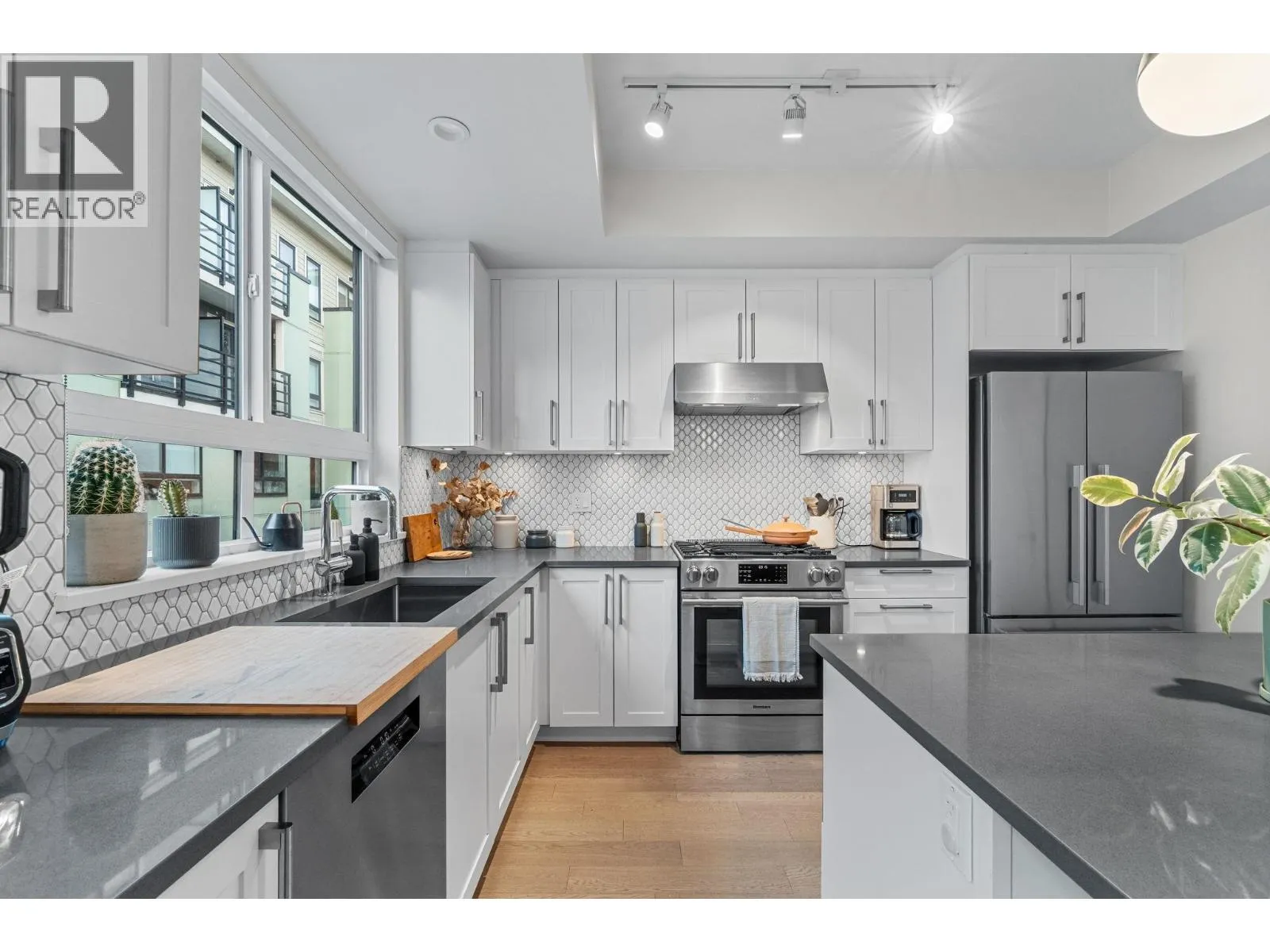 Welcome to this bright, beautiful, south-facing end-unit townhome in Parc Riviera Mews, Richmond´s desirable Bridgeport waterfront community. Featuring 3 bedrooms, 3 washrooms, 9-ft main-floor ceilings, engineered hardwood, and a modern kitchen with European appliances and a gas stove. Thoughtful upgrades include a custom pantry, upgraded lighting, custom door hardware, and statement wall panelling. Enjoy an attached double garage and efficient geothermal heating/cooling for year-round comfort. Amenities include a clubhouse, fitness centre, indoor pool with hot tub, BBQ patio, and a scenic dyke trail for riverfront walks. Steps to Tait Riverfront Park, two blocks to Robert J. Tait Elementary, and a short stroll to the SkyTrain, shopping, and recreation. Don´t miss this opportunity. Open House, Sun, Feb 15, 2-4pm. (id:27476)