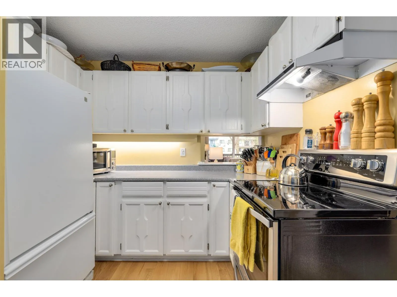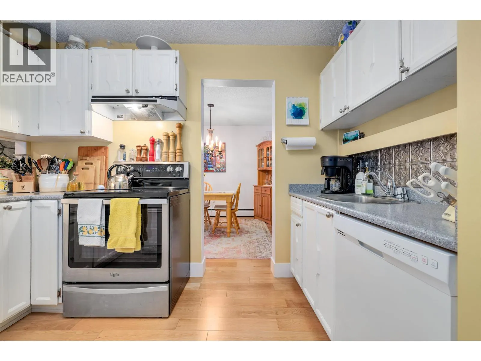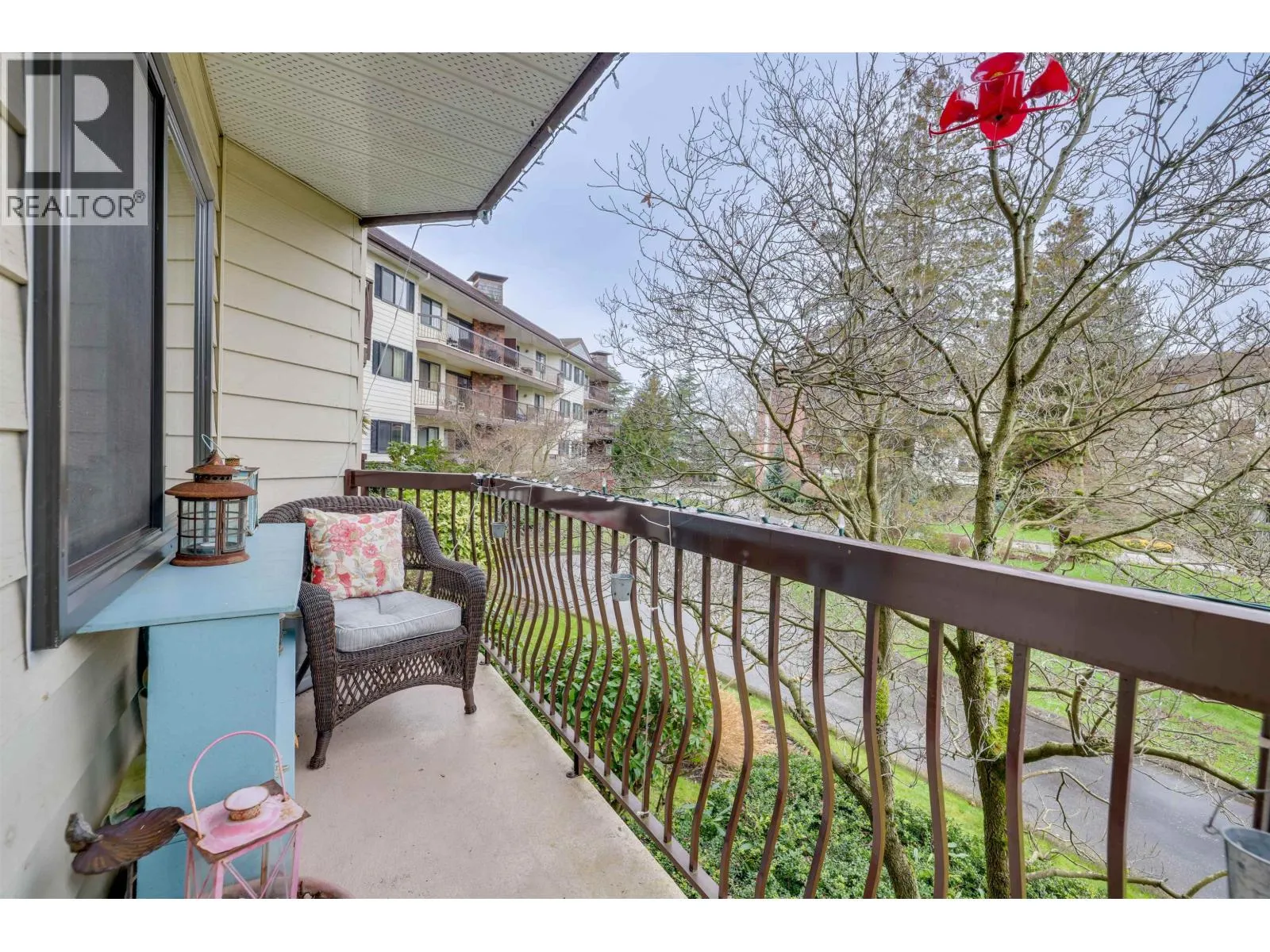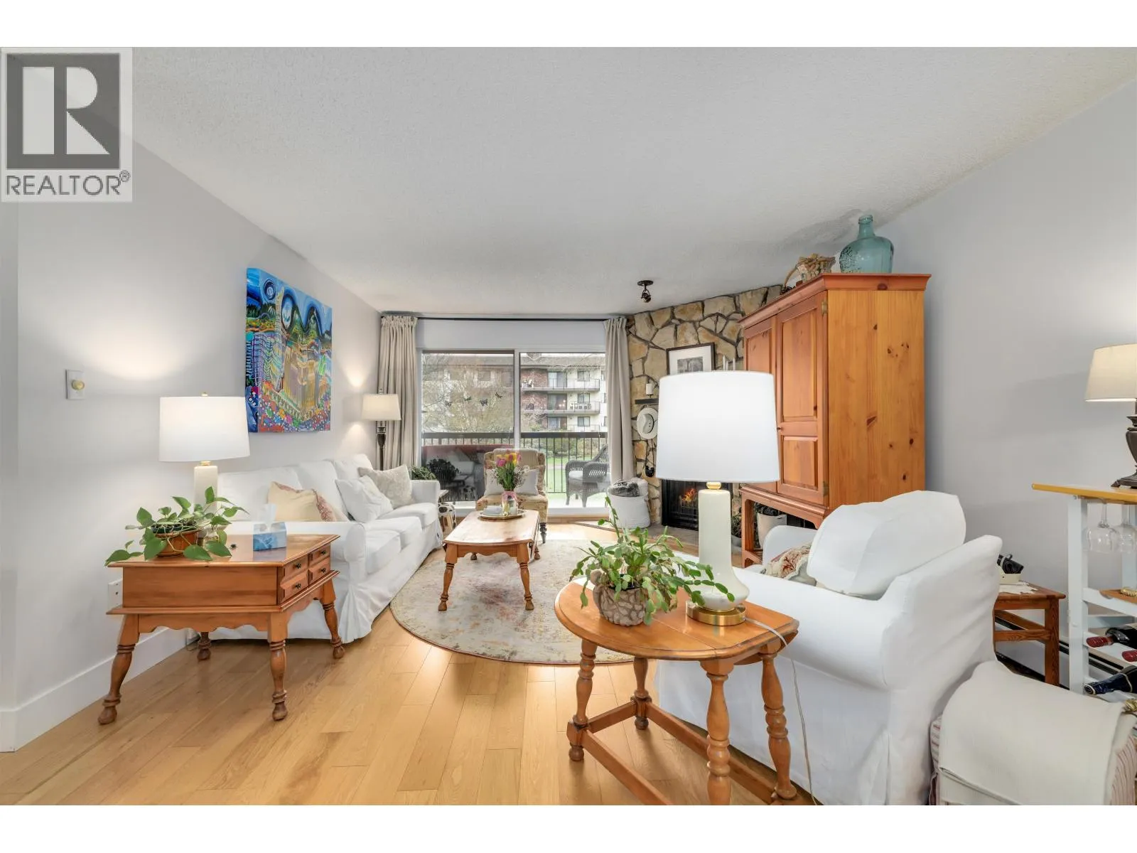 Experience living in sought-after Stornoway, ideally located next to South Arm Park and Community Centre. This well-managed complex features 156 owners across four buildings, set on four acres of beautifully manicured lands. This updated two-bedroom, two-bath corner unit in one of the best locations offers over 1,045 sq. ft. of bright, spacious living. The ground-floor home features oak hardwood flooring, house-sized living and dining areas, an electric fireplace. The generous primary bedroom features a walk-in closet and an en suite. A dedicated laundry room with built-in storage adds everyday convenience. Includes one secured parking stall and a storage locker. Just steps to shopping and transit, this home offers peaceful living in a prime location. Strata fee extras include heat, hot water, sewer, and water. Pool + Sauna + Rec Facility (id:27476)