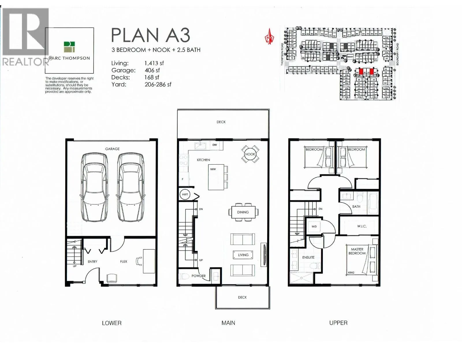 3 bed & den in the final phase of Parc Thompson townhome community in the fast-growing Hamilton area (phase 1 & 2 sold out). Many upgrades in phase 3 including the use of efficient Heat-Pump for heating & AIR CONDITIONING. Gourmet kitchen features quartz countertop with over-sized undermount sink, under-cabinet lighting, Fisher Paykel stainless steel appliances, two-drawer dishwasher, 2.5 baths, primary bedroom has large walk-in closet, level 2 ready EV charging in garage, heat recovery system to maintain fresh air supply. 2 car side-by-side garage. Convenient location, steps to Hamilton community centre & school. Short stroll to the new Costco & Queensborough Landing Shopping Centre with Walmart. 2 blocks to the 410 bus stop to Richmond Centre and the 22nd Ave Skytrain station in New West. Lots of visitor parking. You will love living in this community. (id:27476)