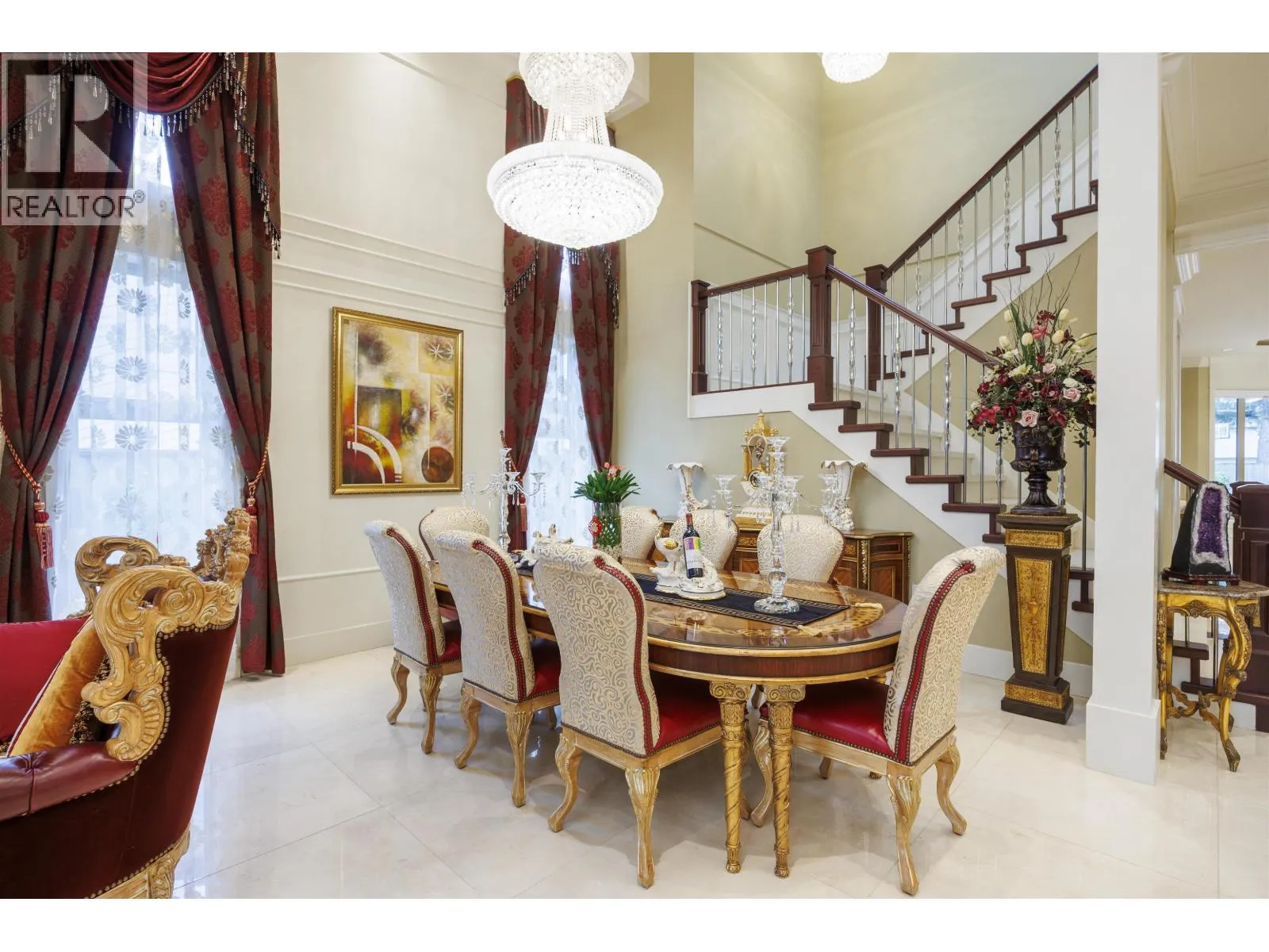 Rarely available luxury & meticulously maintained estate in a prime Richmond location, offering almost 6,000 sq.ft. of elegant living on an exceptional 15,800+ sq.ft. lot. Discreet from the street, this residence opens to a breathtaking interior defined by a 21´ soaring foyer, cascading crystal chandeliers, full stone exterior, imported Italian marble, and exquisite custom millwork. Designed for both grand entertaining and private retreat, the home features 5 ensuite bedrooms including 3 primary-style suites, one with a private balcony. An executive office, private gym, spa-inspired saunas, jacuzzi, wine room, media and recreation spaces complete the experience. This is a refined estate for those seeking space, privacy, and timeless luxury. (id:27476)