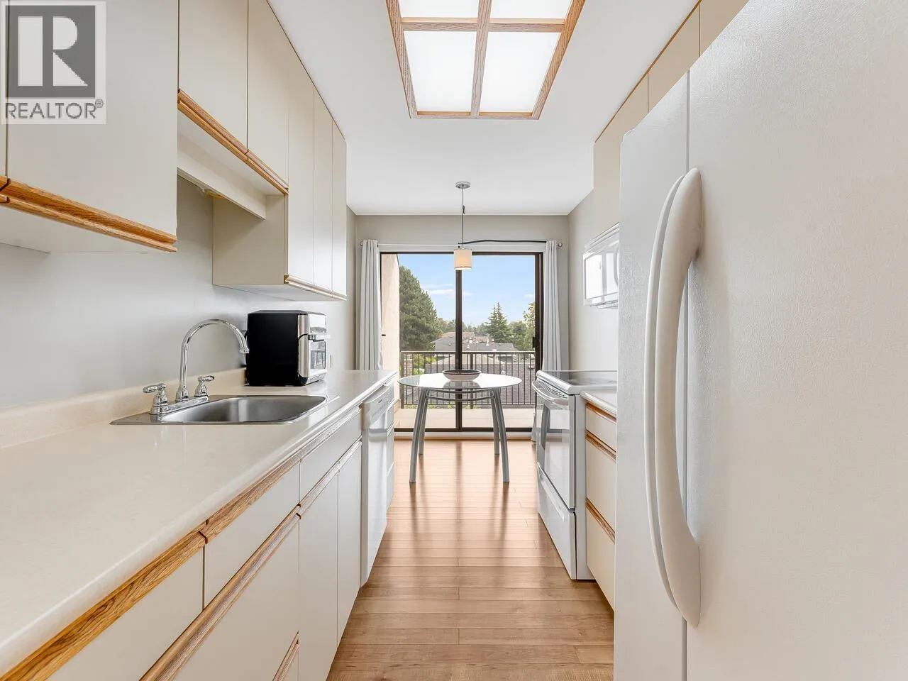 Top floor at Apple Greene Park! This over 1,000 square ft 2-Bedroom corner unit offers spacious and comfortable living areas, bright kitchen and eating area, Extra Storage Room on the balcony and In-Suite Laundry. Laminate flooring in living and dining room. Balcony, building envelope, roof, all bedroom windows and both doors access to the balcony upgraded in 2022. Excellent amenities include gym, indoor and outdoor pools, sauna room and hot tub. BONUS: 1 parking stall & 1 locker. PLUS, heat, hot water and city utilities are included in the strata fees. (id:27476)