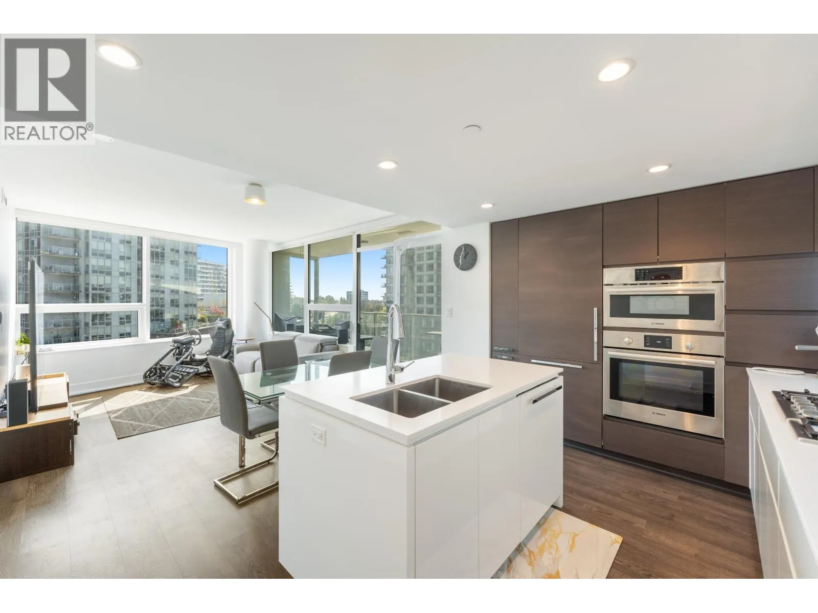 Beautifully kept SE corner home at River Park Place III by Intracorp! This bright 2 bed 2 bath residence offers 930 sq.ft. of well-designed living with floor-to-ceiling windows, a spacious covered balcony, and modern finishings including a gourmet kitchen with Bosch appliances, gas cooking, and central A/C. Both bedrooms are generously sized and well separated for privacy. Comes complete with 1 EV parking and 1 storage locker. Located in the vibrant Oval Village, just steps to T&T Supermarket, the Richmond Olympic Oval, riverfront trails, cafés, dining, and easy access to transit. Residents enjoy full amenities including fitness, courts, lounges, and concierge. A move-in ready home in a prime location! (id:27476)