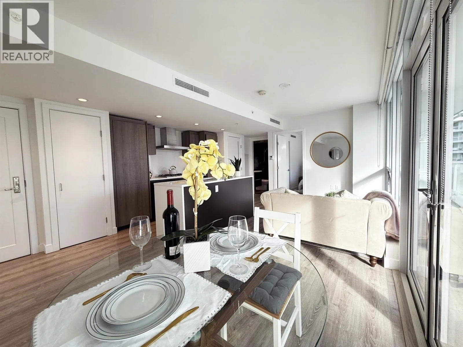 The Paramount - heart of downtown Richmond. 1 minute walk from the building to the Richmond-Brighhouse Skytrain station. Bright and great laid-out one bedroom unit with south exposure of all living, dining ,bedroom & decent size of balcony. Luxury European cabinetry, modern kitchen with stainless Miele kitchen appliances, gas cook top, air conditioning.Amenities within the building including party room, fitness centre, sauna/steam rooms, meeting room & outdoor playground,etc. Step downstairs to access Richmond centre, parks, community centre and public transportation. (id:27476)