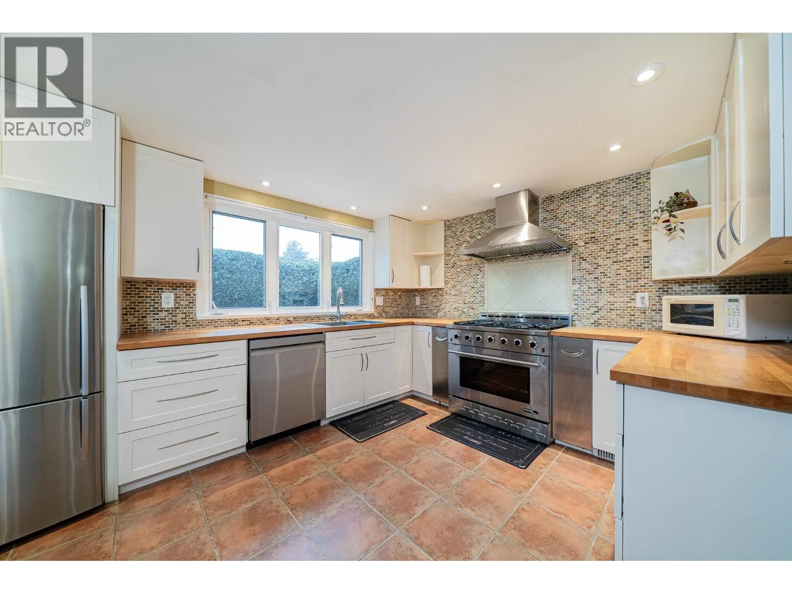 Timeless, quality-built family home by Greczmiel Homes in Westwind, a quiet and established Richmond neighbourhood. Features a flexible, well-designed floor plan and a beautifully maintained mature garden offering privacy. Vaulted-ceiling living room with wood-burning fireplace opens seamlessly to a covered patio with hot tub. A spacious recreation room, connected by French doors, is easily adaptable as a fourth bedroom. Across the hall, a formal dining room with large windows captures seasonal light. Bright, tastefully renovated open kitchen with efficient layout flows into a light-filled family room featuring an arched gas fireplace, opening to a private backyard. Upstairs offers three bedrooms and two full bathrooms including ensuite. Close to schools, parks, shopping, and major routes. (id:27476)