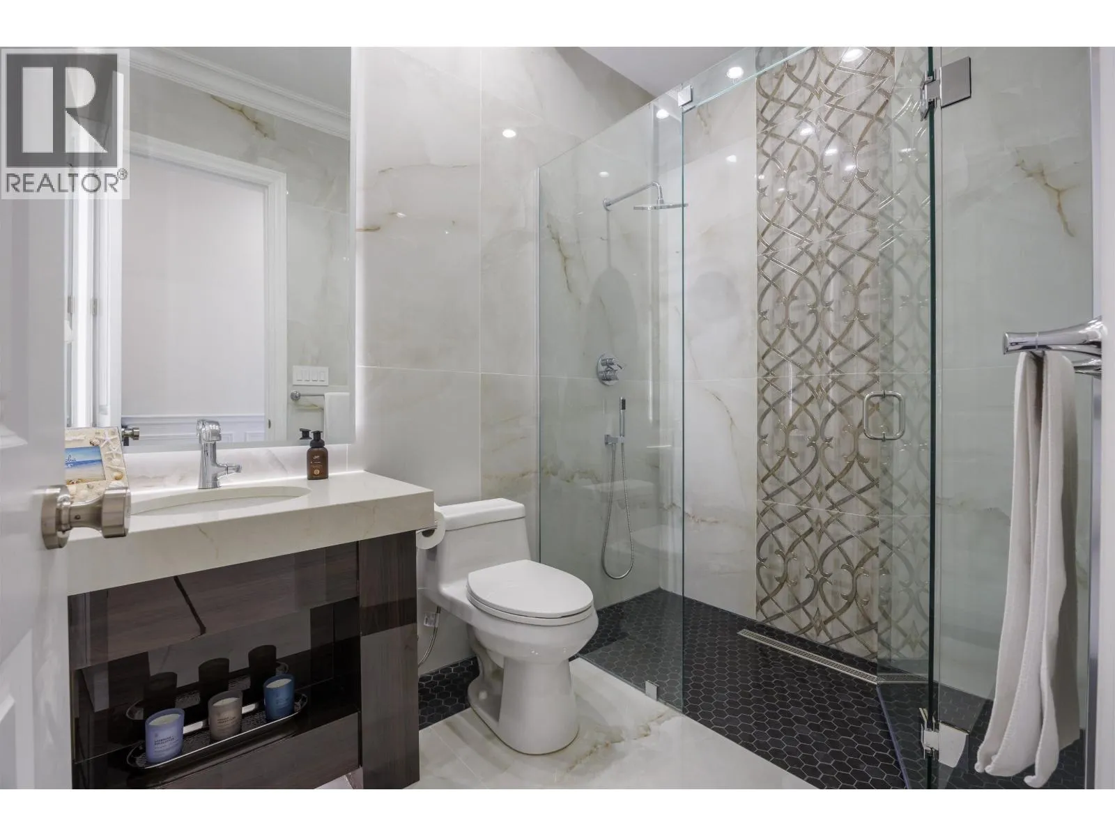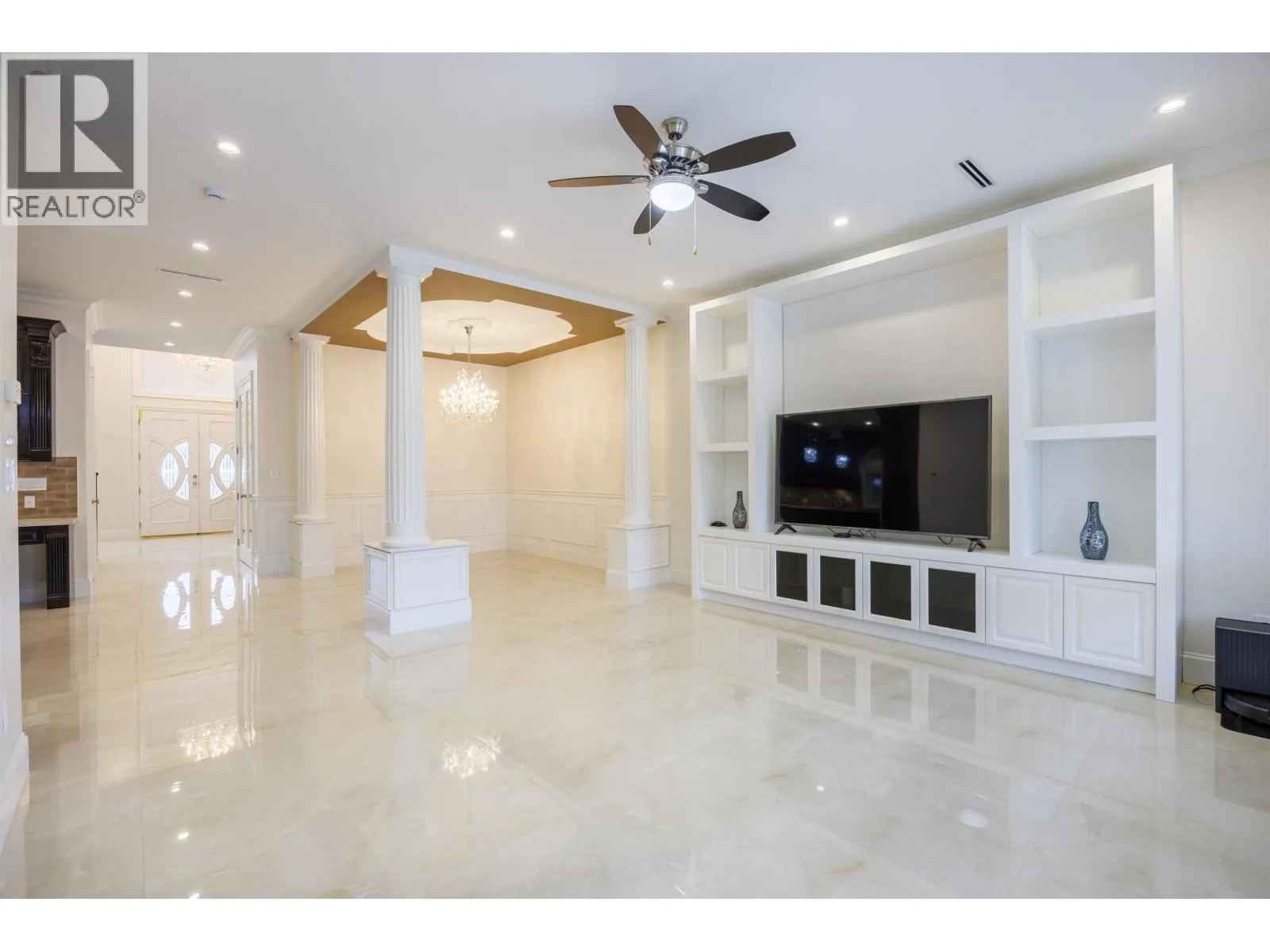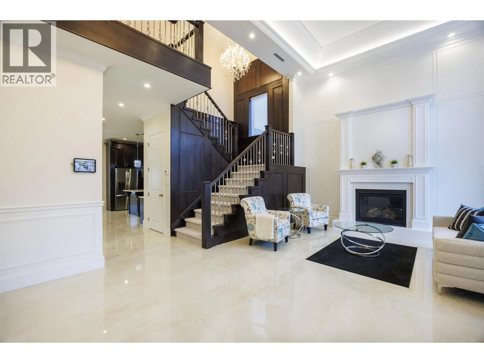 Rarely available custom-built luxury estate set on generous 11,484 square ft lot, offering a blend of architectural presence and refined living. Spanning 4,811 sq ft, this home boasts 5 beds, 6 baths, 4 kitchens, private media room, and impressive games room. Crafted with premium materials and attention to detail, the home showcases solid wood cabinetry, extensive custom millwork, and refined architectural mouldings throughout. Crystal chandeliers, and private golf simulator elevate the living experience. Equipped with radiant floor heating, HRV, A/C, and a high-end security camera system and more. The legal rental suite is an excellent mortgage helper. Conveniently located near restaurants, Costco, supermarkets, Foody World, and everyday amenities.2-5-10 warranty and EnerGuide* certificated. (id:27476)