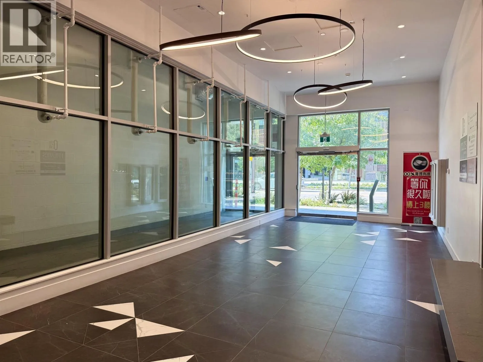 Prime opportunity to operate your business at Two River Park Place in Richmond's Oval Village. Built in 2020, this 1,202 SF third-floor commercial unit features excellent exposure to River Road, floor-to-ceiling window frontage, and a modern open layout. Professionally improved from shell condition. RCL3 zoning permits a wide range of office, service, and retail uses. Surrounded by high-density residential towers, retail, and daily amenities, generating strong foot traffic. (id:27476)