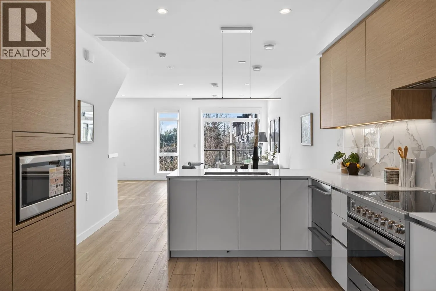 Move in Early Spring 2026! Discover Parc Thompson - Final Phase Secure a brand-new townhome with just a 5% deposit. Designed for modern living, enjoy soaring 9´ ceilings, oversized windows, and a bright open layout. The chef-inspired kitchen features quartz countertops, upgraded Fisher & Paykel appliances, soft-close cabinetry, and GROHE fixtures. Experience year-round comfort with an energy-efficient heat pump & A/C, plus Level 2-ready EV charging in the garage. This spacious 3-bedroom home offers private outdoor space and tandem parking, minutes from Queensborough Landing, parks, schools, and transit. Nestled in a safe, vibrant neighborhood - come see why these homes are generating so much buzz and where your next chapter begins. (id:27476)