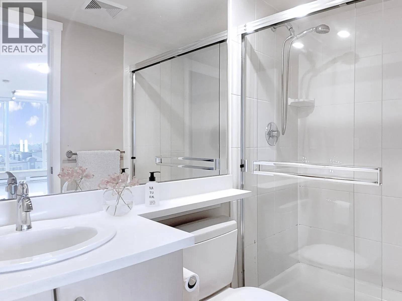 Seasons by Polygon at Landsdowne. SE exposure with expansive park views! Bright 2 bed, 2 bath layout with great bedroom separation, open living/dining, and a modern kitchen with stone counters & stainless appliances. Large windows flood the home with natural light, plus in-suite laundry and a balcony for BBQs or coffee. Primary bedroom features a private ensuite, second bedroom is perfect for guests, kids, or a home office. Only an 8-min walk to SkyTrain and minutes to Lansdowne Centre and Walmart. Building allow install of Air Conditioning unit. Rentals and Pets allowed. Includes parking & storage. Move-in ready (id:27476)