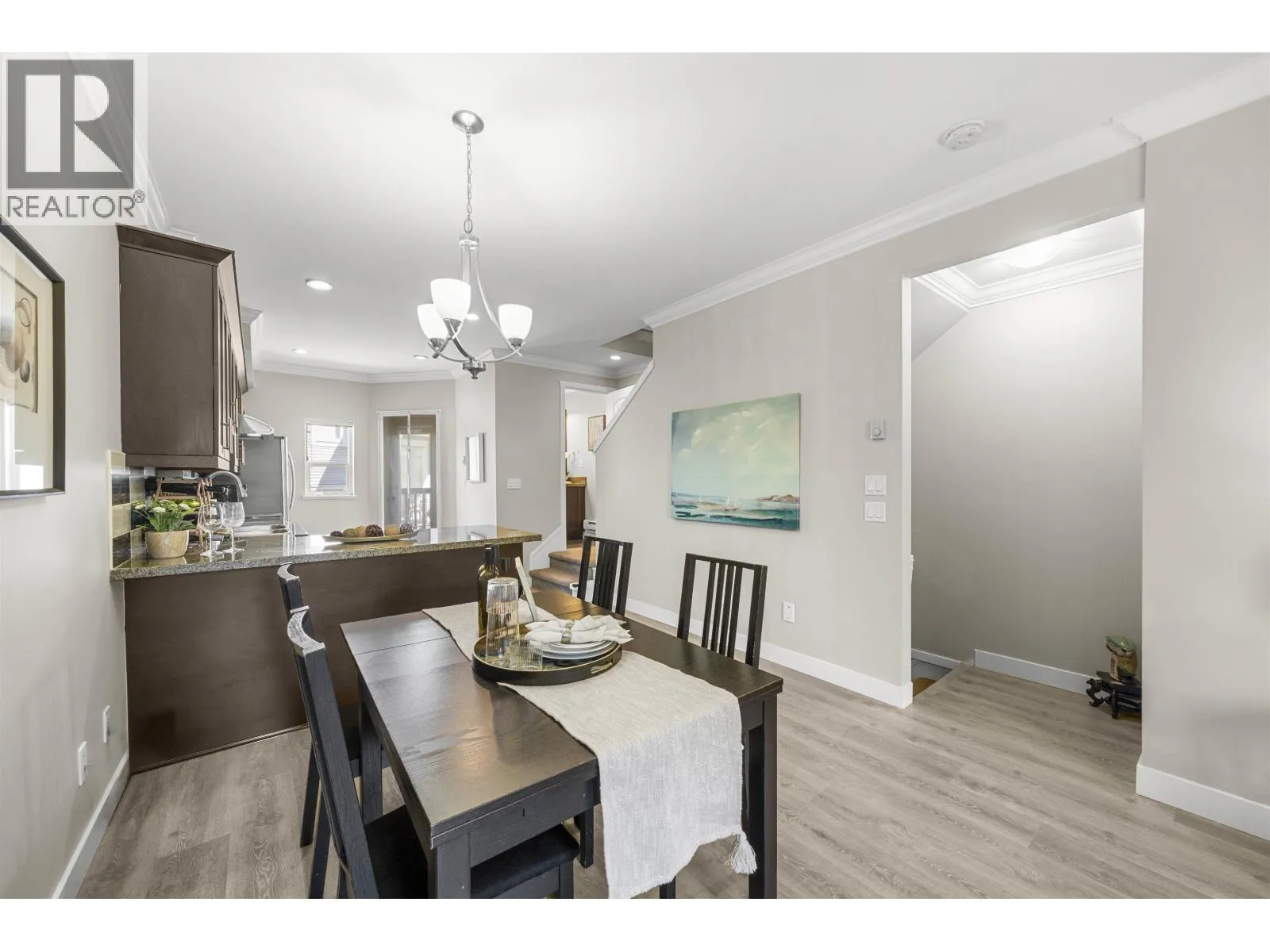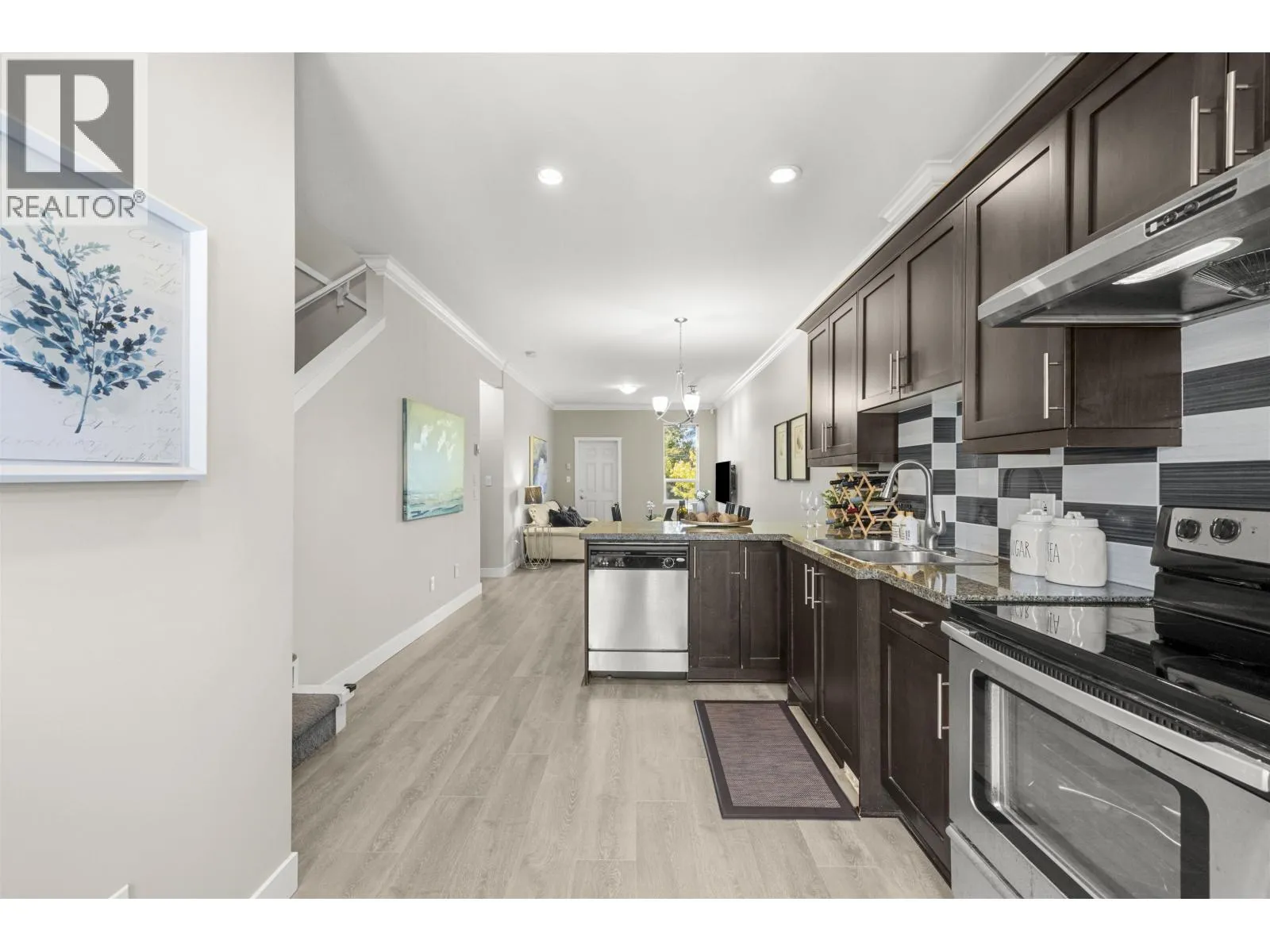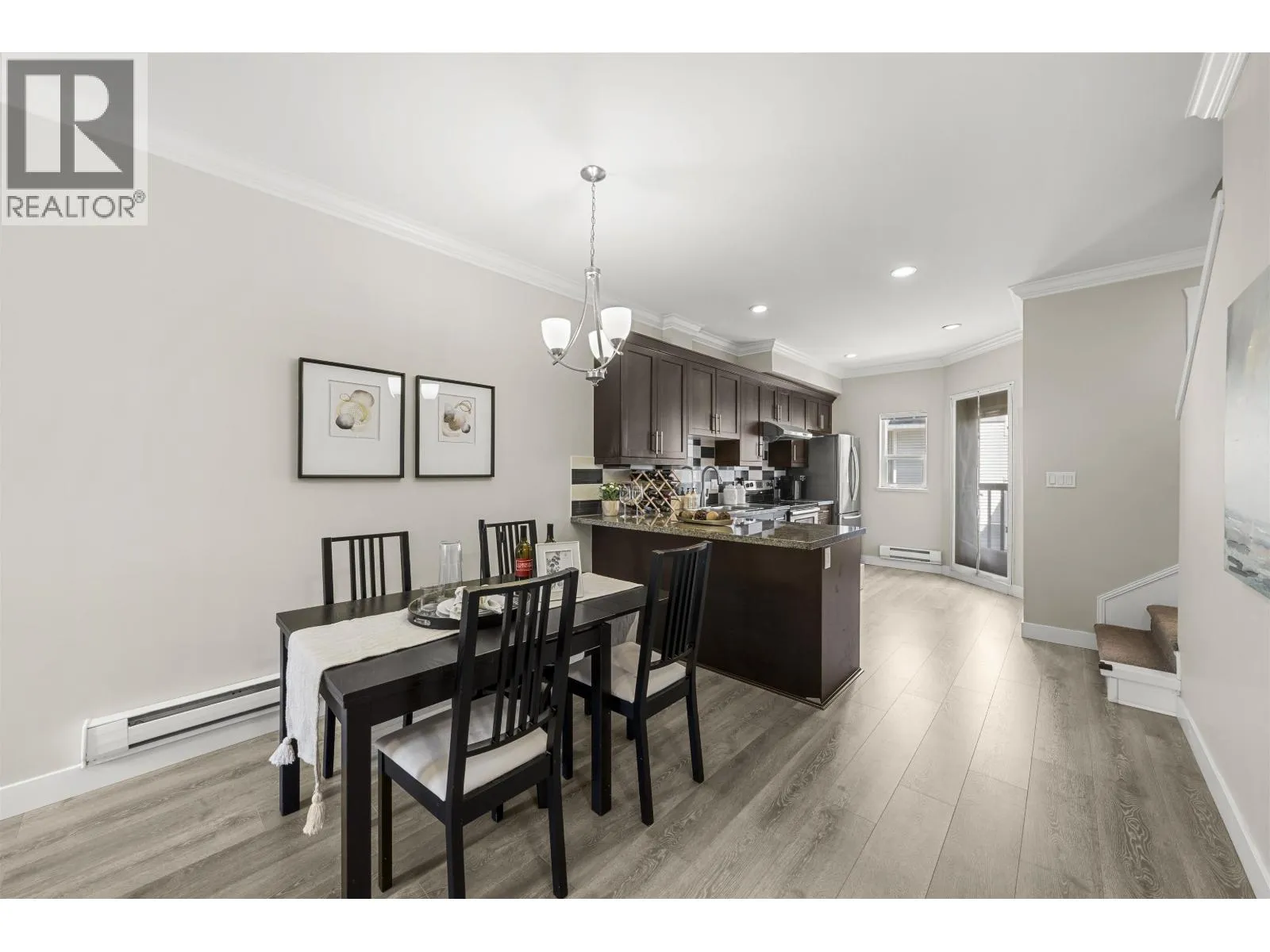 Step into a rare opportunity a move-in ready townhouse at Hamilton Station with your own private garage. Surrounded by parks and just minutes from Queensborough Landing and Hamilton elementary. Over 1,000 SF of thoughtfully designed space, this home feels much more spacious than a typical condo. The main floor features 9´ ceilings, wood flooring and a private garage. The open concept kitchen is equipped with stainless steel appliances, dual sinks, a French-door fridge, and a large island. Step out onto your balcony for some fresh air or summer BBQ. A powder room with a window on this level. Upstairs, the generous primary suite easily fits a king with two nightstands, and comes complete with an ensuite and ample closet space. And the full-size laundry is also located on this level for easy access. Call now to book your private tour! (id:27476)