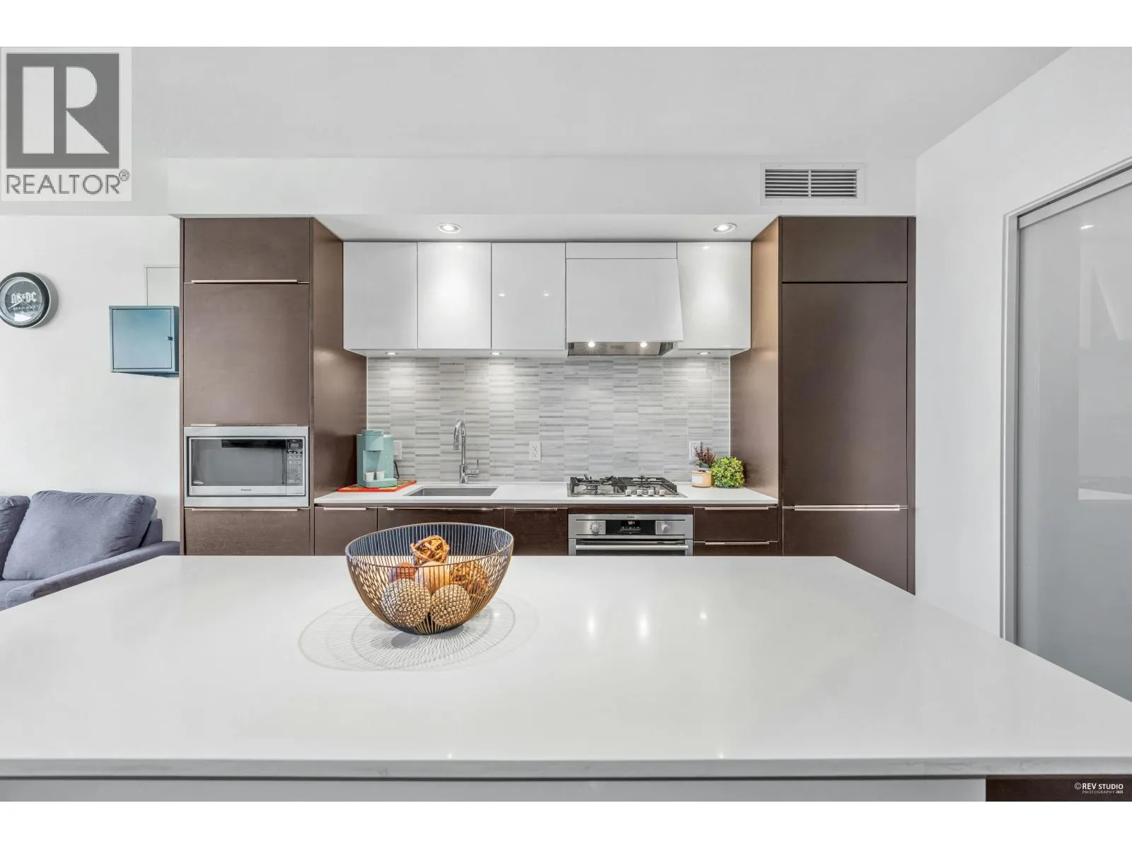 Welcome to River Park Place I by Intracorp! This well-maintained 1 Bed + Den unit with stunning Northeast-facing views of the Fraser River, Mountains & City! Features an open-concept kitchen with island, fully integrated appliances, stone countertops, A/C, wide plank laminate floors & large covered balcony. Spacious layout with semi-ensuite bath & generous living space. Amenities include concierge, gym, basketball court, theatre, study & rooftop BBQ area. Steps to Olympic Oval, T&T, shops, restaurants & Lansdowne SkyTrain. Great home or investment! 1 locker and No Parking. Parking available for rent for $120 per month. Open House Mar. 22 from 2-4pm. (id:27476)
