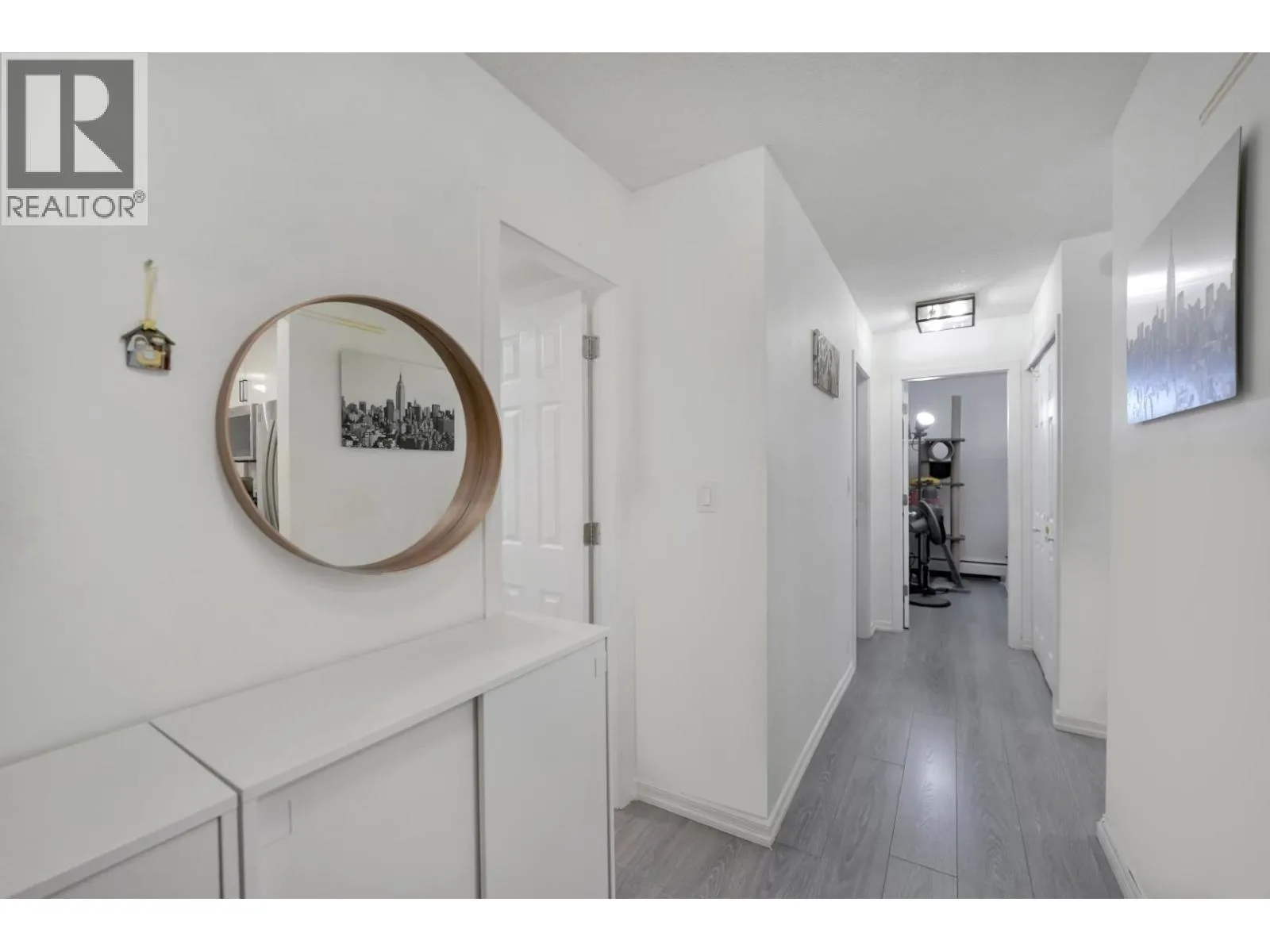 Exceptional value for size in Richmond! This spacious 980 sq.ft. 2-bedroom, 2-bath home offers incredible square footage at an unbeatable price. Thoughtfully updated with a modern quartz kitchen, two-tone cabinetry, stainless steel appliances, renovated bathrooms, and durable laminate flooring throughout. The functional layout features a generous primary bedroom, excellent bedroom separation, and a bright living/dining area. Enjoy the oversized covered balcony with a private, treed outlook - perfect for year-round use. Rare in-suite washer for added convenience, plus access to shared laundry facilities in the building. Well-managed building with indoor pool, hot tub, and gym. Centrally located close to shopping, transit, parks, and schools. A rare opportunity to secure this much space (id:27476)