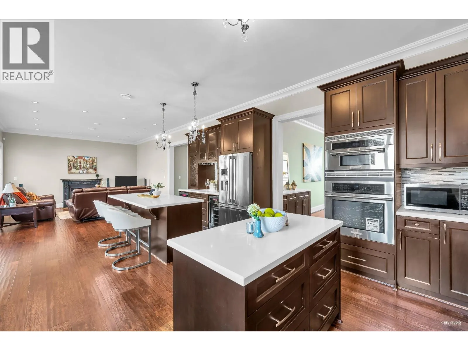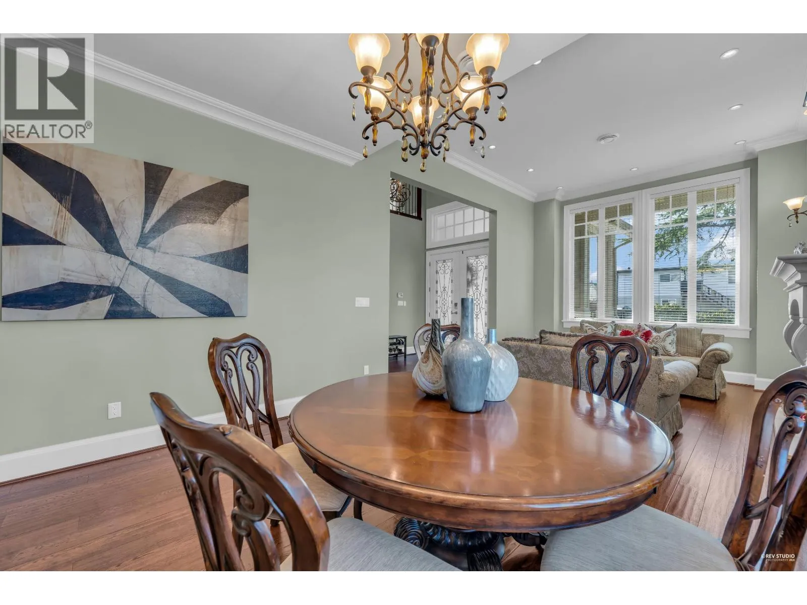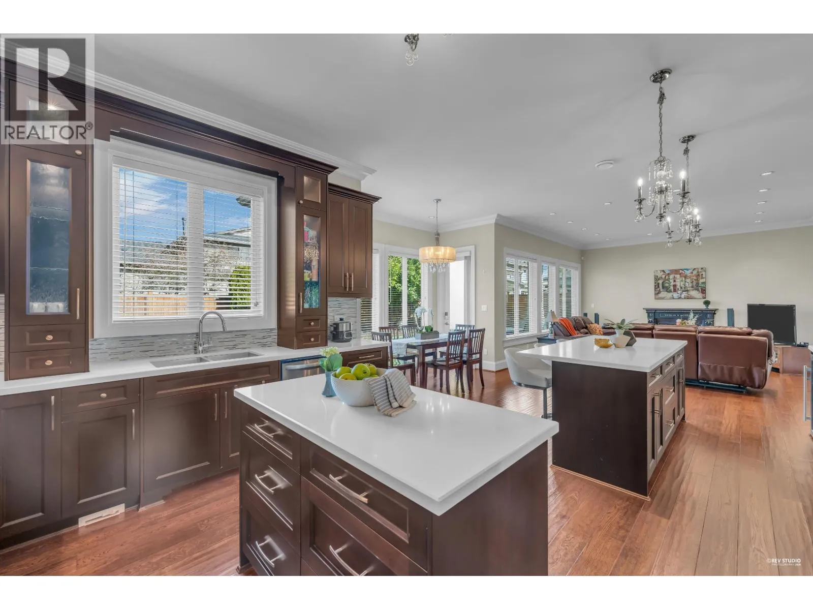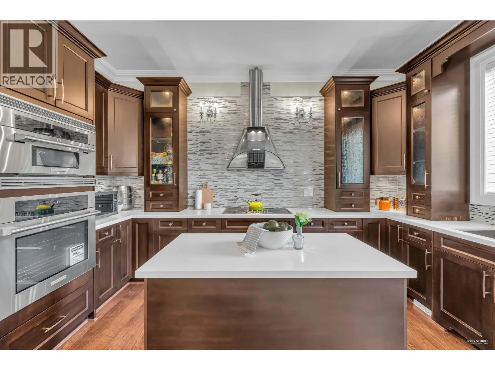 Magnificent South facing custom-designed home built by a European builder with exceptional quality and craftsmanship. Featuring supreme finishing and thoughtful interior design, this residence offers a warm yet luxurious atmosphere. Gourmet kitchen with premium appliances and soft-close cabinetry plus separate wok kitchen. Real oak hardwood floors, and Swarovski crystal chandelier. 4 spacious upstairs bedrooms, all with own bathrooms. Wet bar, A/C, HRV, and security system with cameras. Huge corner lot next to the golf course, minutes to Terra Nova Shopping Centre and Thompson Community Centre, in the Burnett Secondary School catchment and only 5min walking to Quilchena Elementary. A rare opportunity in a prime location. (id:27476)